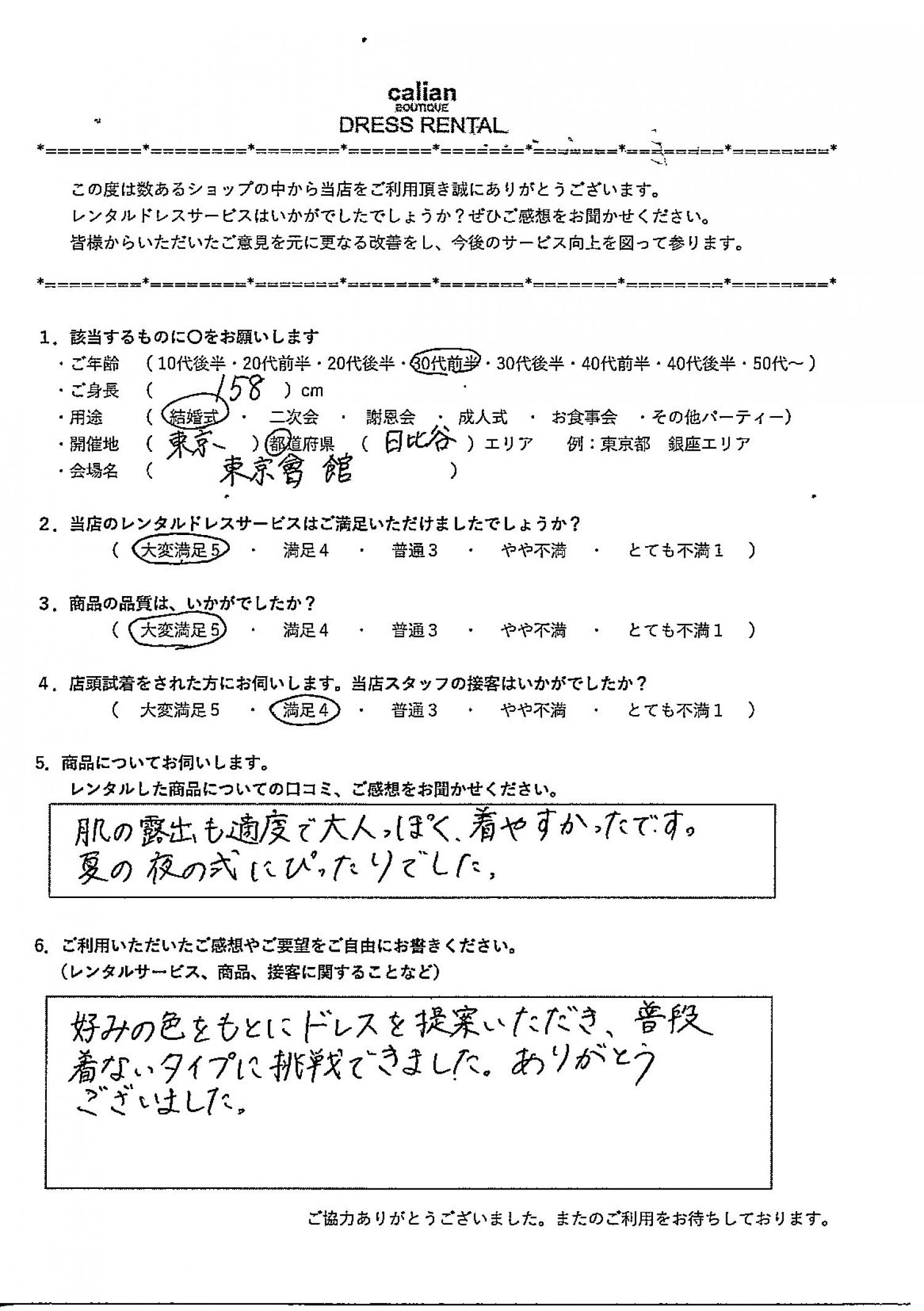 肌の露出も適度で大人っぽく、着やすかったです。夏の夜の式にぴったりでした。