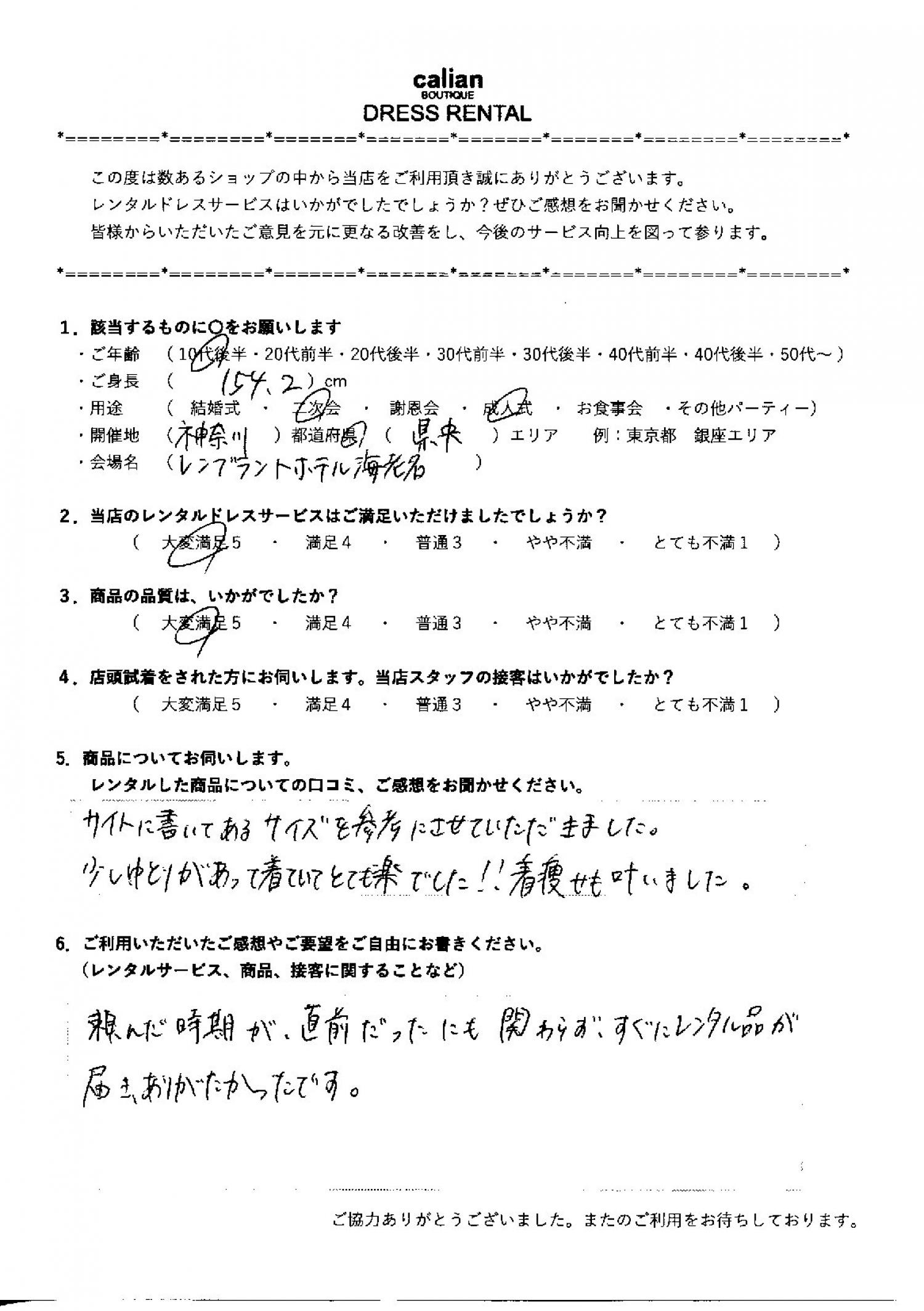 2.当店のレンタルドレスサービスはご満足いただけましたでしょうか?