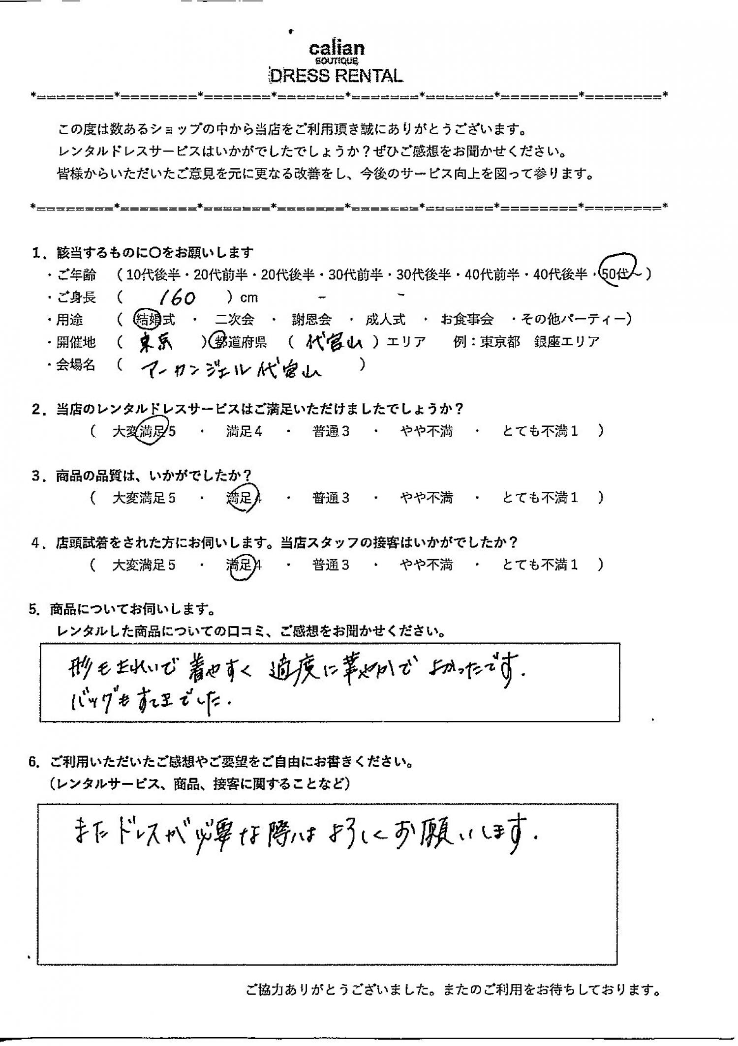 2.当店のレンタルドレスサービスはご満足いただけましたでしょうか?