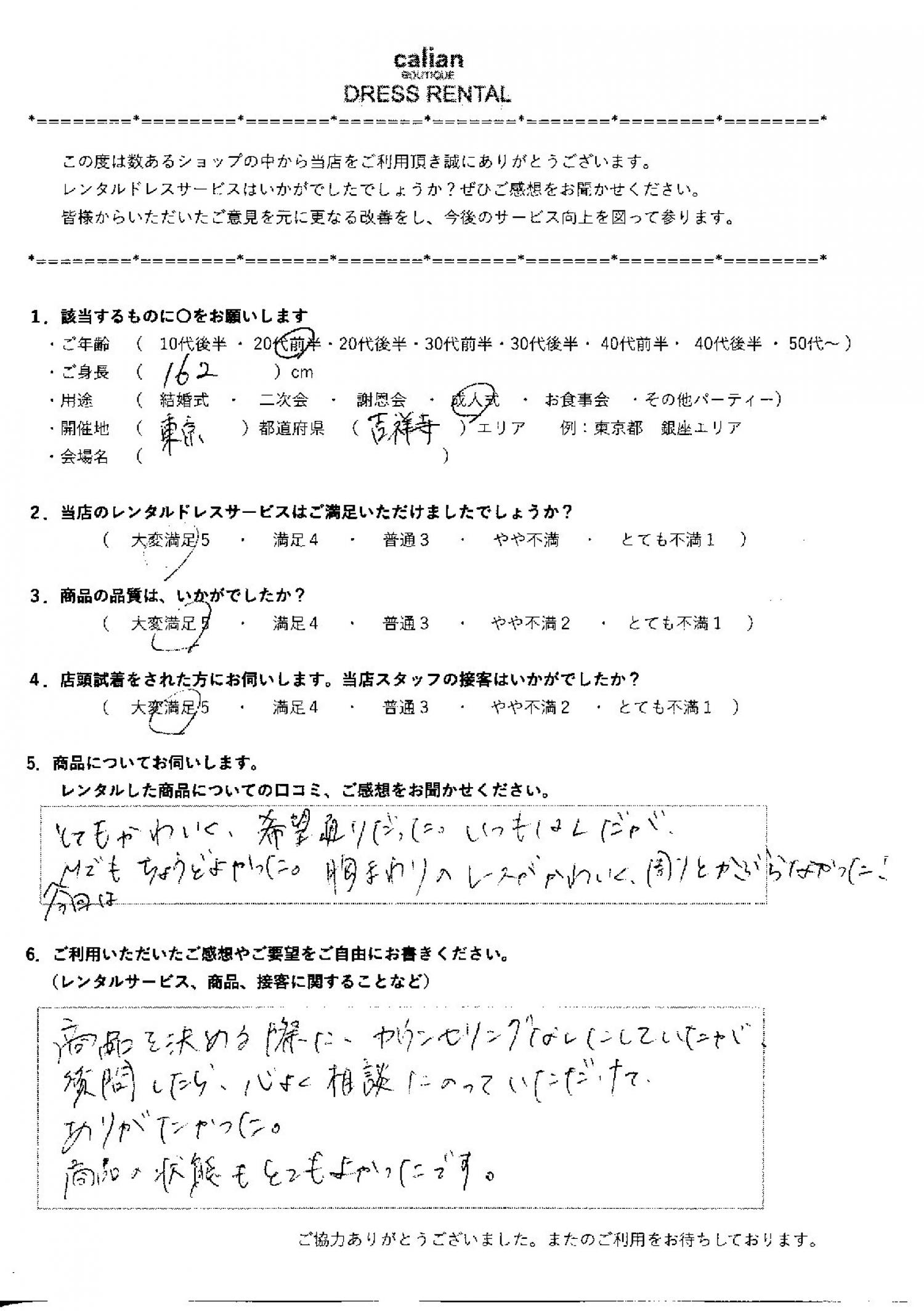 2.当店のレンタルドレスサービスはご満足いただけましたでしょうか?