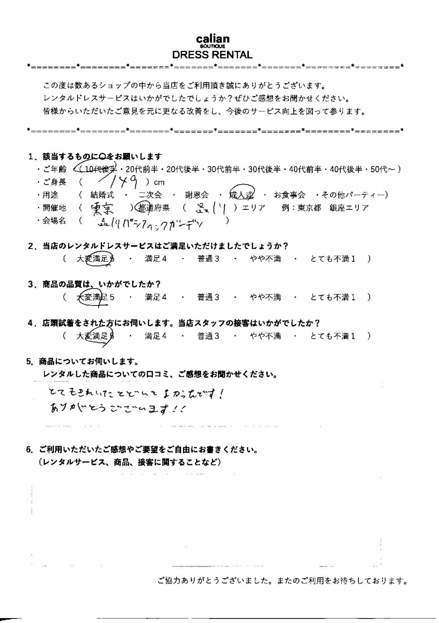 2.当店のレンタルドレスサービスはご満足いただけましたでしょうか?