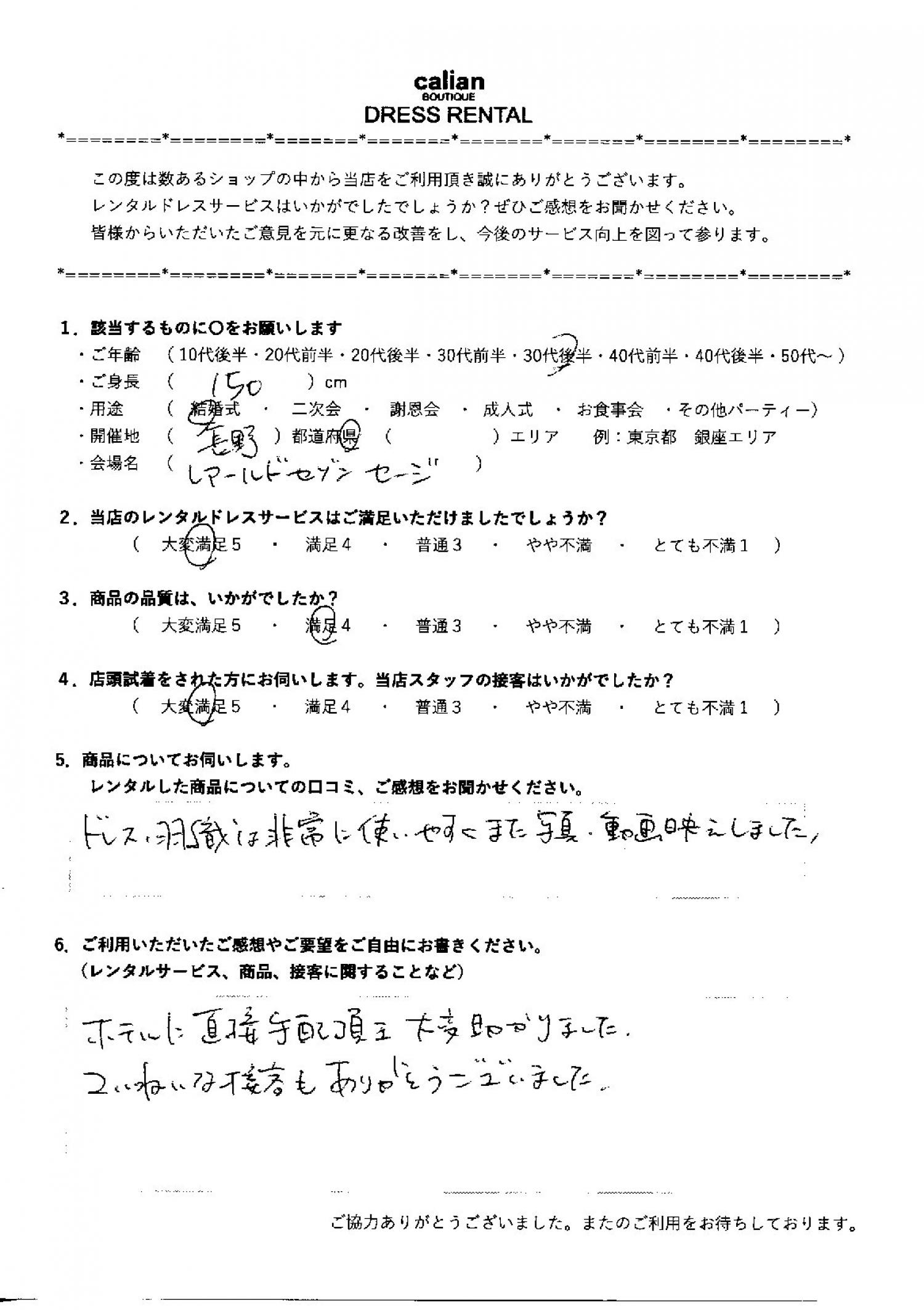 2.当店のレンタルドレスサービスはご満足いただけましたでしょうか?