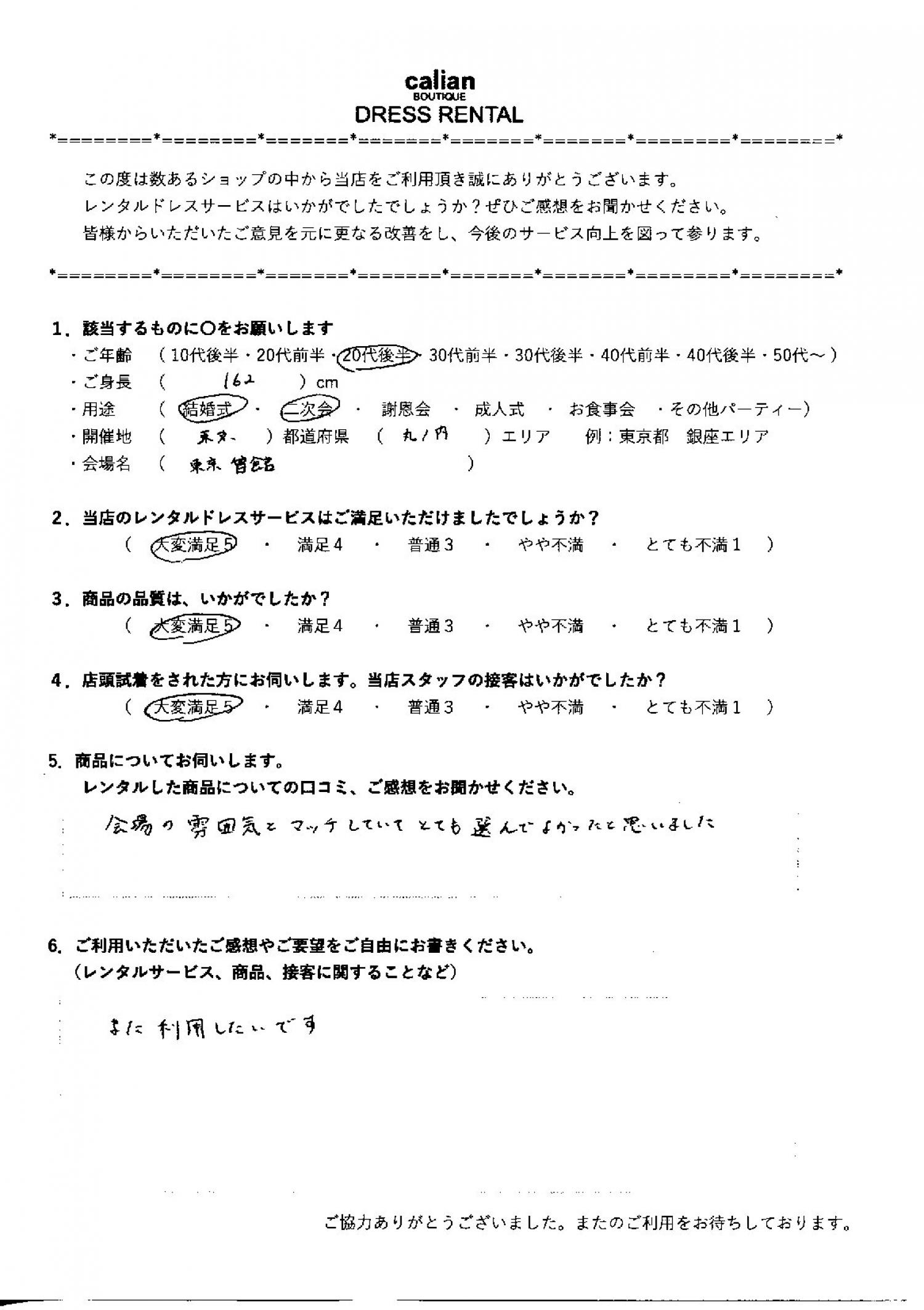 2.当店のレンタルドレスサービスはご満足いただけましたでしょうか?