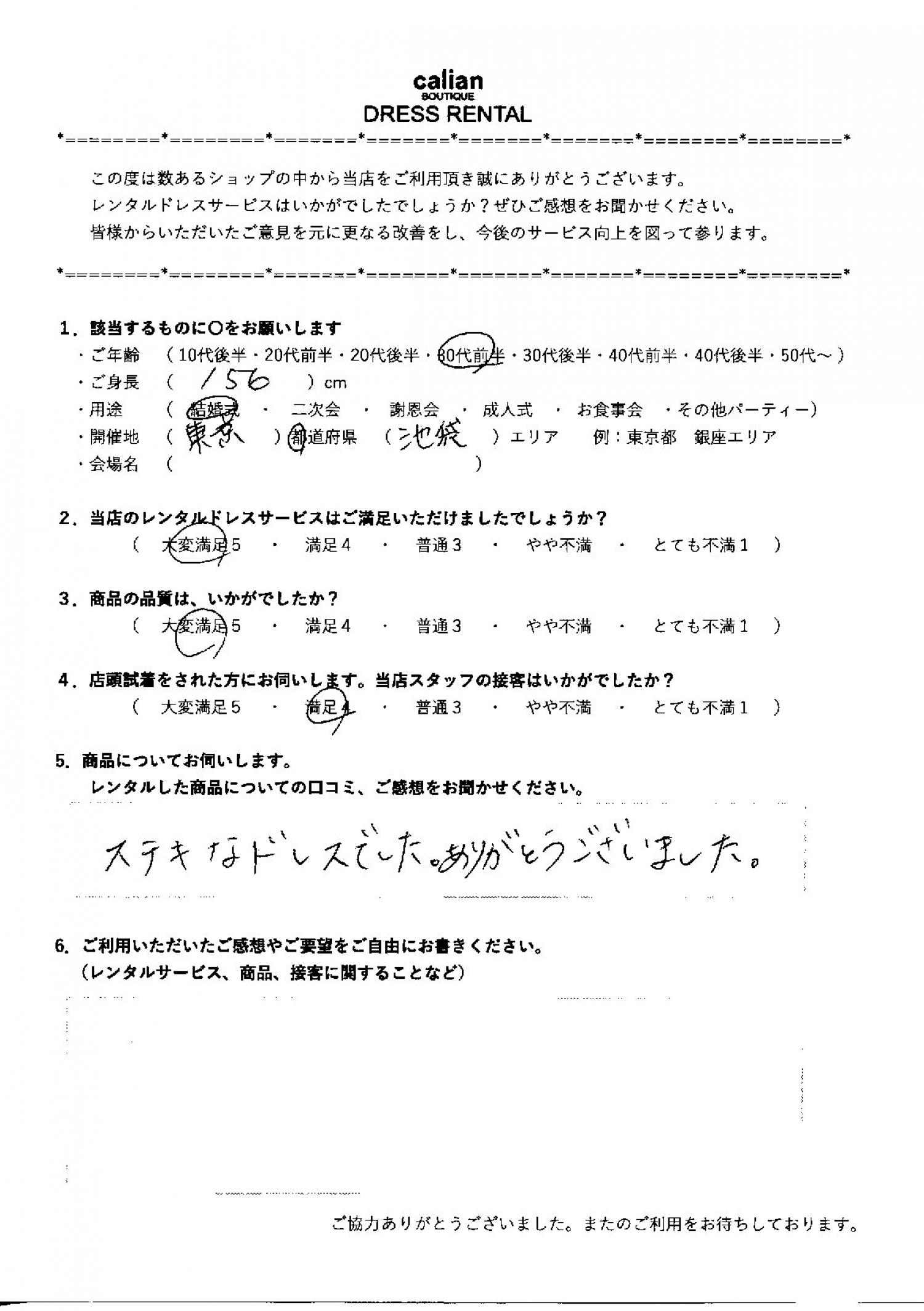 ステキなドレスでした。ありがとうございました。