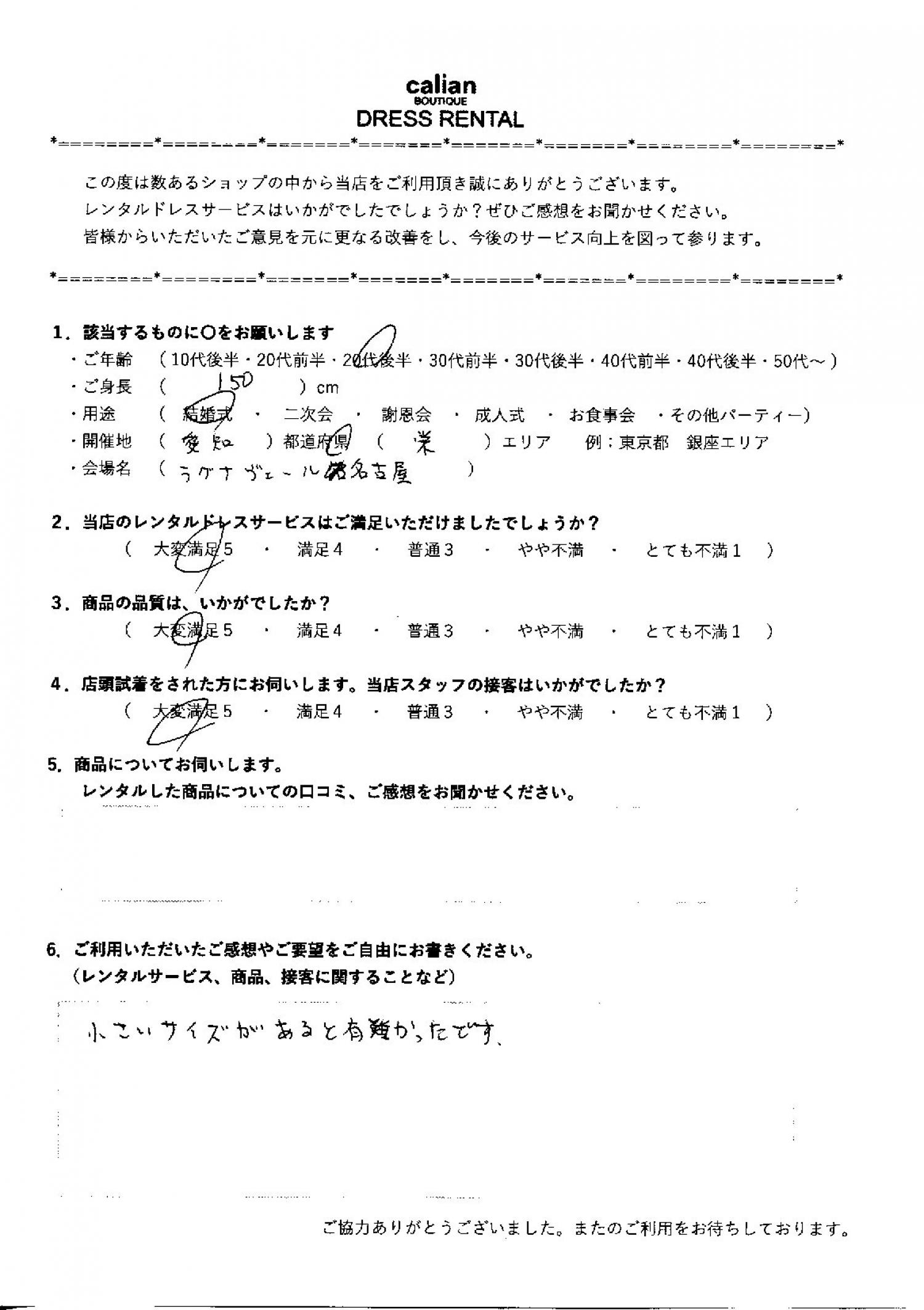 2.当店のレンタルドレスサービスはご満足いただけましたでしょうか?