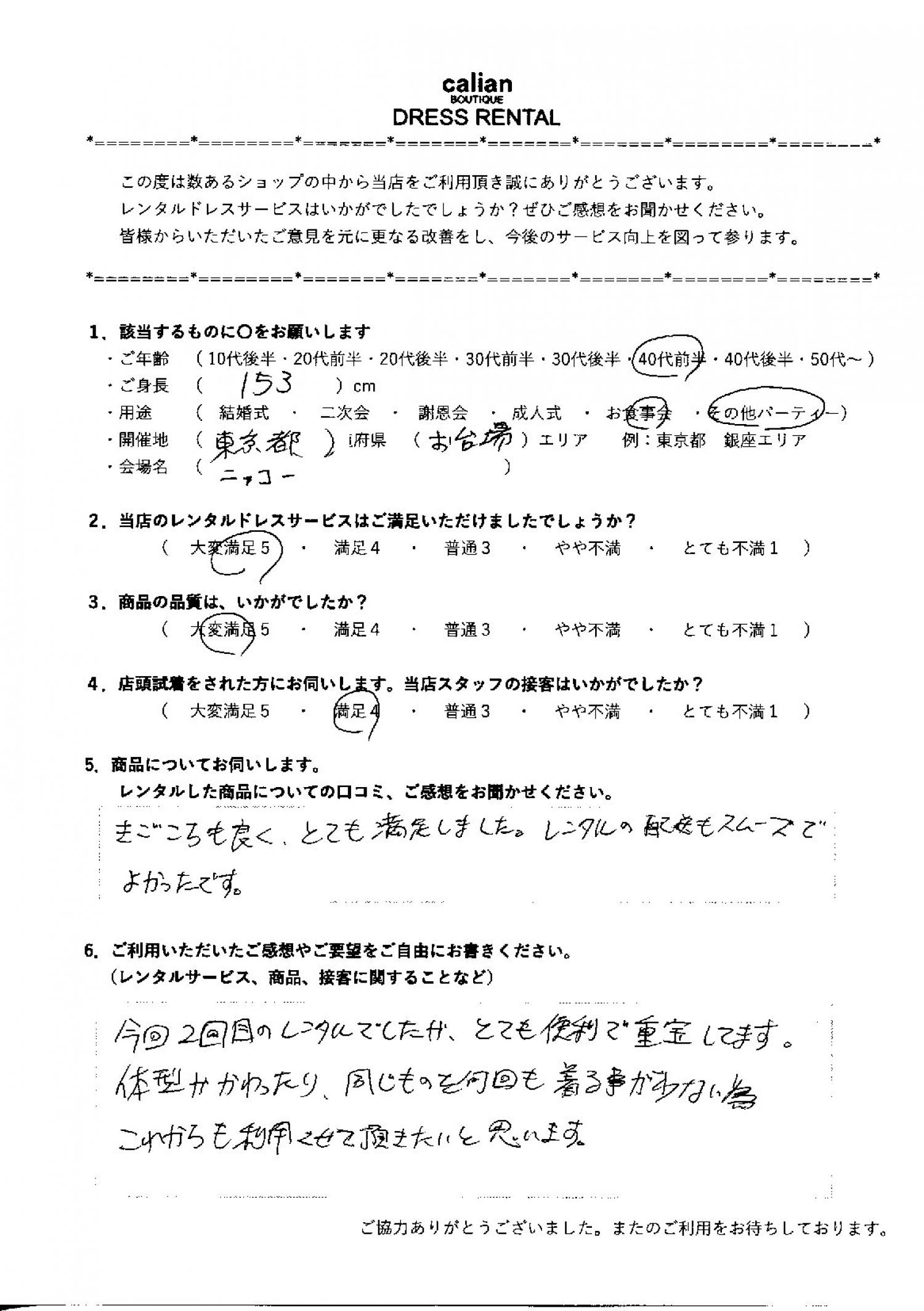 2.当店のレンタルドレスサービスはご満足いただけましたでしょうか?
