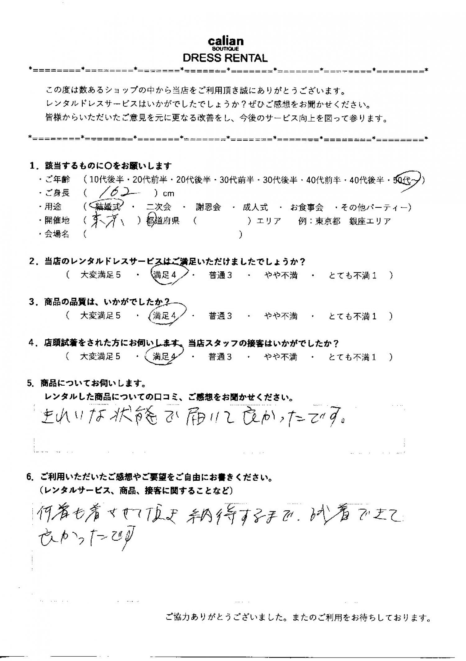 何着も着させて頂き納得するまで、試着出来て良かったです。