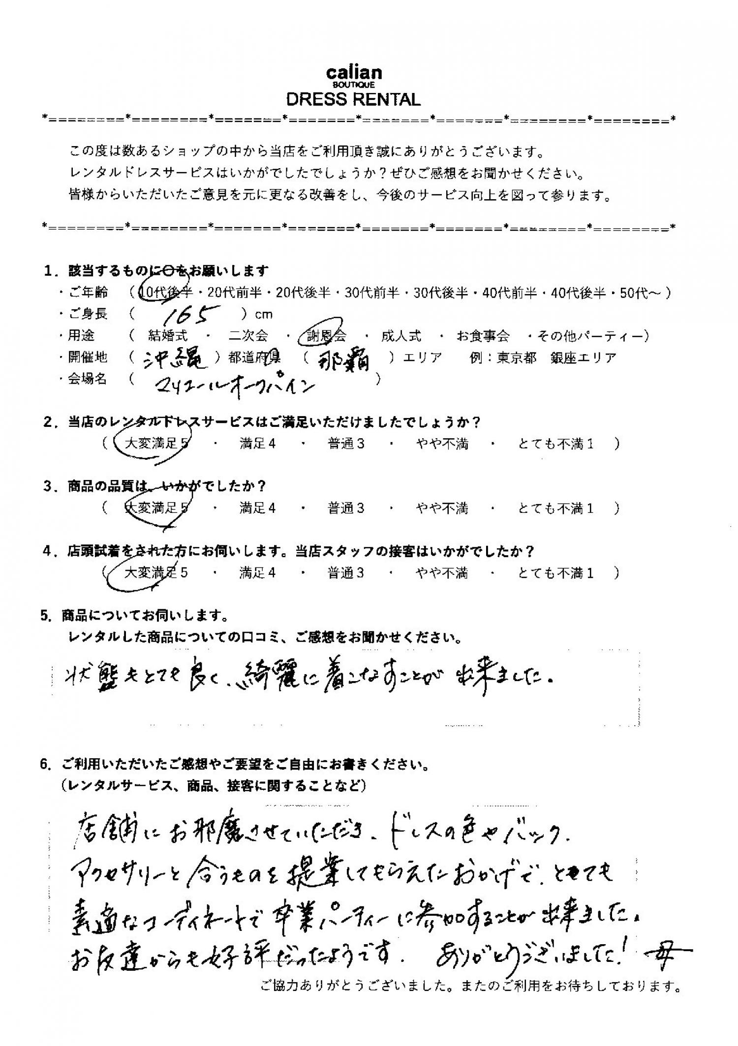 2026/03/01 謝恩会利用 沖縄県(那覇エリア)LLサイズ