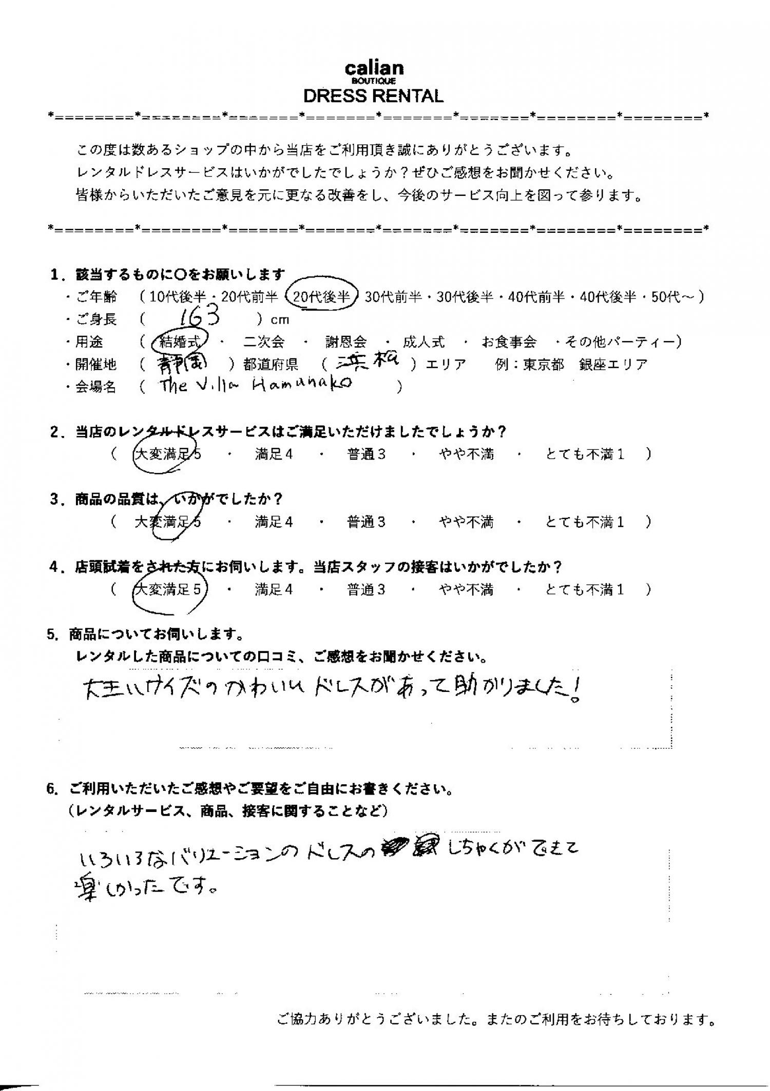 2.当店のレンタルドレスサービスはご満足いただけましたでしょうか?