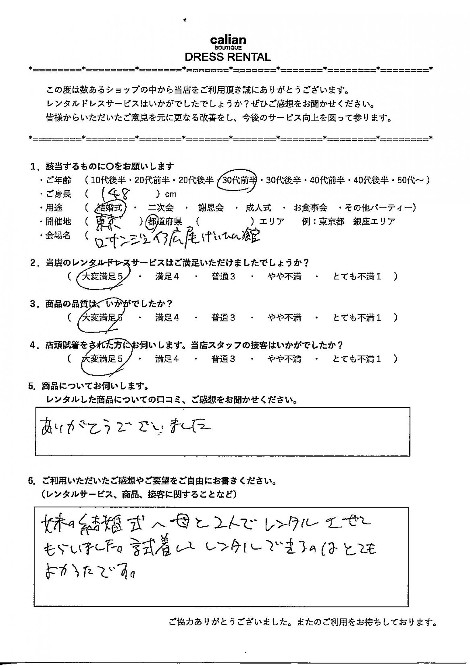 妹の結婚式へ母と二人でレンタルさせてもらいました。試着してレンタルできるのはとてもよかったです。