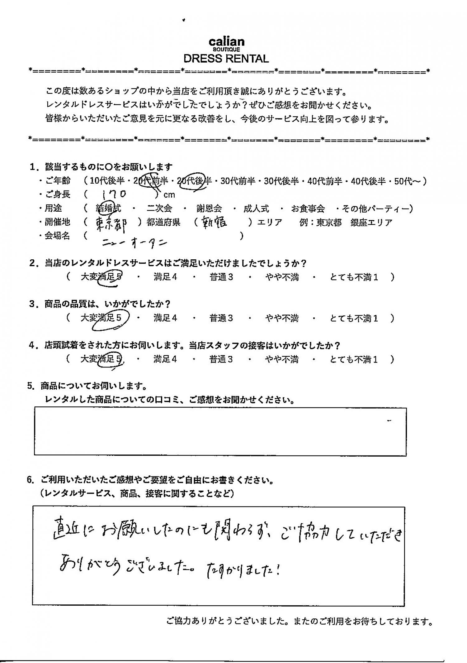 2.当店のレンタルドレスサービスはご満足いただけましたでしょうか?