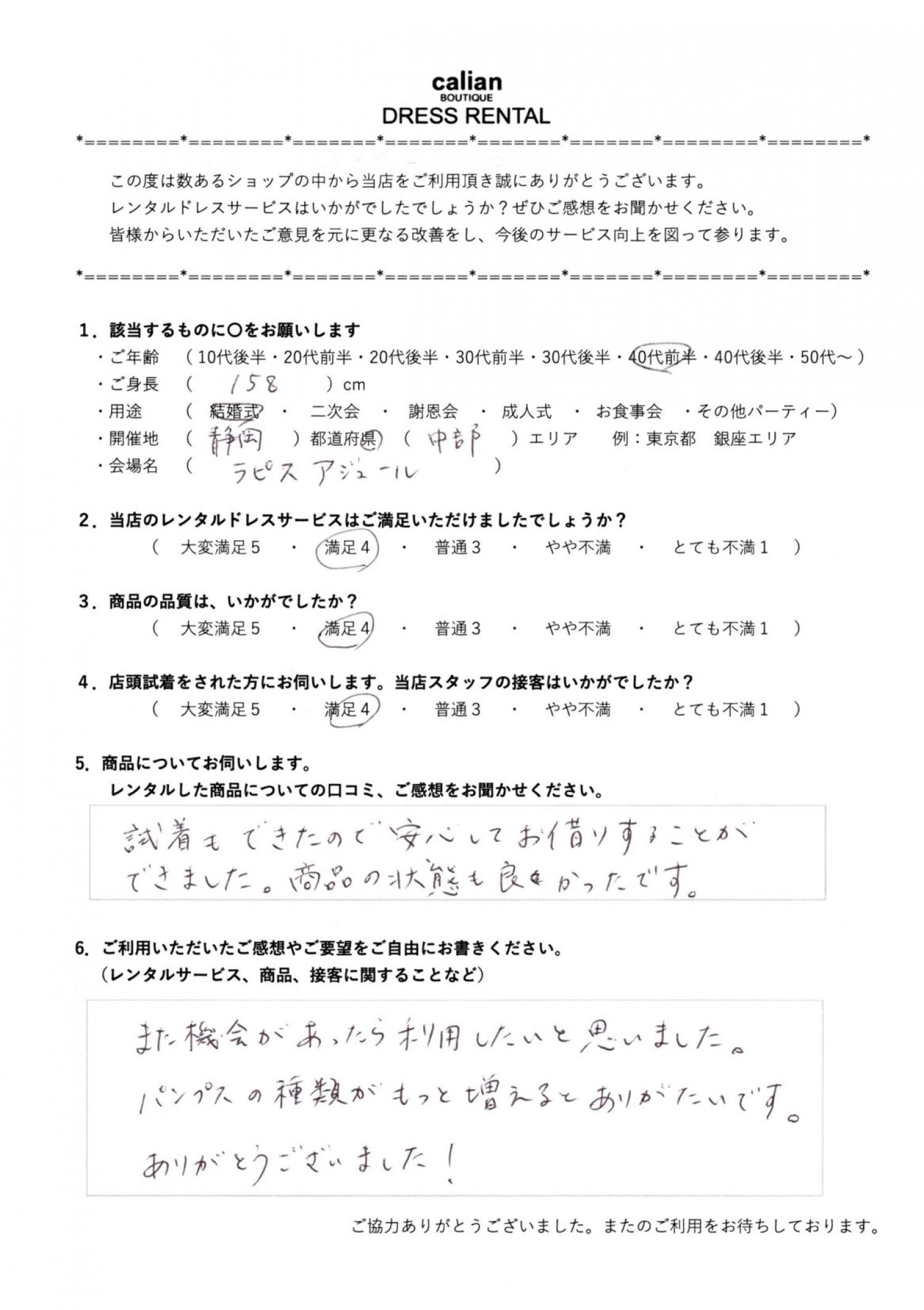 2.当店のレンタルドレスサービスはご満足いただけましたでしょうか?