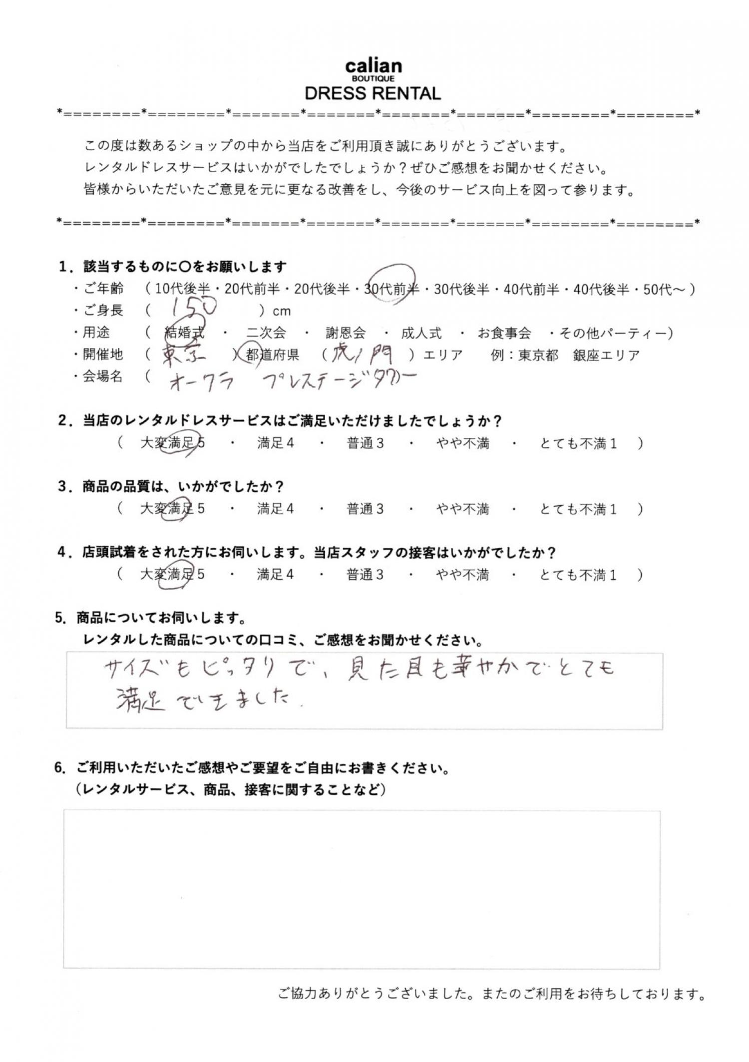 サイズもピッタリで、見た目も華やかでとても満足できました。