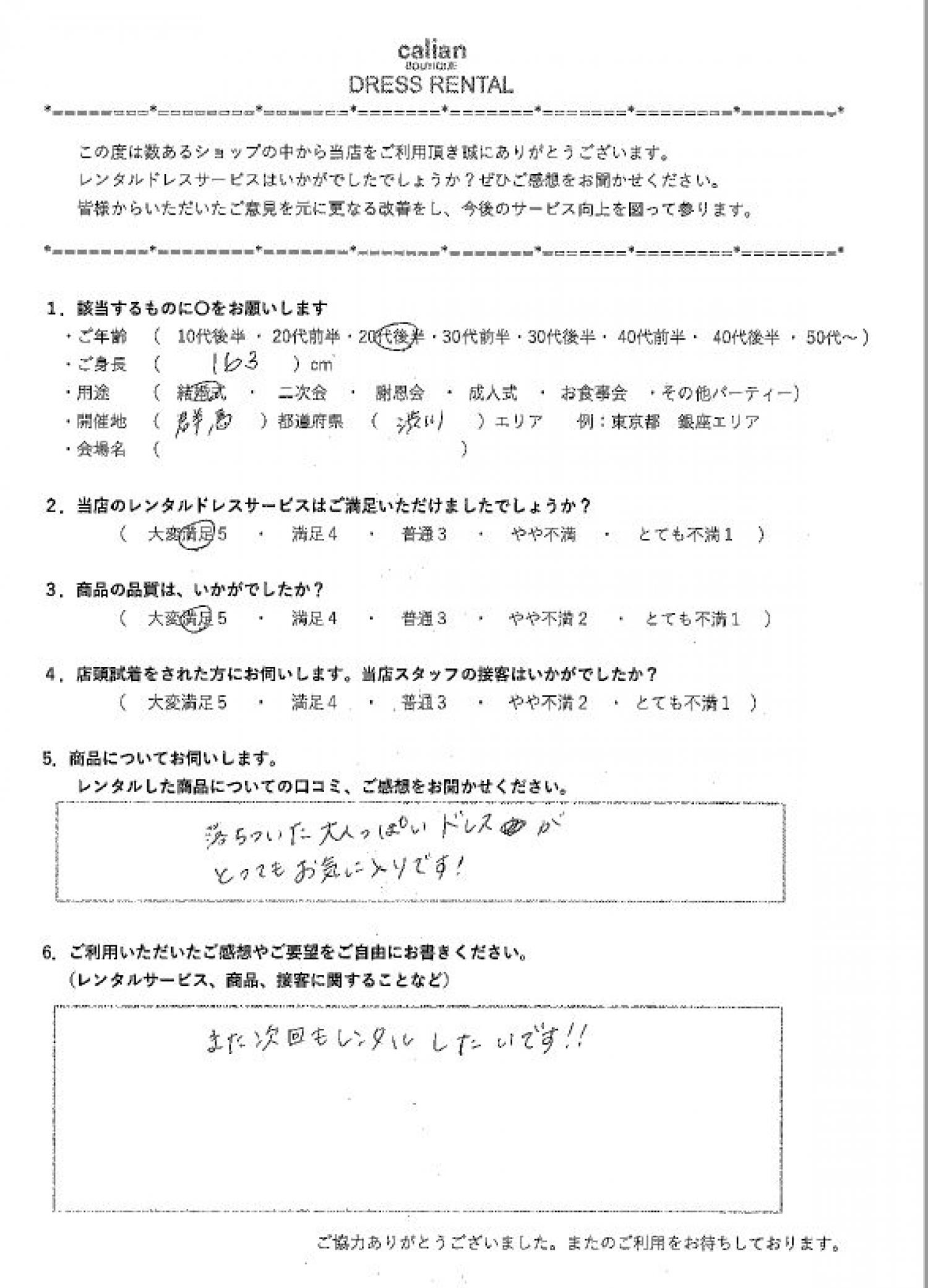 2.当店のレンタルドレスサービスはご満足いただけましたでしょうか?