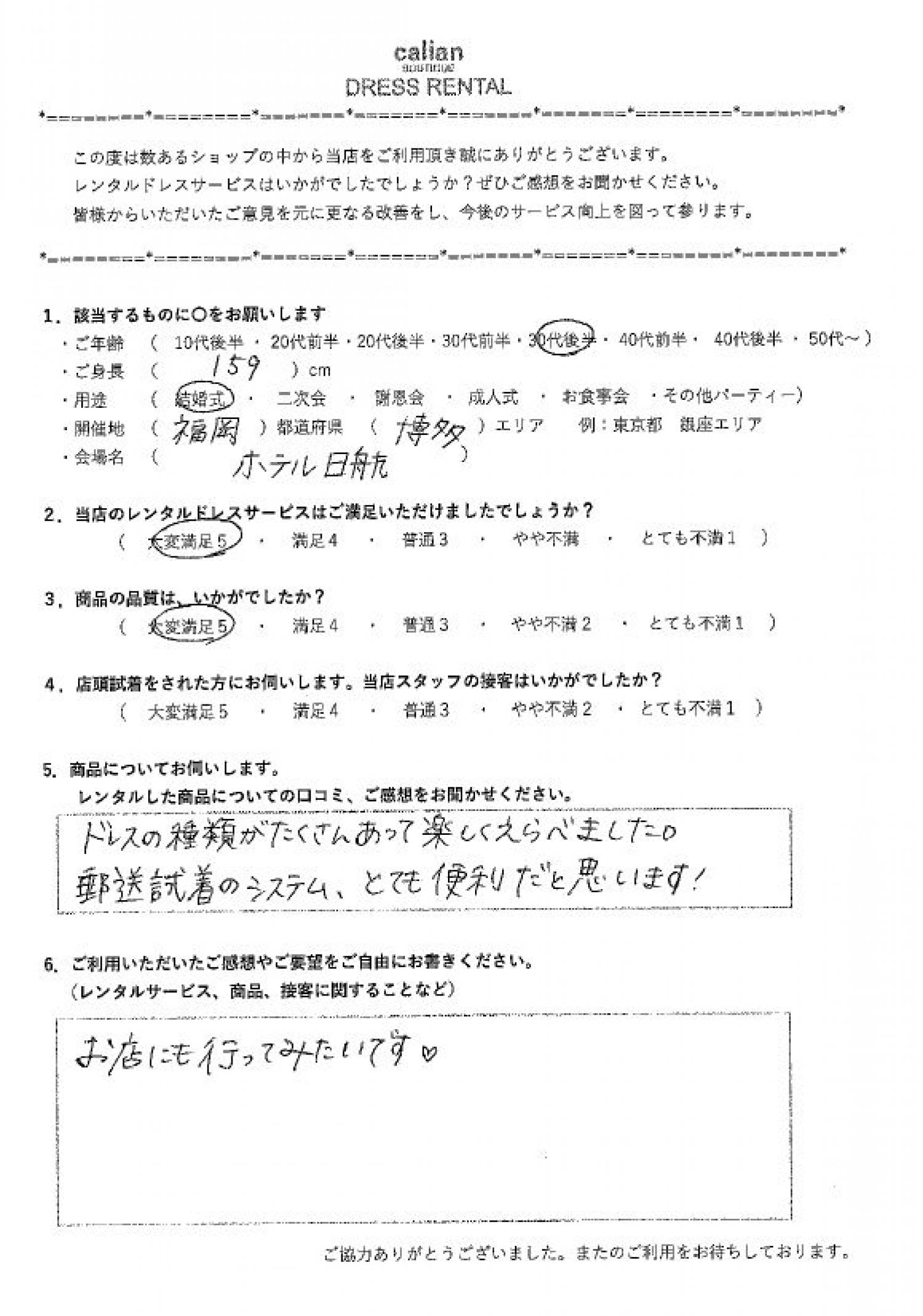 2.当店のレンタルドレスサービスはご満足いただけましたでしょうか?