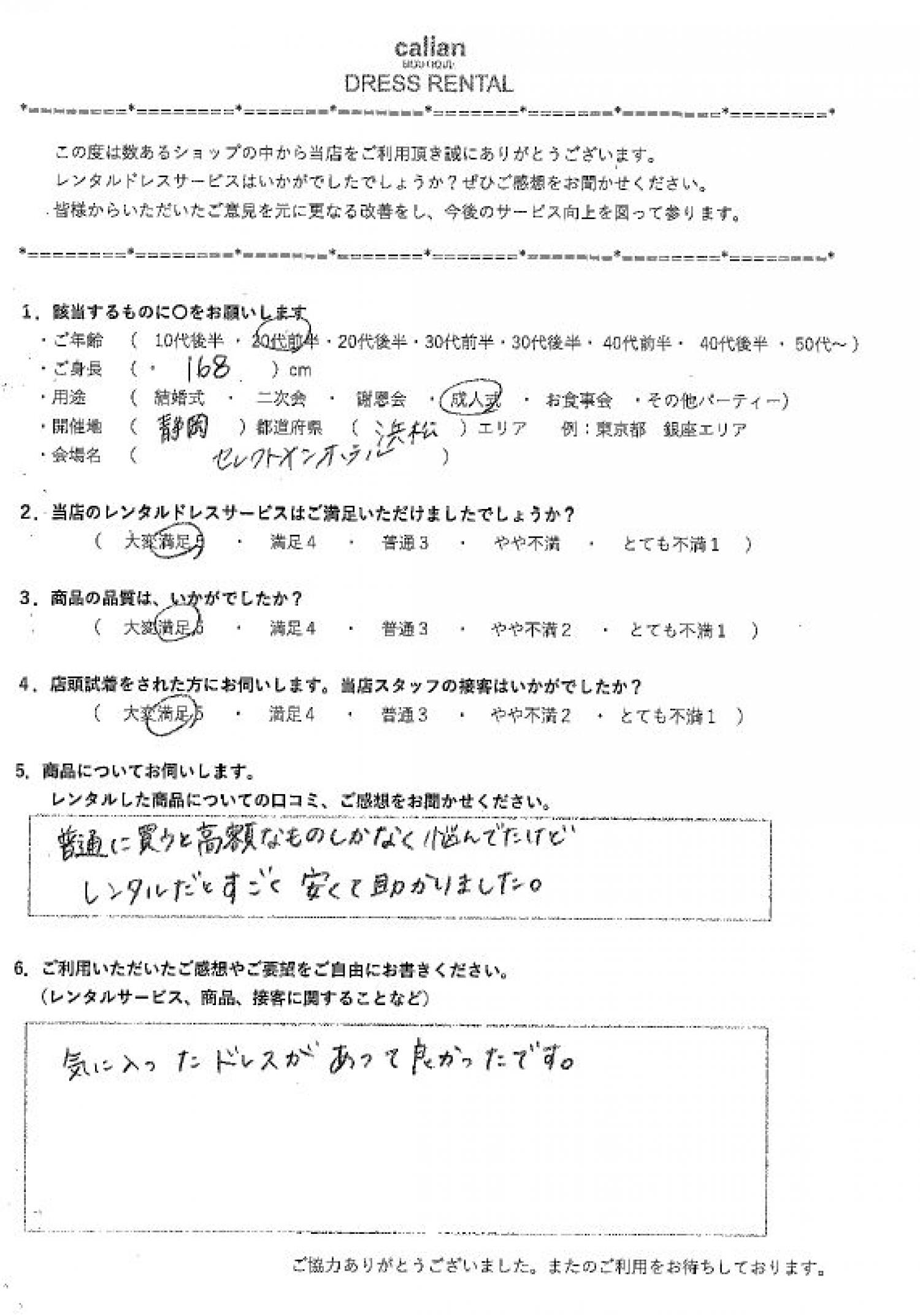 2.当店のレンタルドレスサービスはご満足いただけましたでしょうか?