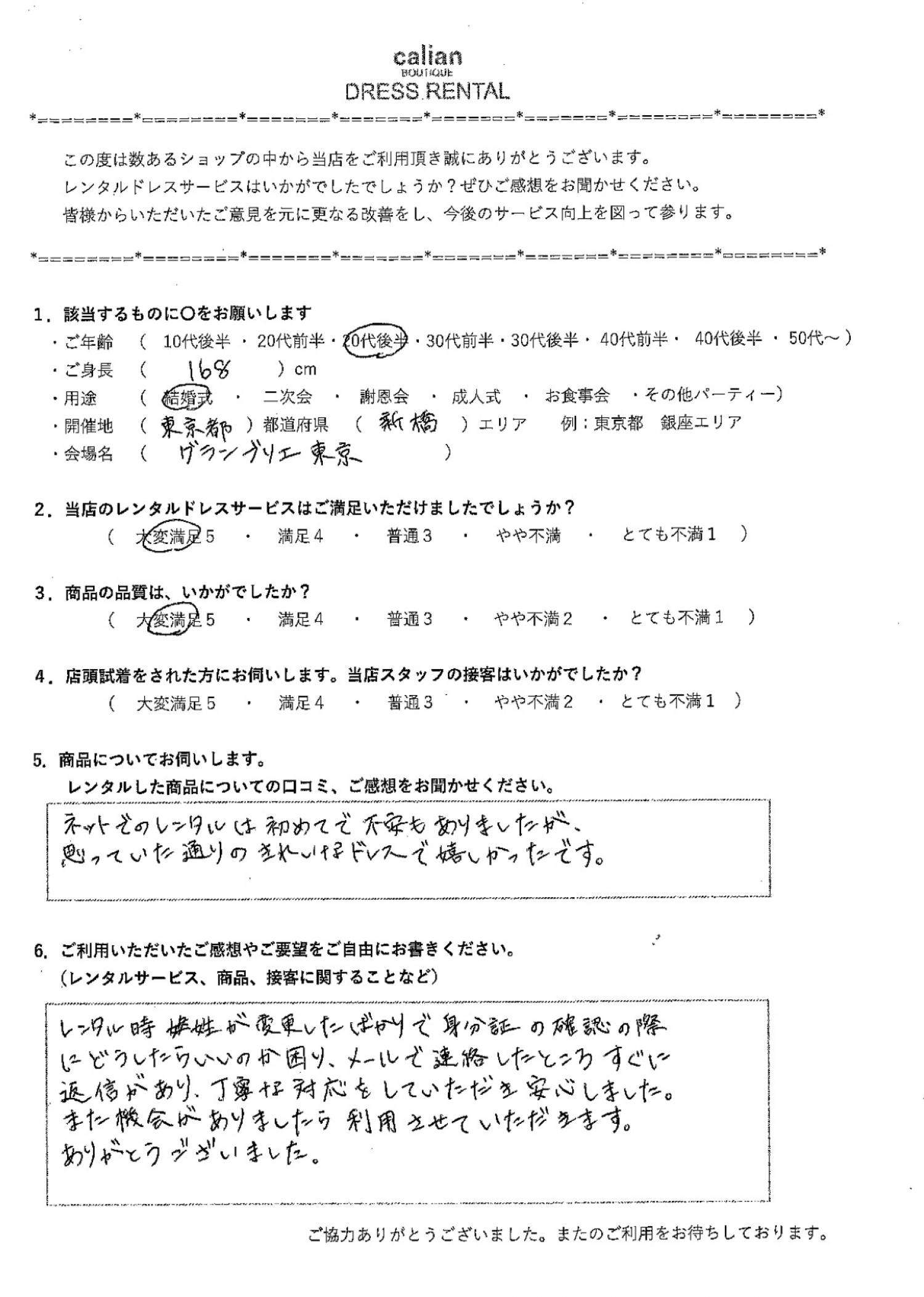 この度はキャリアンブティックドレスレンタルをご利用いただき誠にありがとうございます。