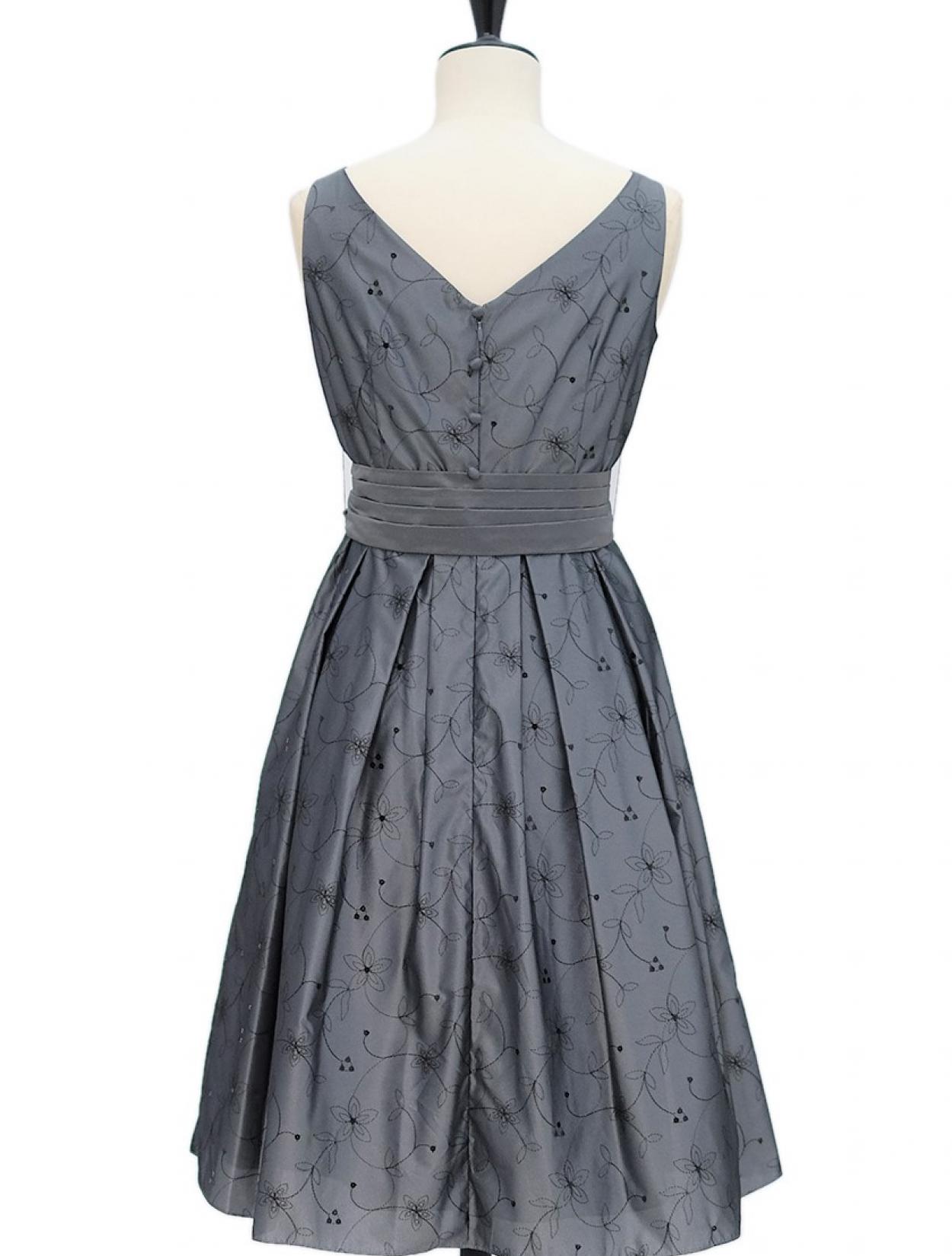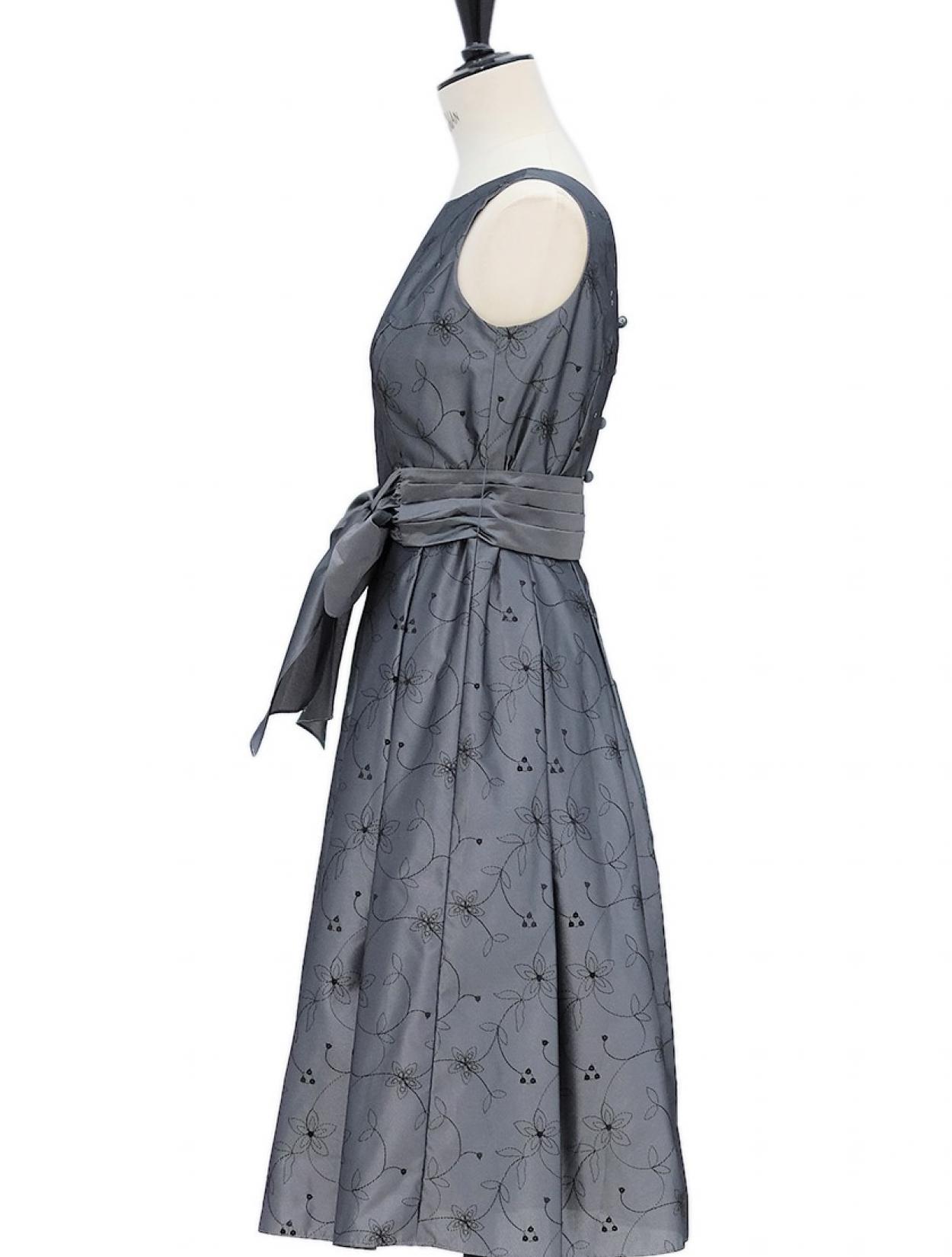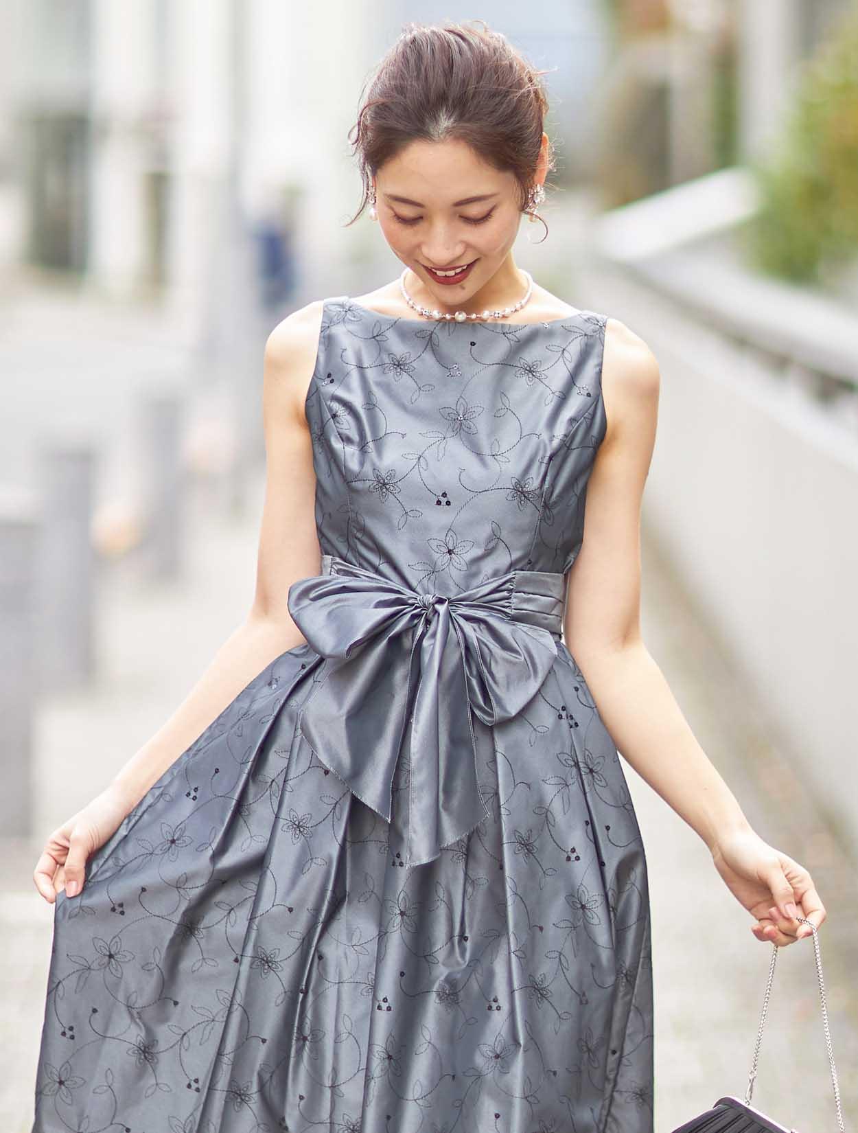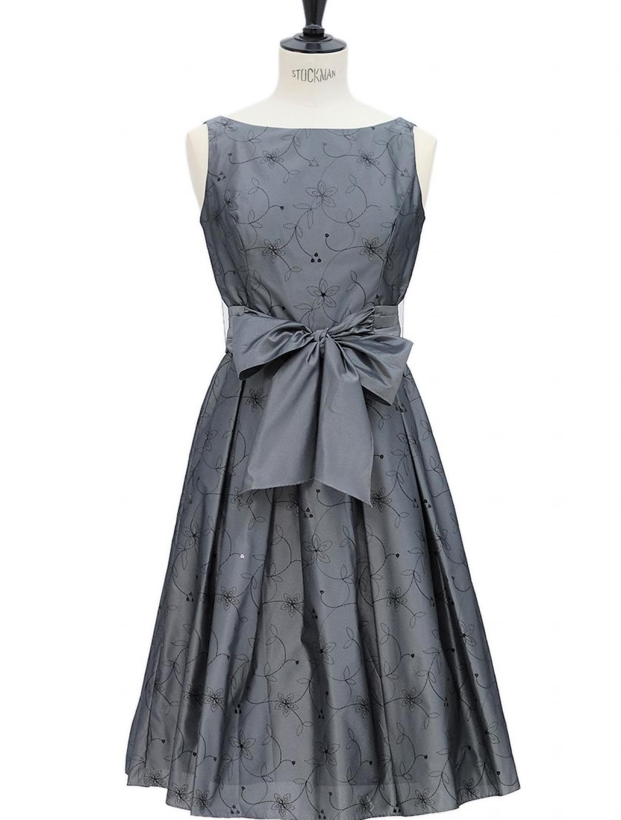 | A2. | ドレスの模様は、刺繍になります。グレーの生地に、黒の糸で刺繍したデザインです。黒い丸はスパンコールです。マットな黒のスパンコールですので、ギラギラしておらず、上品な仕上がりです。 |