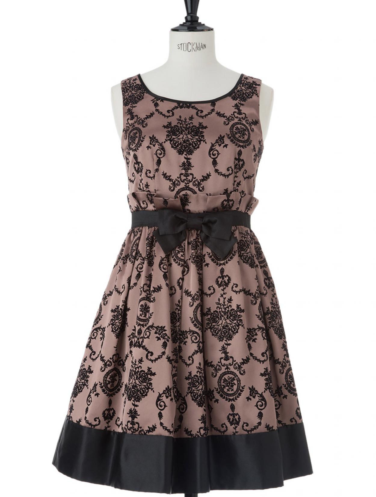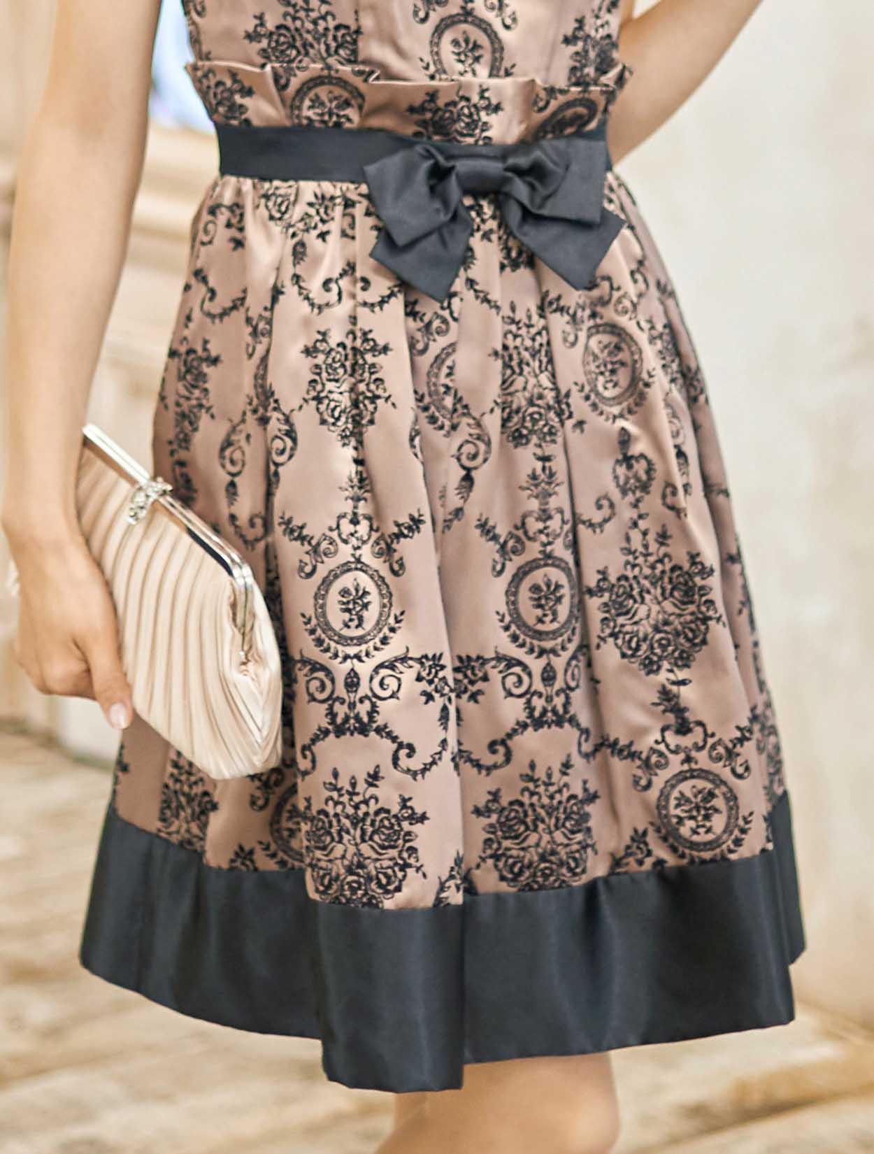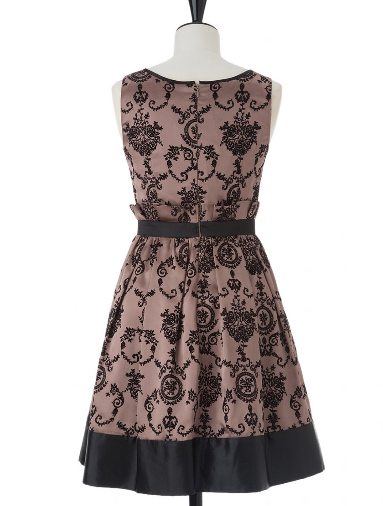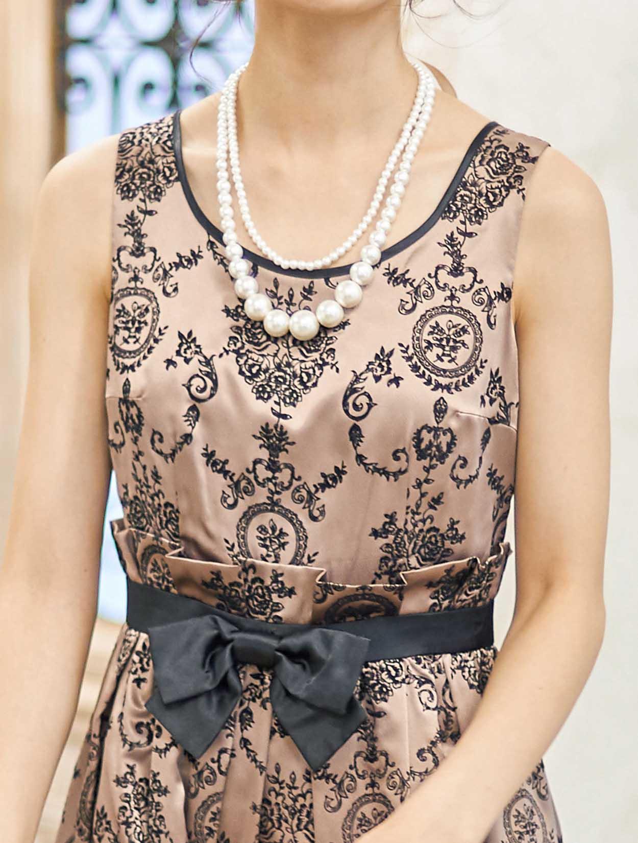 | A2. | 光沢のあるベージュのサテン地にフロッキープリントを施されております。フロッキープリントとはプリント部分にやや凸感があるのが特徴です。 |