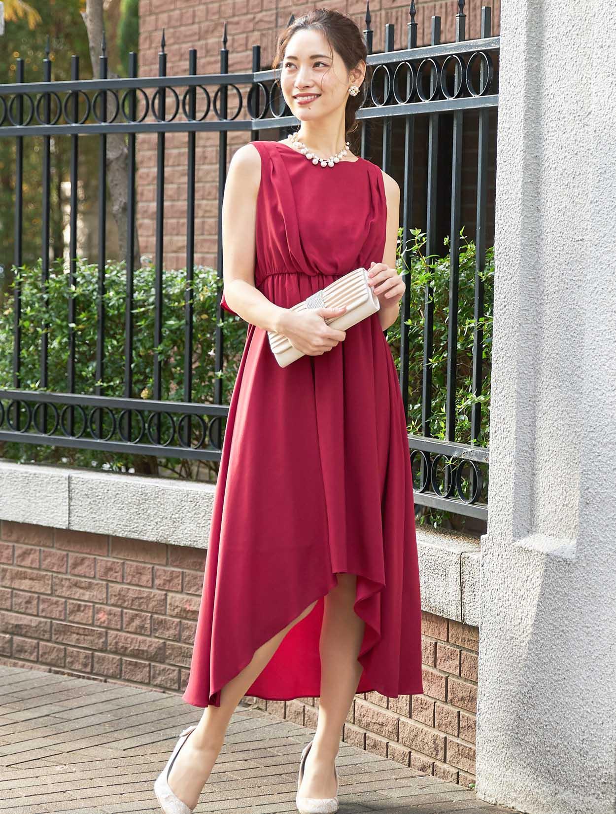| A2. | 前の着丈が99cmのドレスですので、156cmの方ですと膝が隠れるくらいの丈になるかと思います。 |