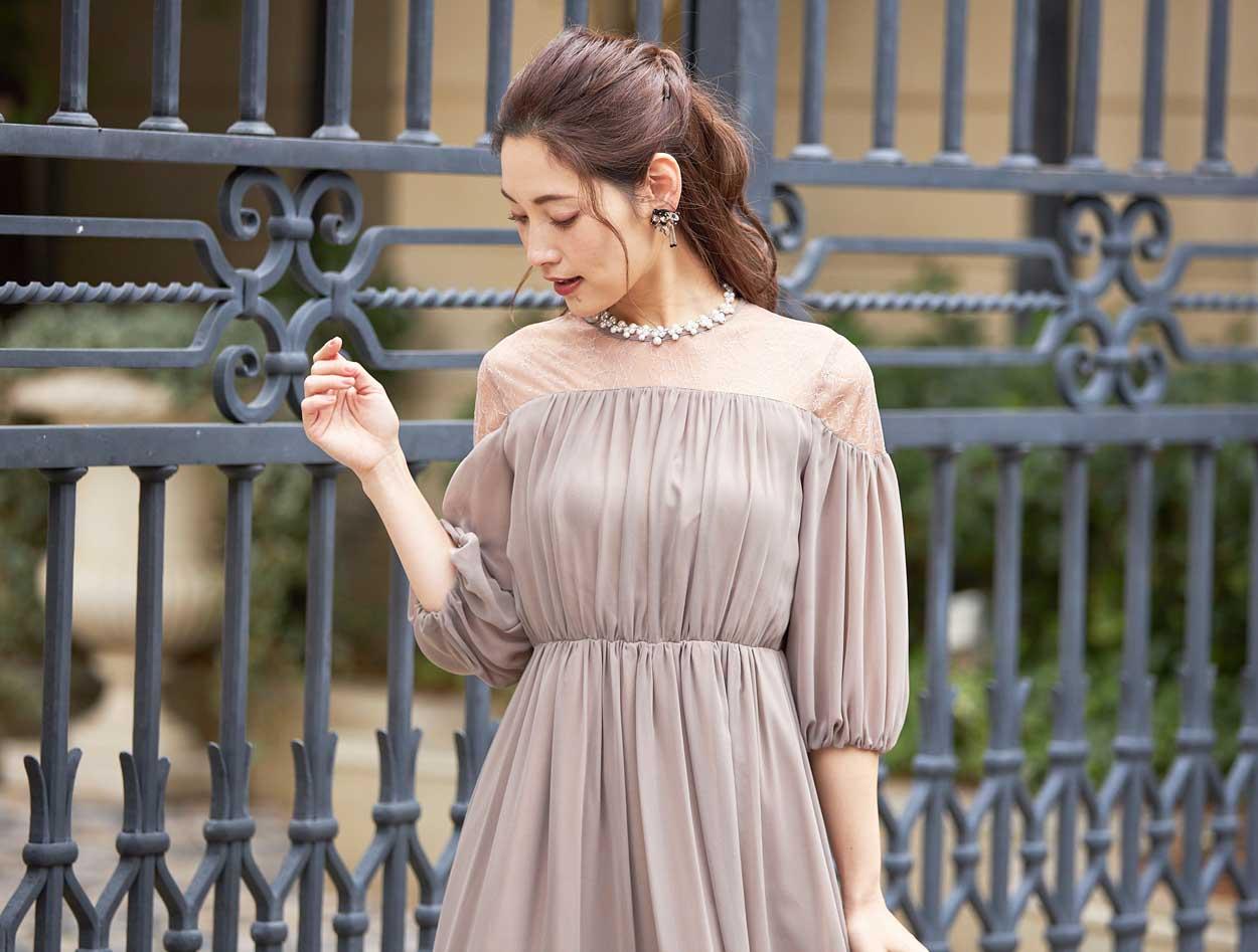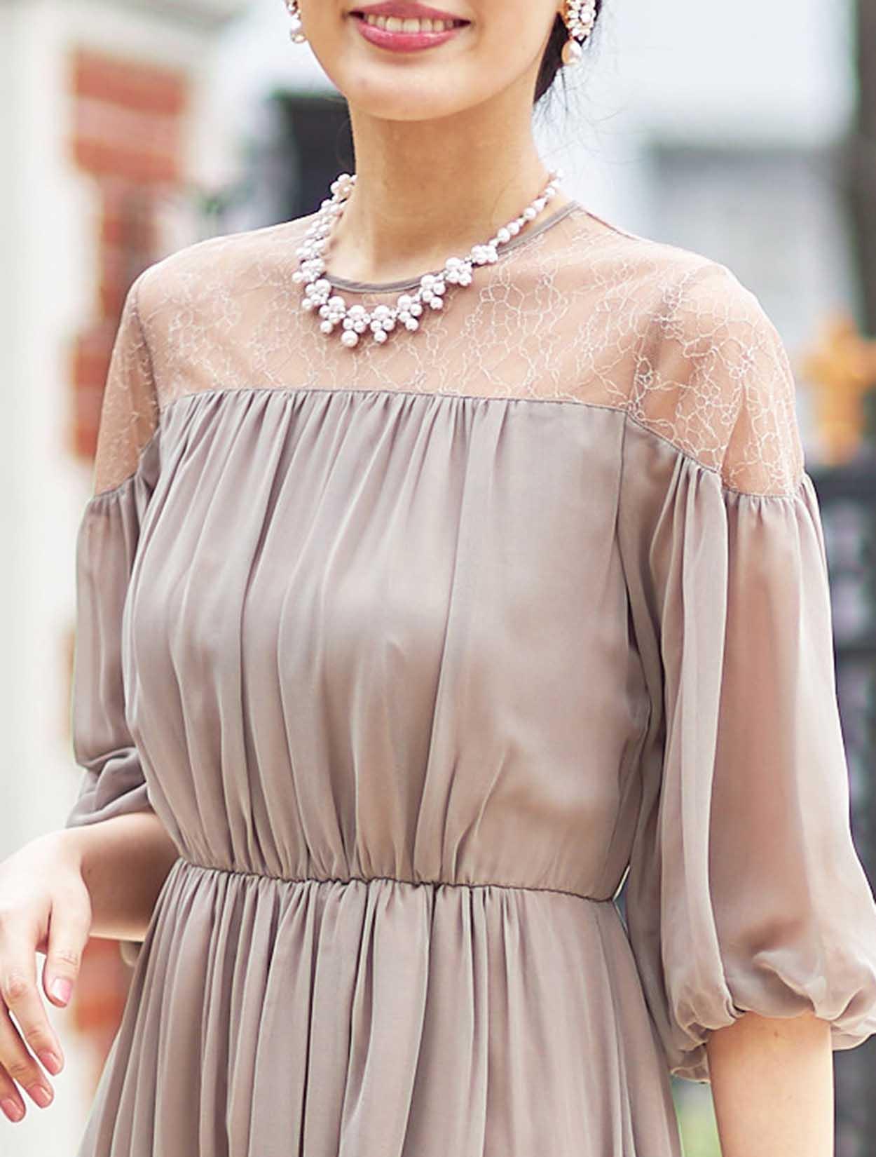 | A4. | 長めのネックレスも良く似合うドレスです。セットでは短いネックレスですが、ネックレスの変更もしくはお手持ちのネックレスをご利用いただくことができます。 |