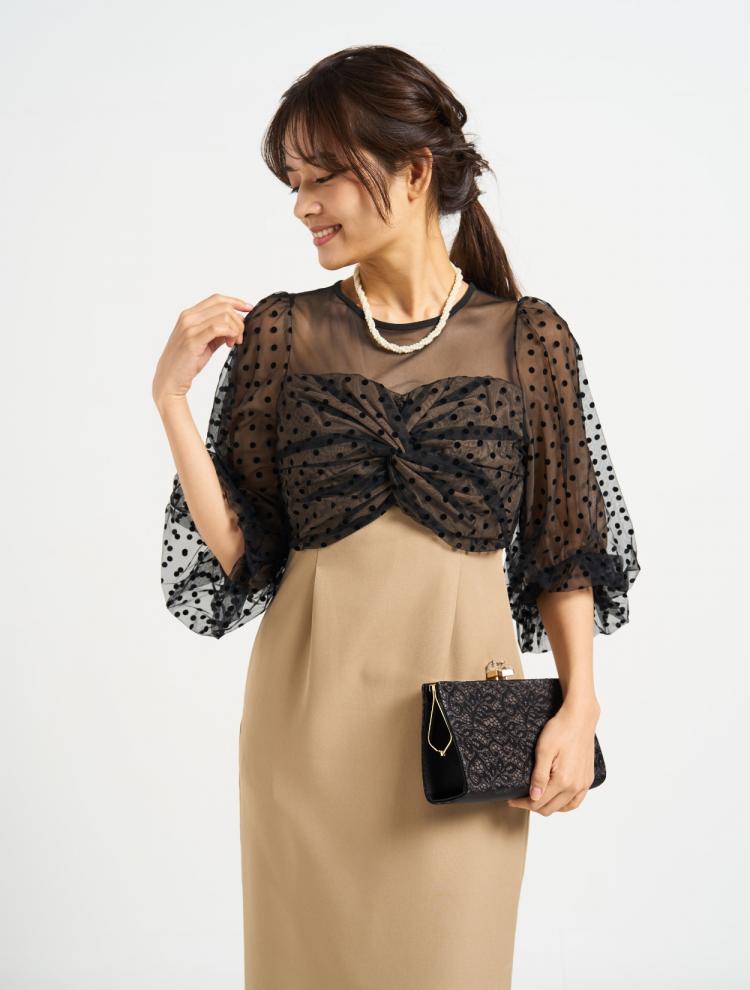 近年一段と人気が高くなってきた袖ありのドレスは、ストールやジャケットなどの羽織を用意せずとも、1枚で品よく着こなせるパーティードレスです。