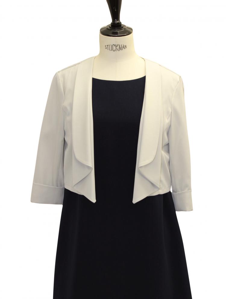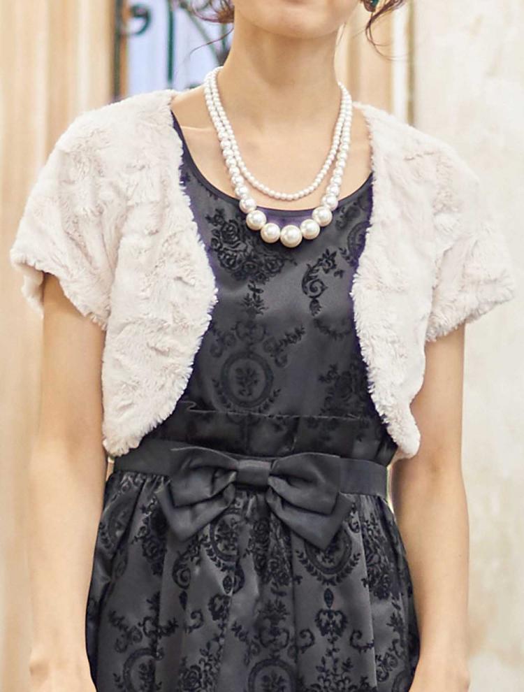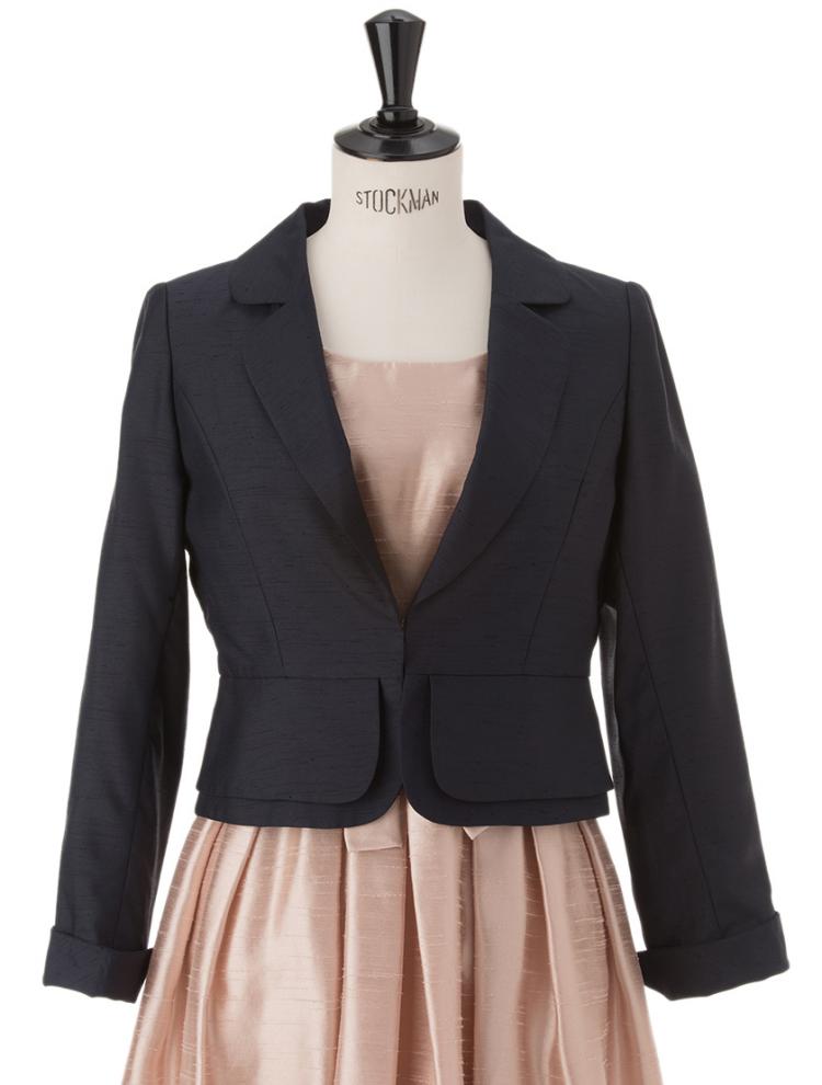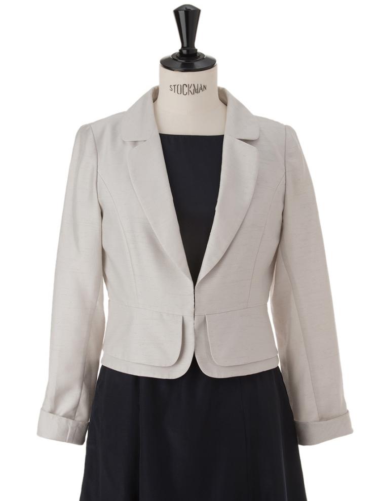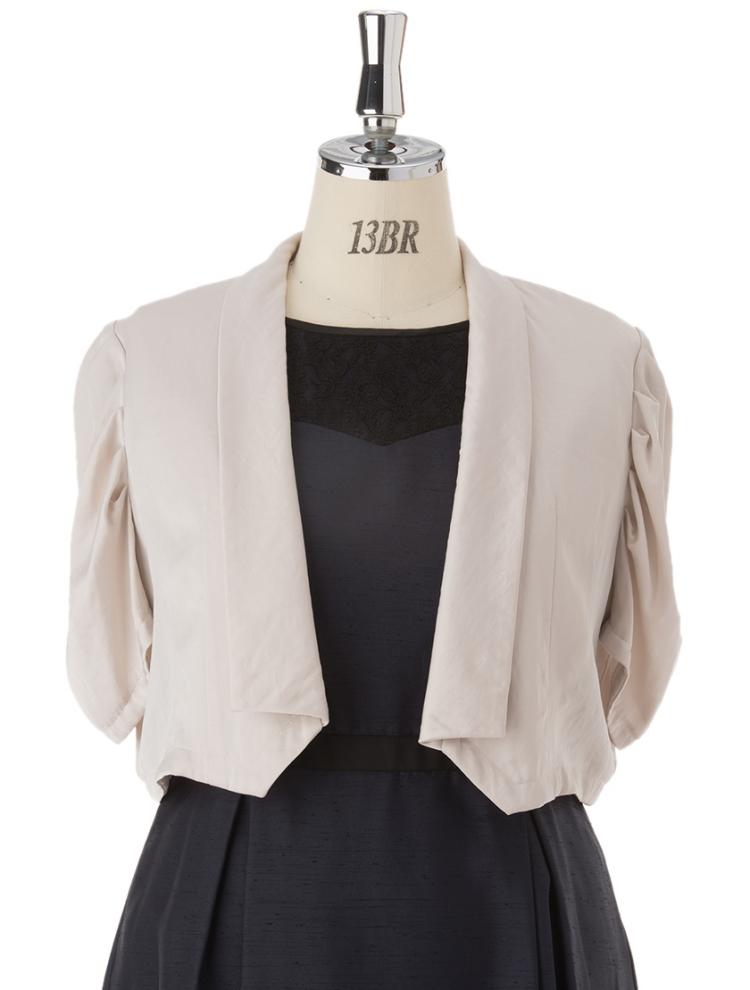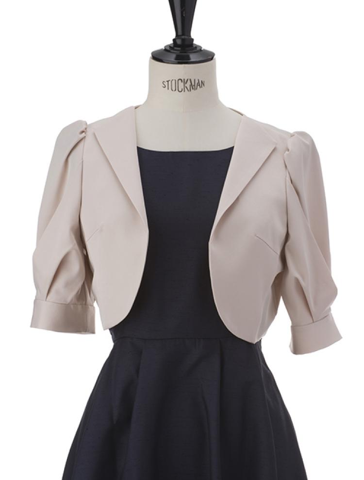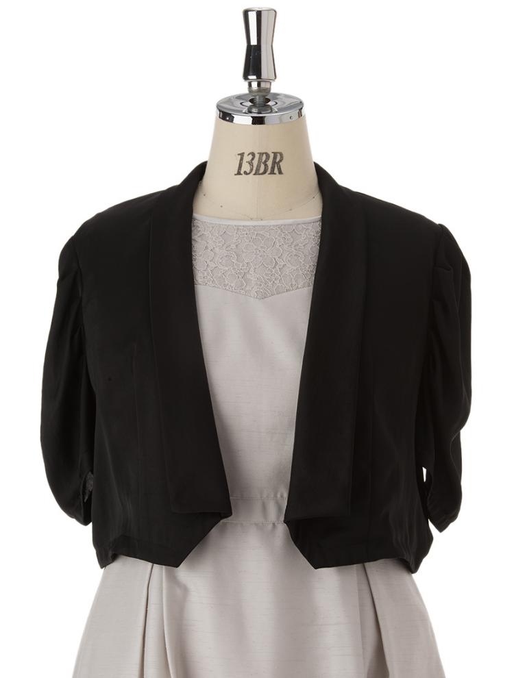 ボレロは着丈が短めなので、羽織ると後姿がスッキリ脚長に見えるのも嬉しいポイント。また、しっかり袖を通せて着崩れの心配がないので、ノースリーブドレスで受付やスピーチなど任されている方にはおすすめの羽織です。