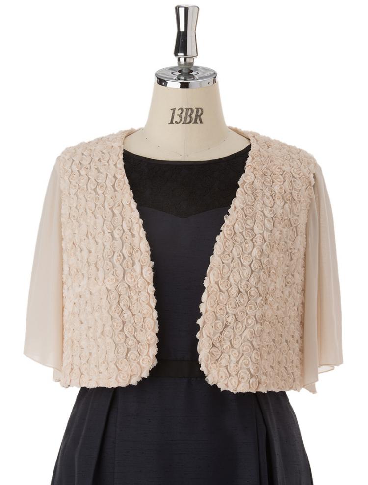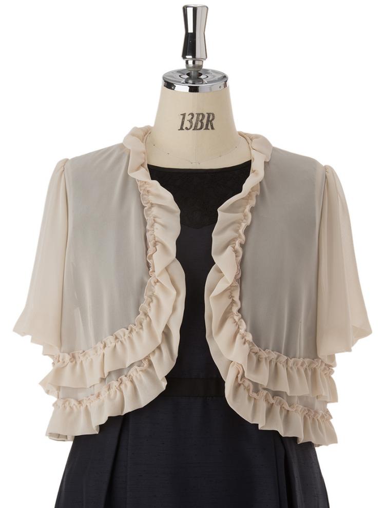 結婚式やパーティーにおすすめのボレロ・ストール。柔らかいシフォン素材のボレロからジャケットスタイルまで幅広いデザインをご用意しております。