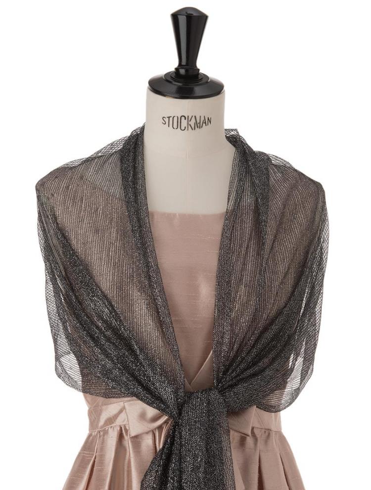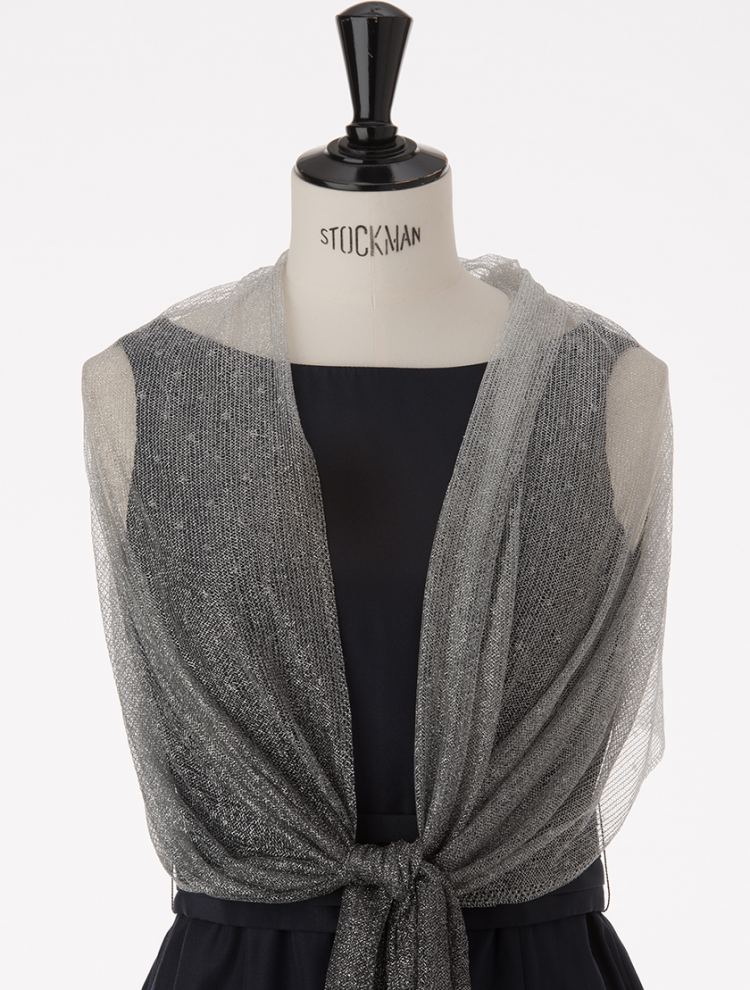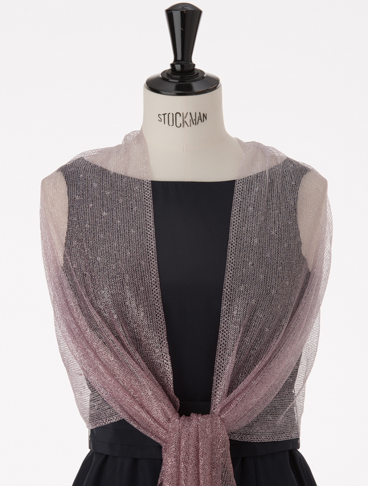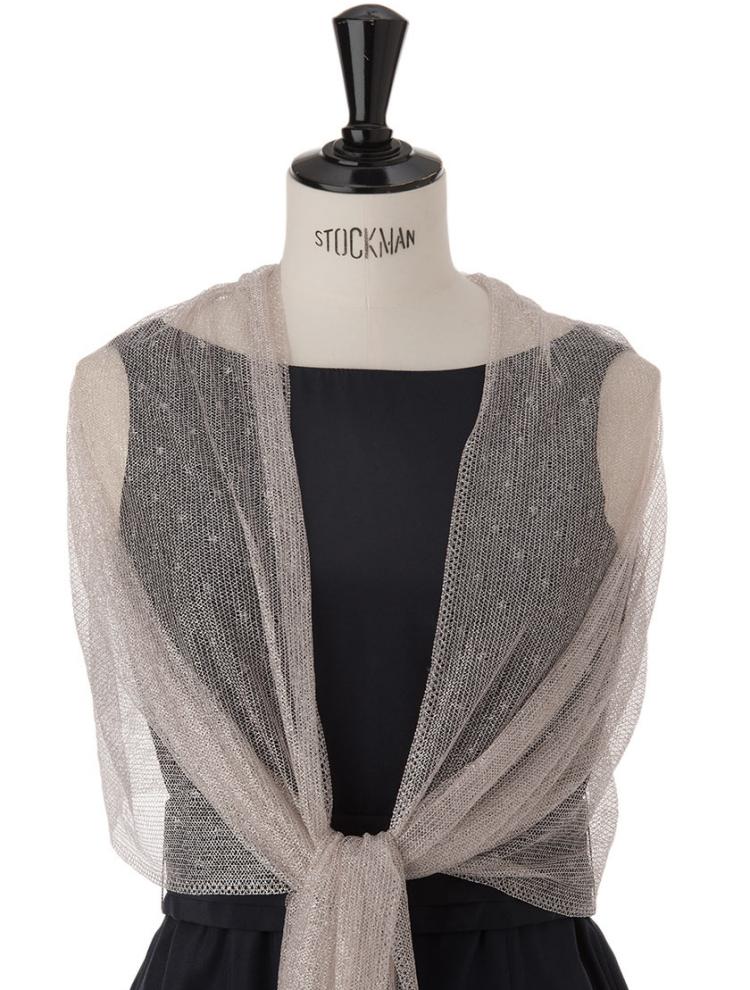 ラメが入った素材のショールはパーティー感もあって華やかな印象になります。レースやオーガンジーの素材のショールは、華やかな中にも上品な印象でご親族にもおすすめです。肩からサッと羽織るだけのショール、慣れれば上手に着こなせますが着崩れが心配な方には、袖通し付きのショールもあるのでそちらがおすすめ。肩から掛けるだけのタイプのショールは、ショールの先を前で結んだり後ろで結んだりすると安定感が出ます。袖付きのドレスに羽織を使いたい場合は、サッと羽織れるショールがおすすめです。