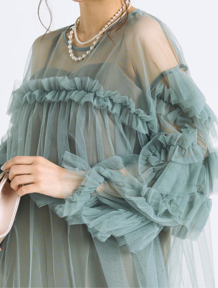 30代がボレロを着るときは、ロング丈やミモレ丈、Iラインやタイトめのスカートなど、大人っぽいデザインのドレスに合わせると◎。