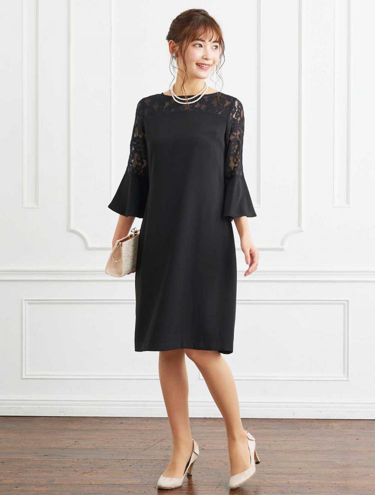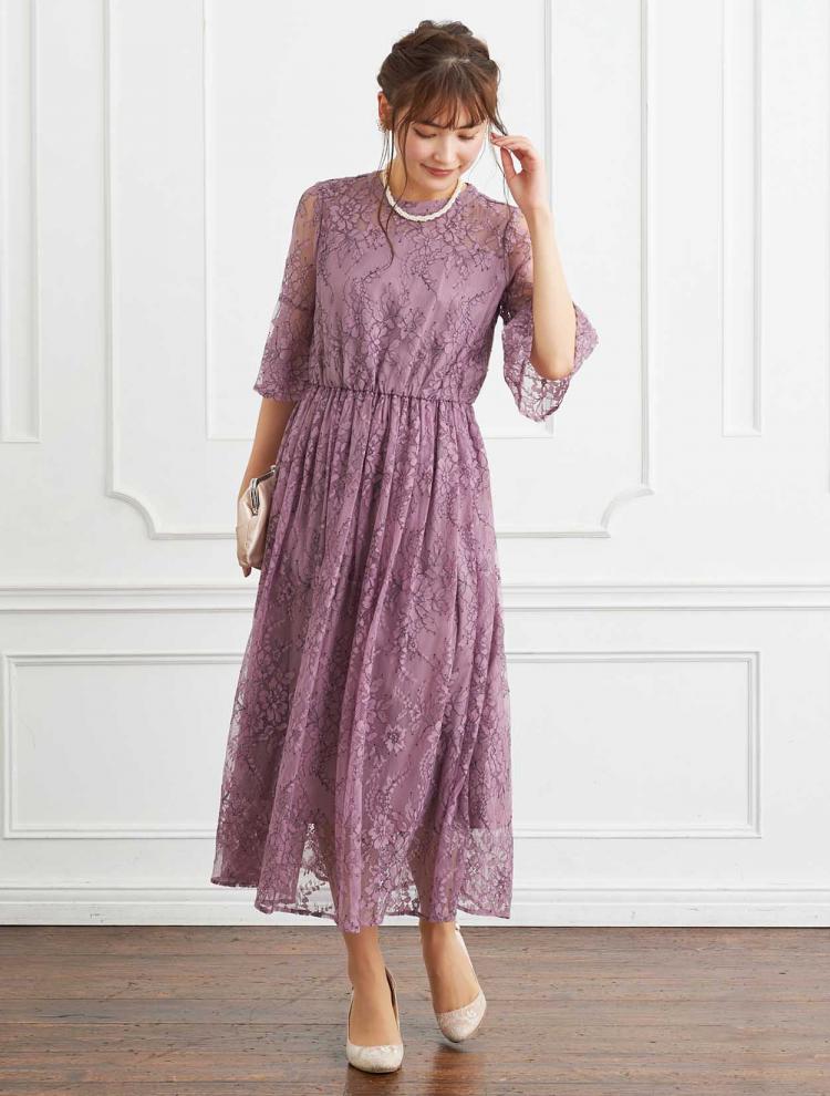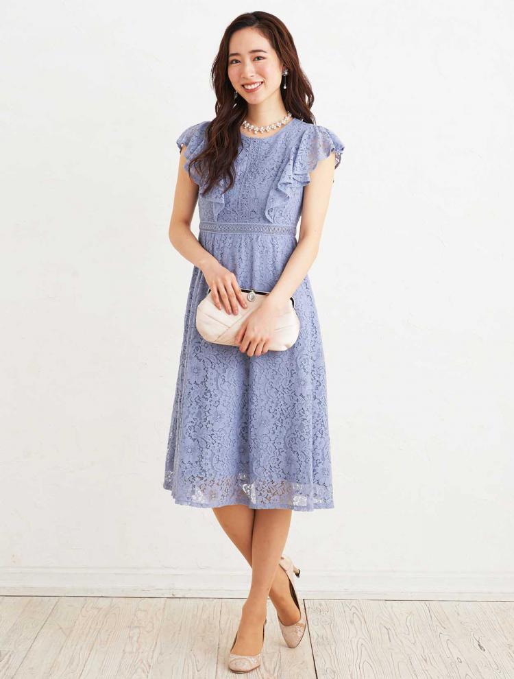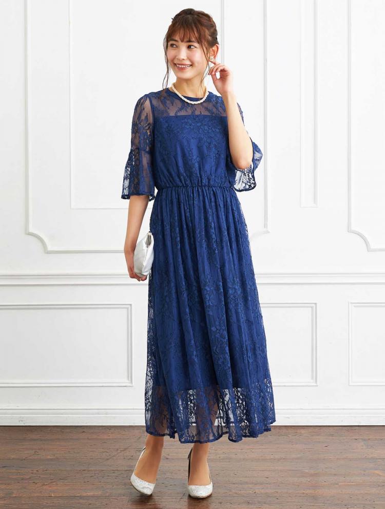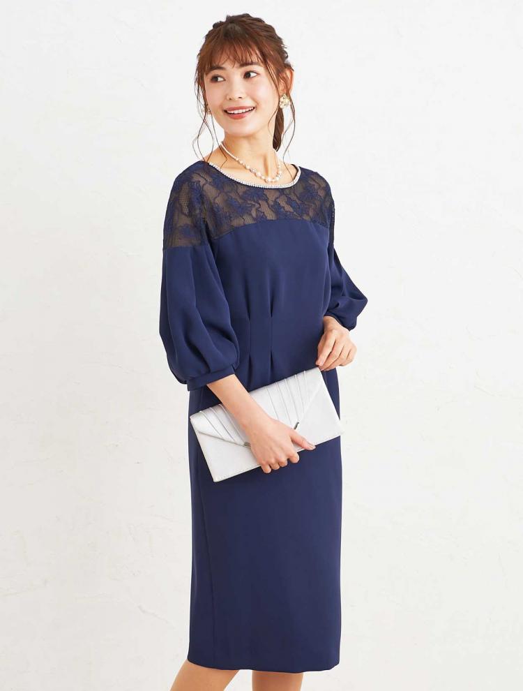 充分な袖丈のあるドレスは、ショールやボレロなどを羽織らず、ドレス1枚で結婚式や披露宴に出席できるため人気の高いお呼ばれドレスです。気になる二の腕もおしゃれにカバーしてくれる袖付きのドレスですが、袖丈が長いタイプのデザインを夏場など暑い時期に着る場合は、軽やかで透け感のあるシフォン素材のものや、通気性のよいレース素材を選んであげると、見た目も着心地も爽やかに着ていただけます。