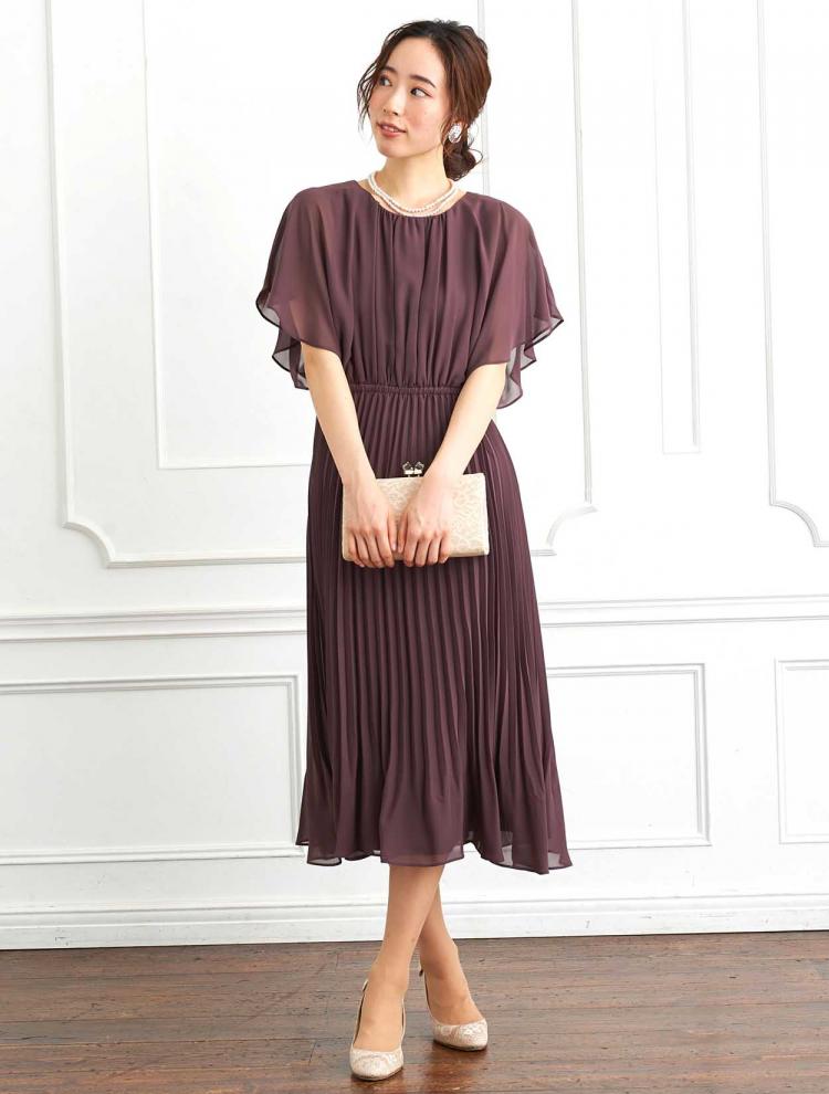 幅広い年代が出席される場合には、ある程度の袖丈があり、ひざ下~ふくらはぎ辺りのミディ丈~ロング丈のドレスがおすすめです。