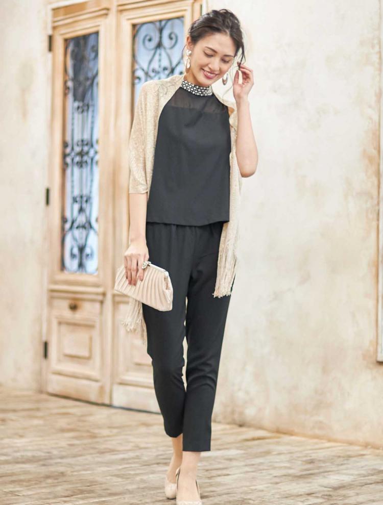 いくらカジュアルな二次会にお呼ばれされたといっても、普段着の様なTシャツやジーンズはNGです。キレイめな袖付きワンピースやパンツドレスのセットアップを楽しむのもおすすめ。