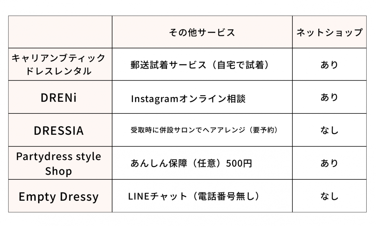 3. 試着ができる都内レンタルドレスショップのサービス比較