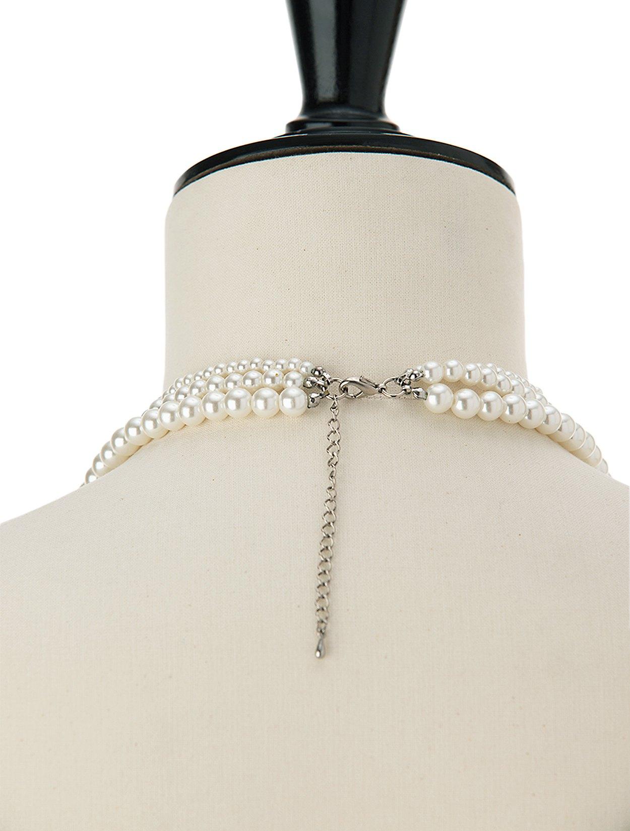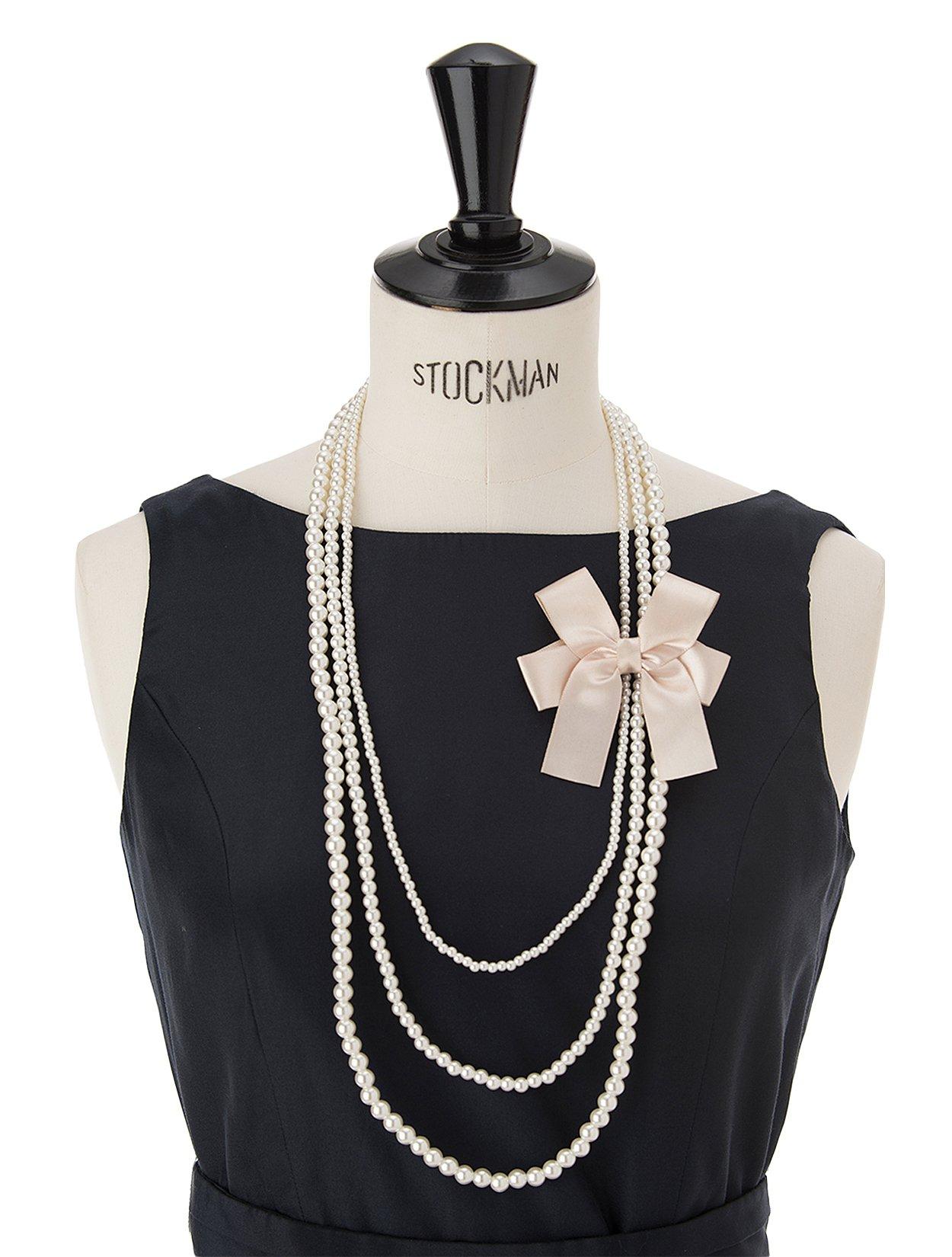 <取外し可>サテンリボン付きパール3連ロングネックレス(ベージュ)