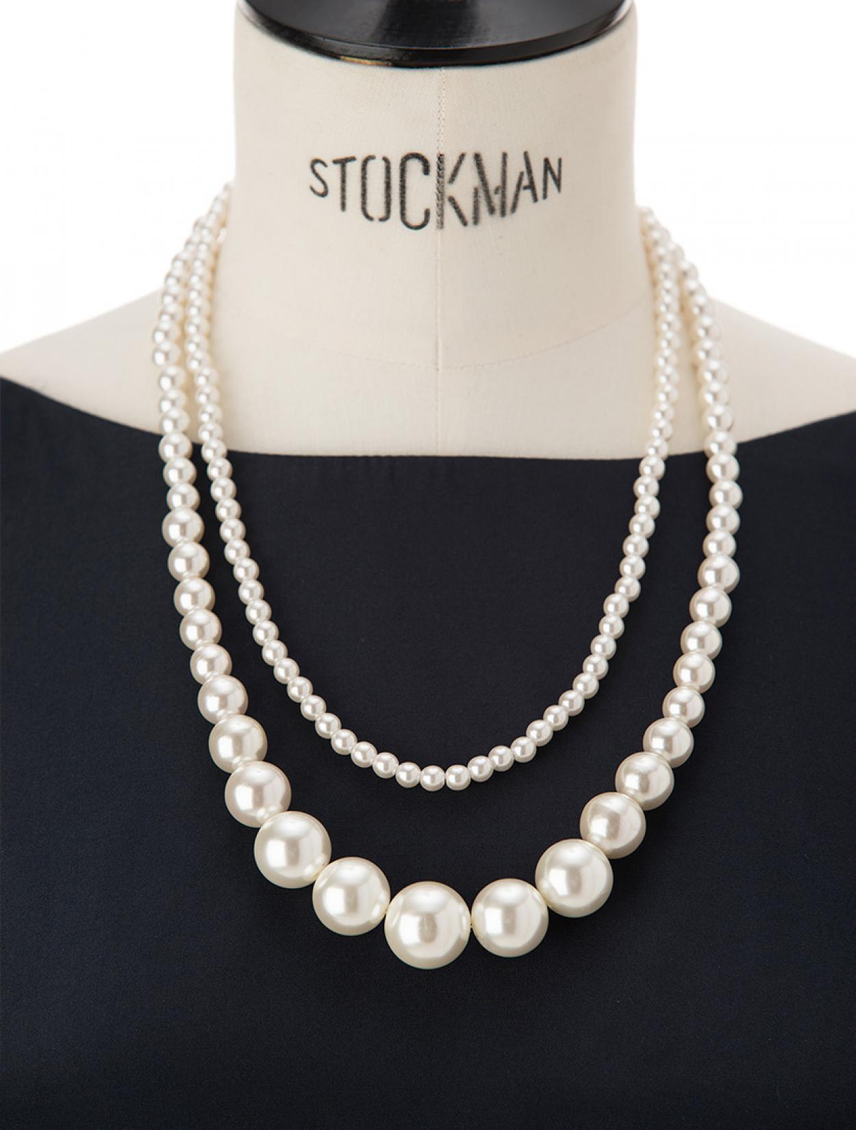 サテンリボン結びパール2連ネックレス(ブラック)