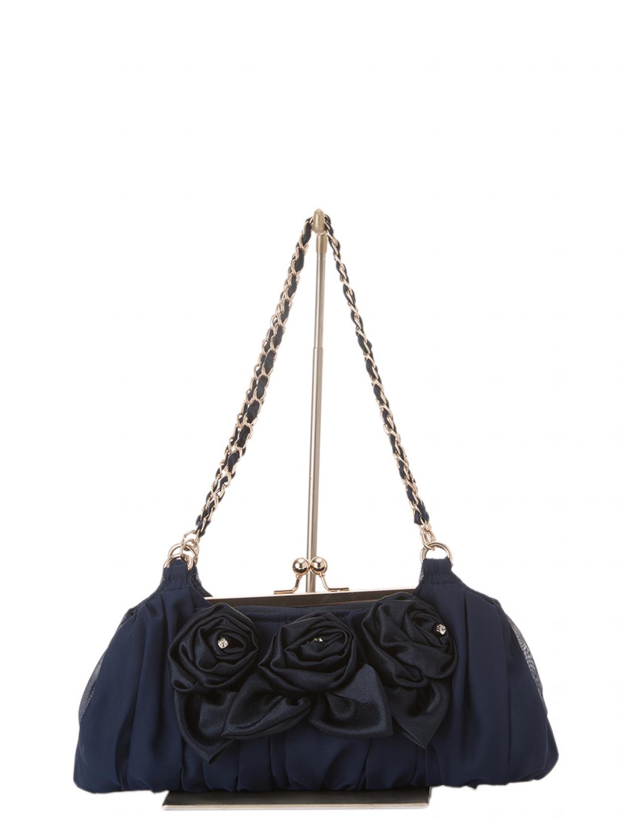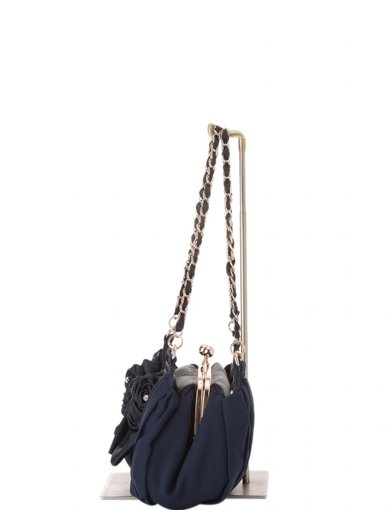 【たっぷり入る!】バラモチーフゴールドチェーンバッグ(ネイビー)