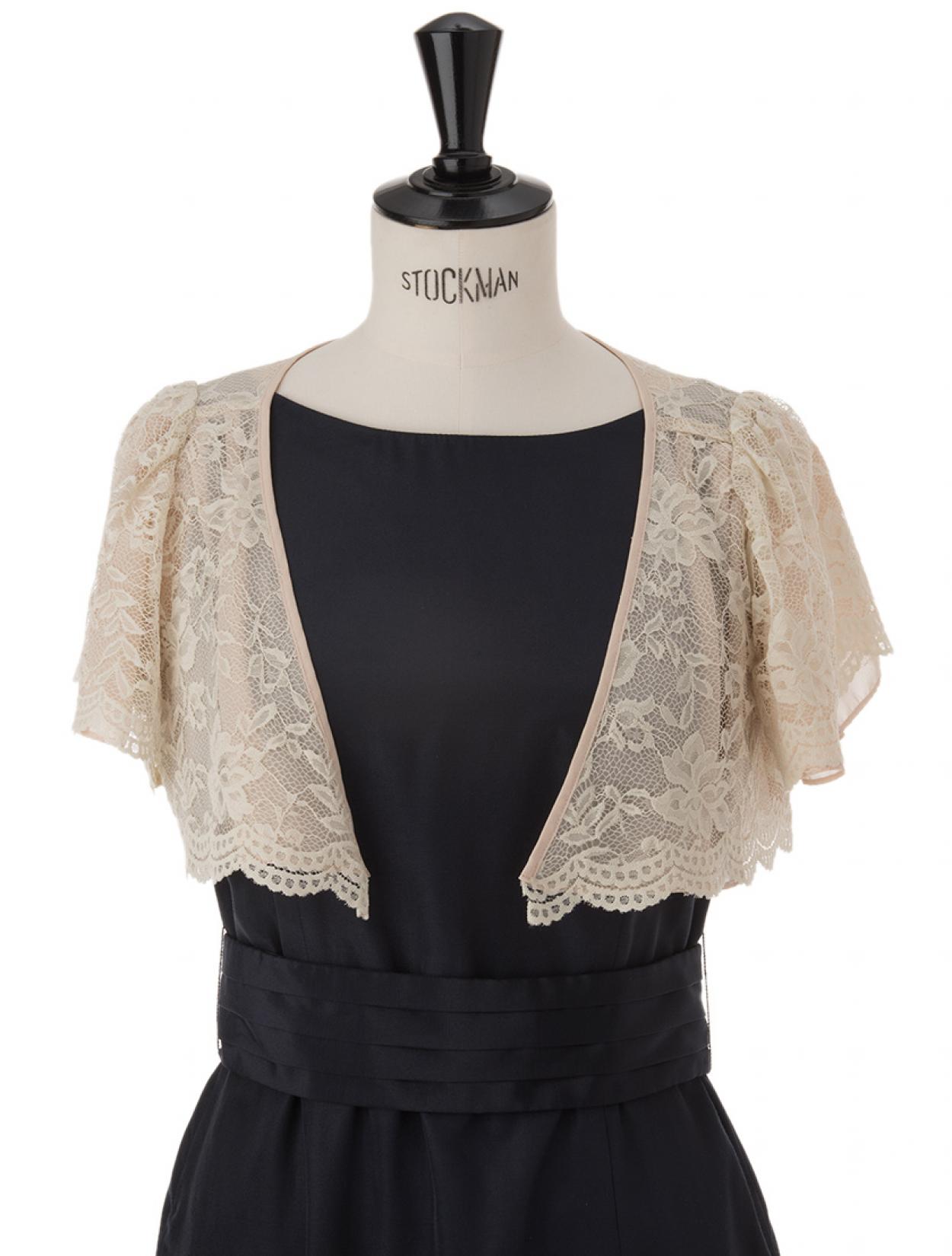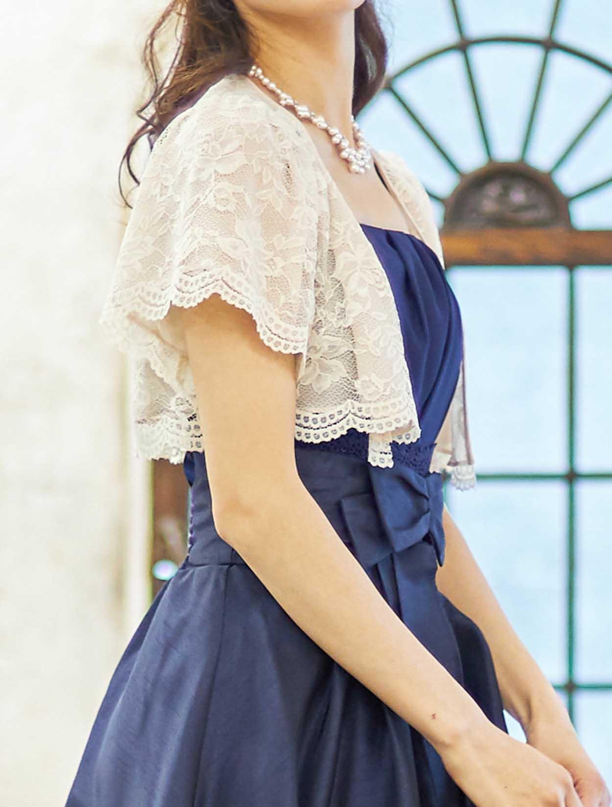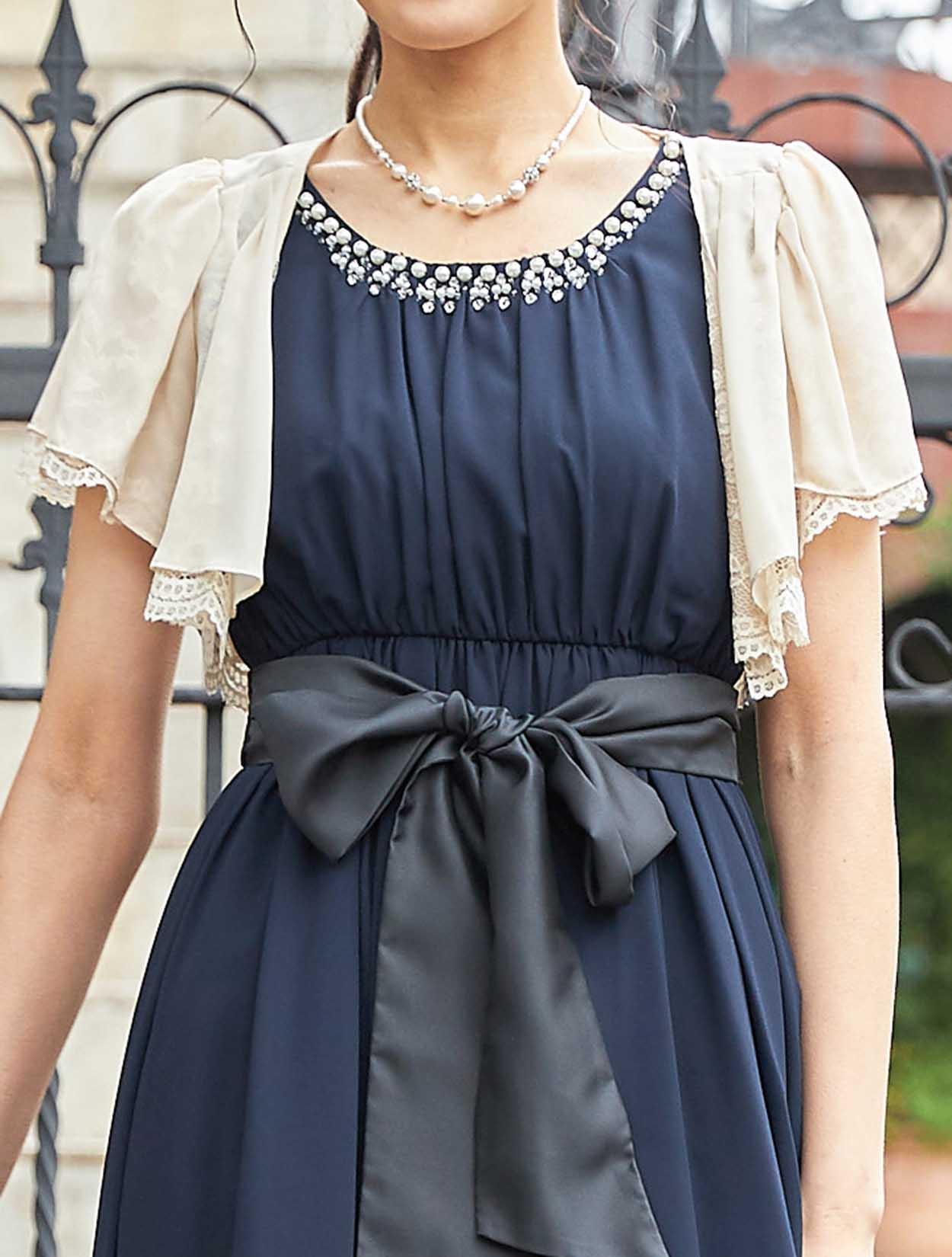 ■襟元はすっきりしたデザインなので、いろいろなドレスに合わせやすいボレロです。