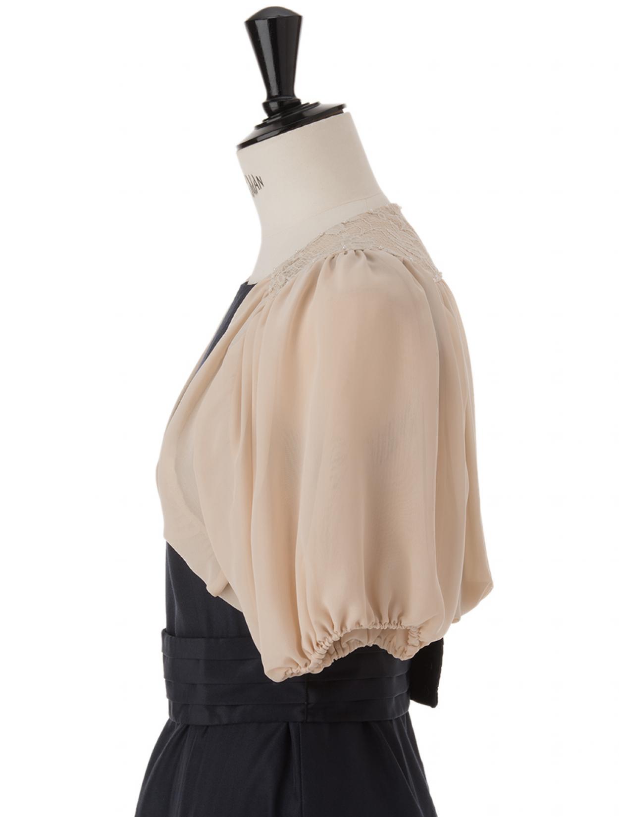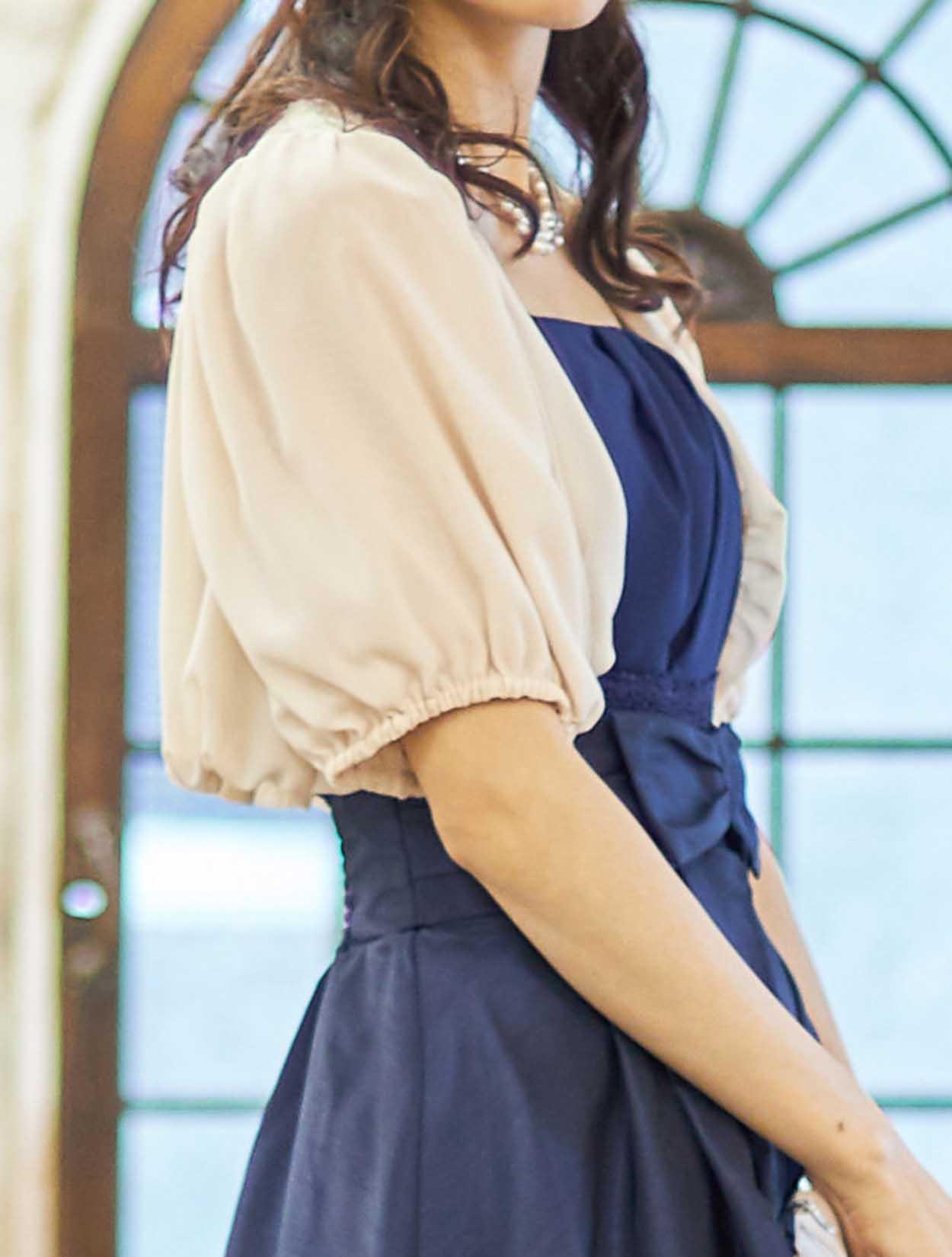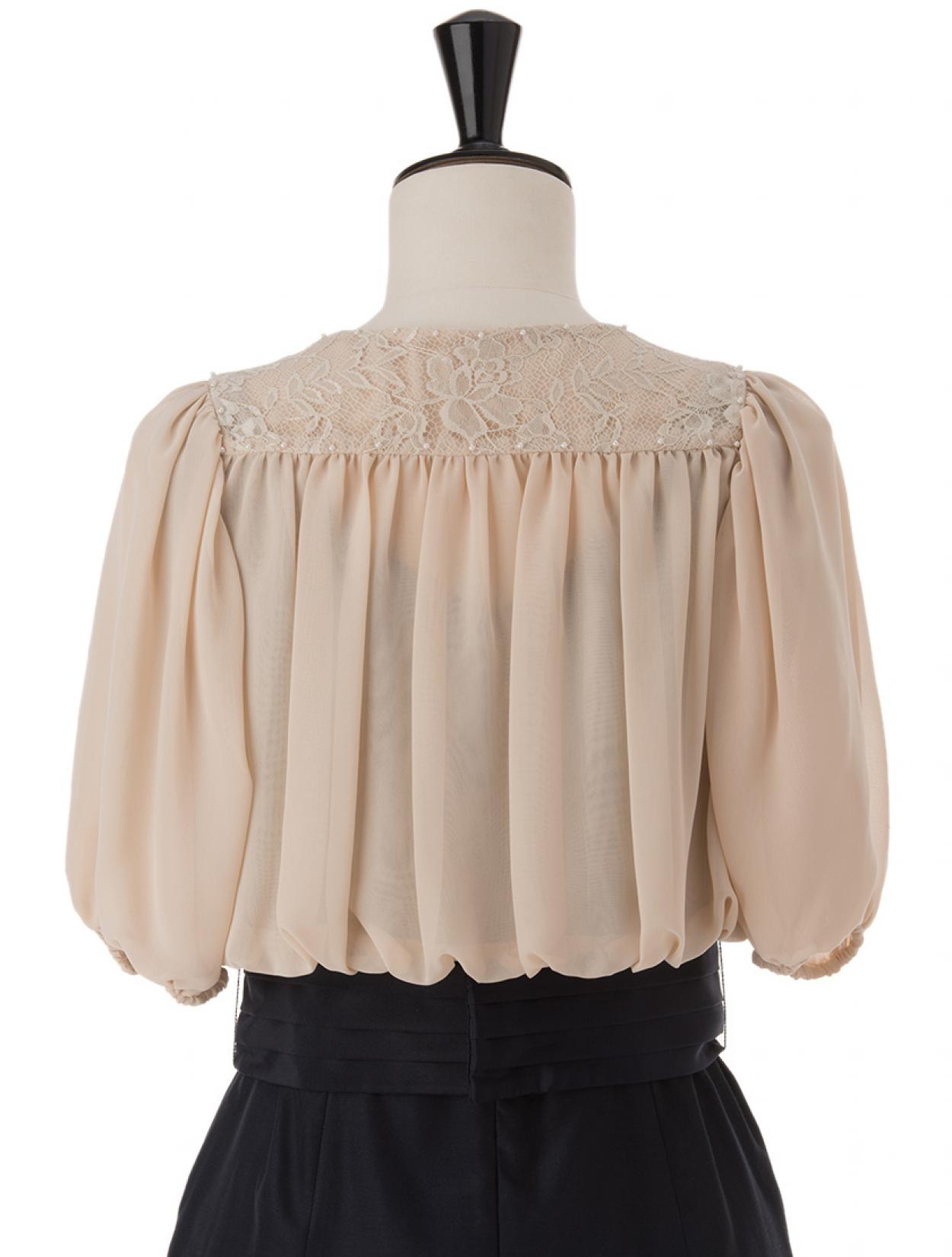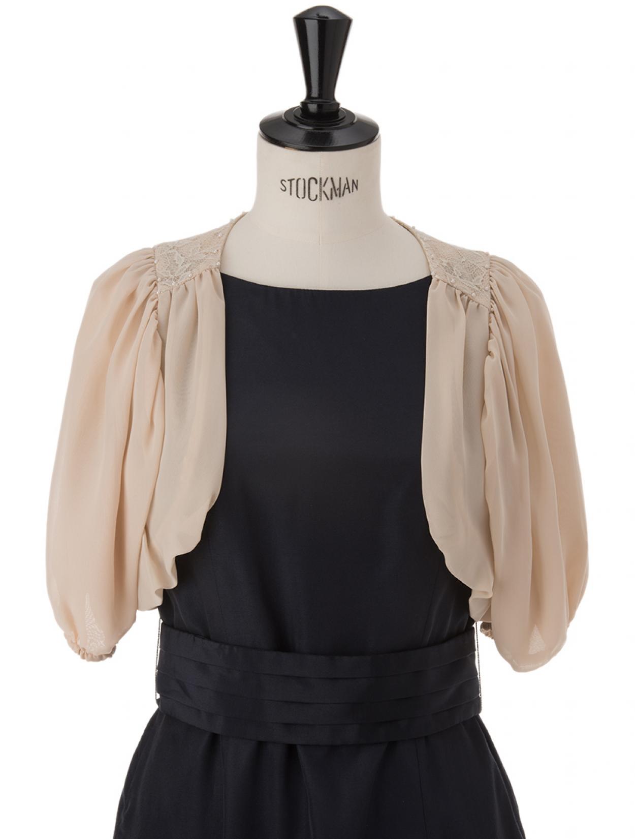 ■襟ぐりの部分にレースとパールをあしらったボレロ。ふんわり軽い印象になります。