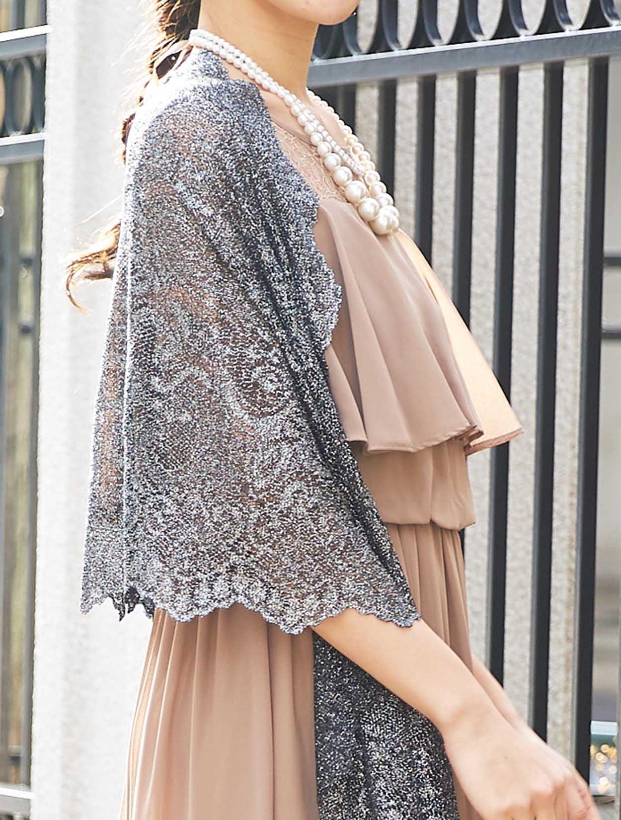 ■大判のラメストールです。ラメのショールは一枚持っておくと便利。お顔周りをパッと明るくしてくれます。