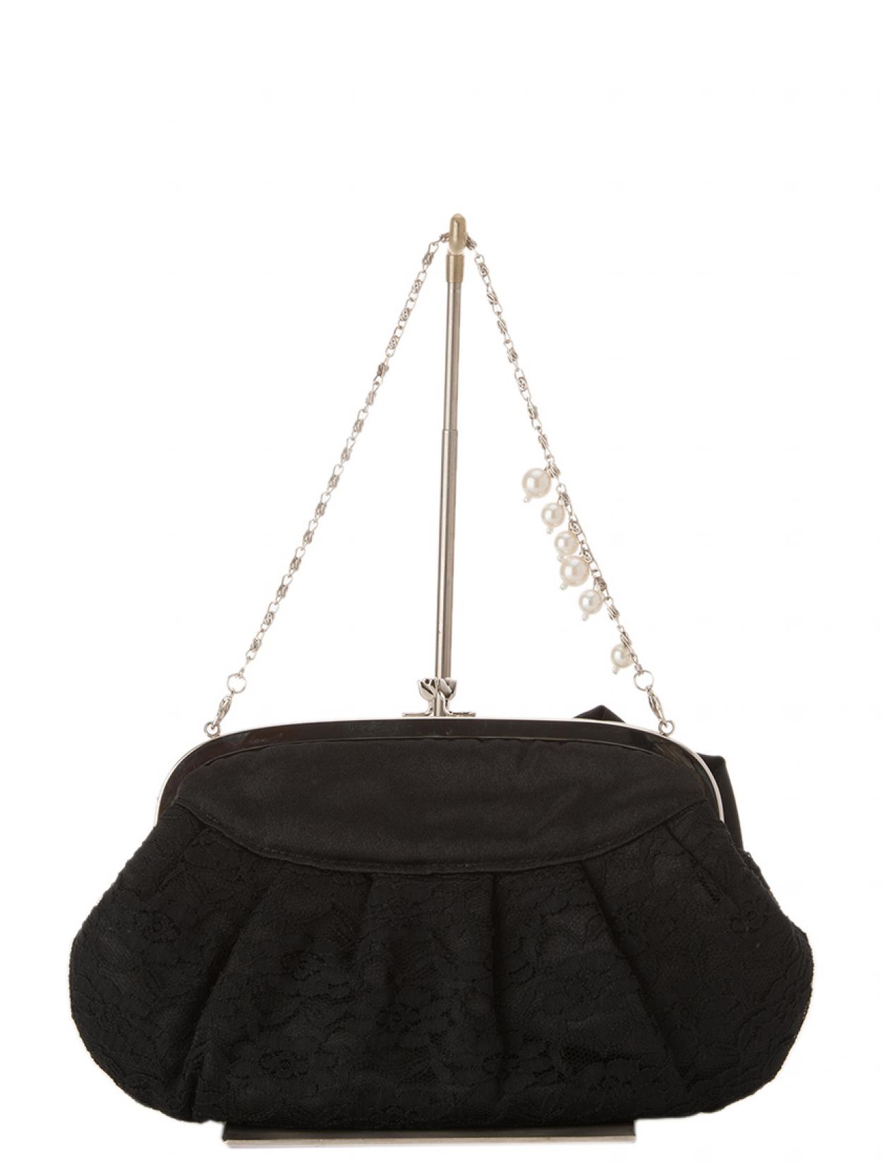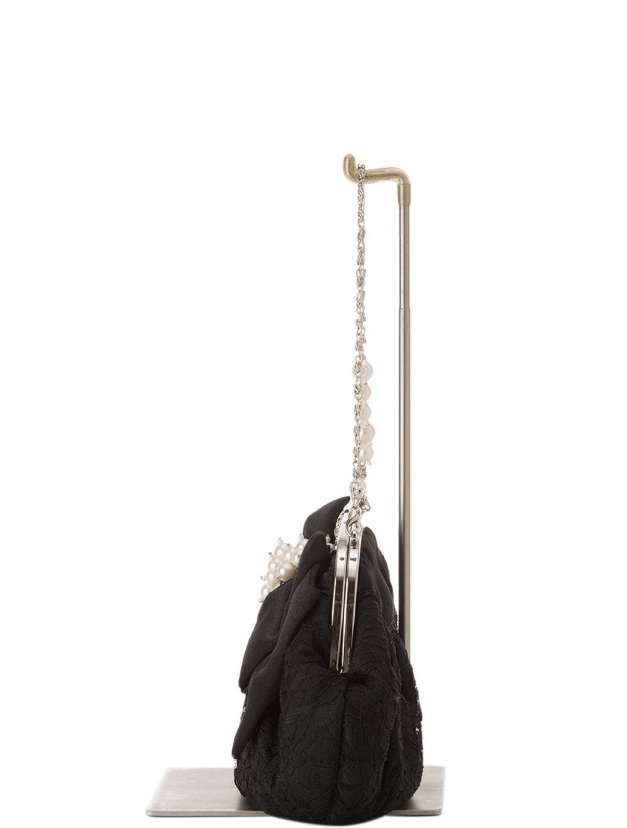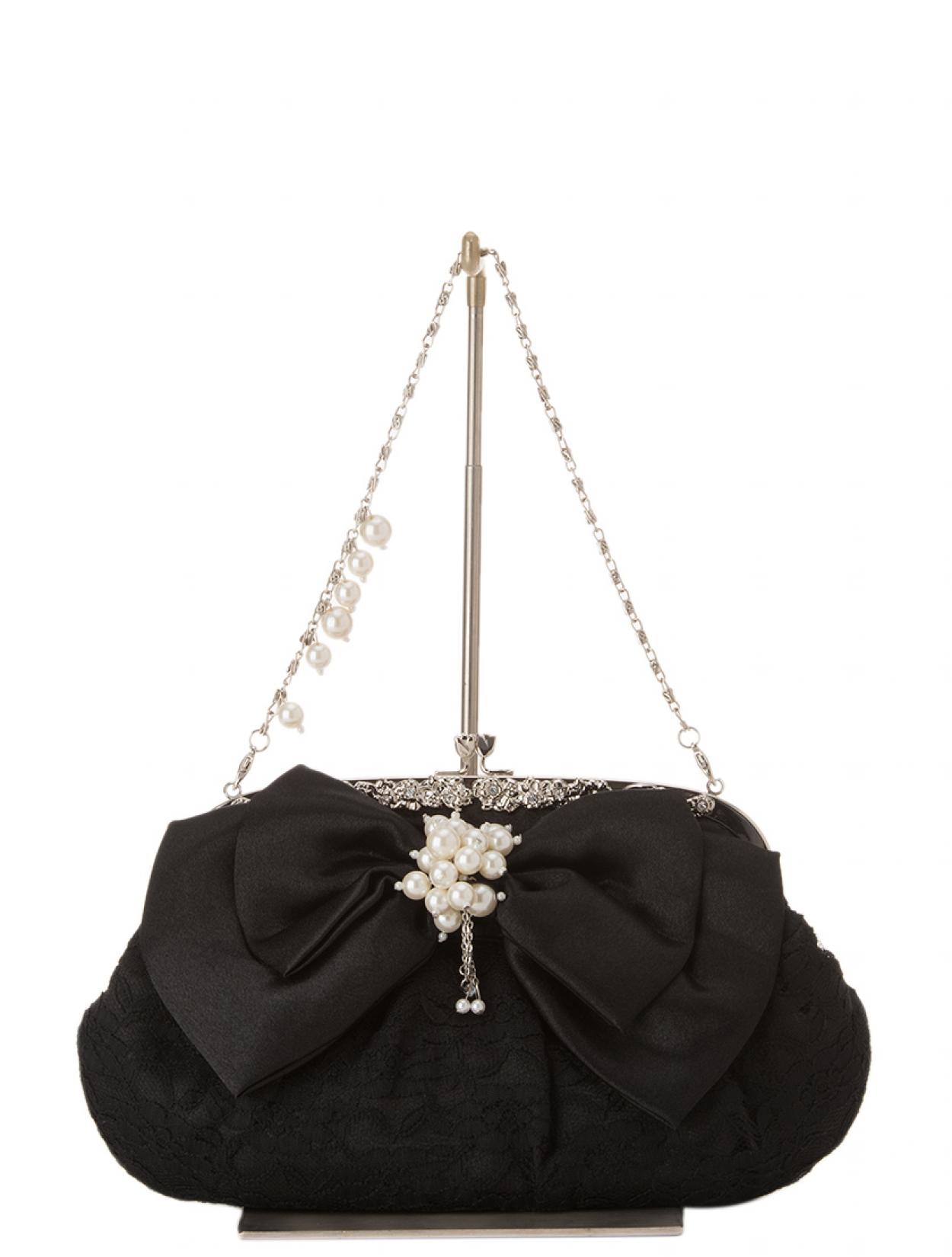レース×リボンがま口バッグ(ブラック)