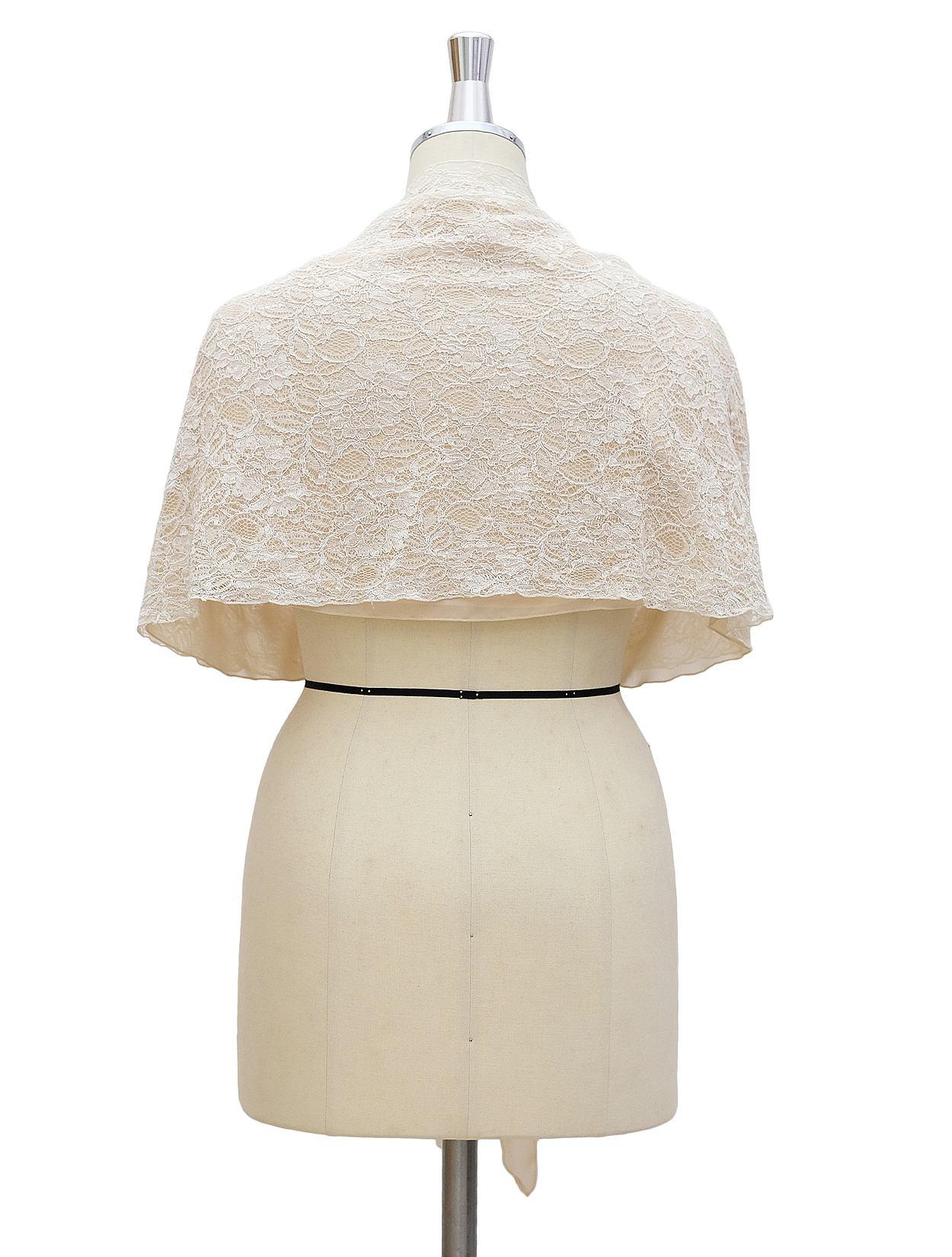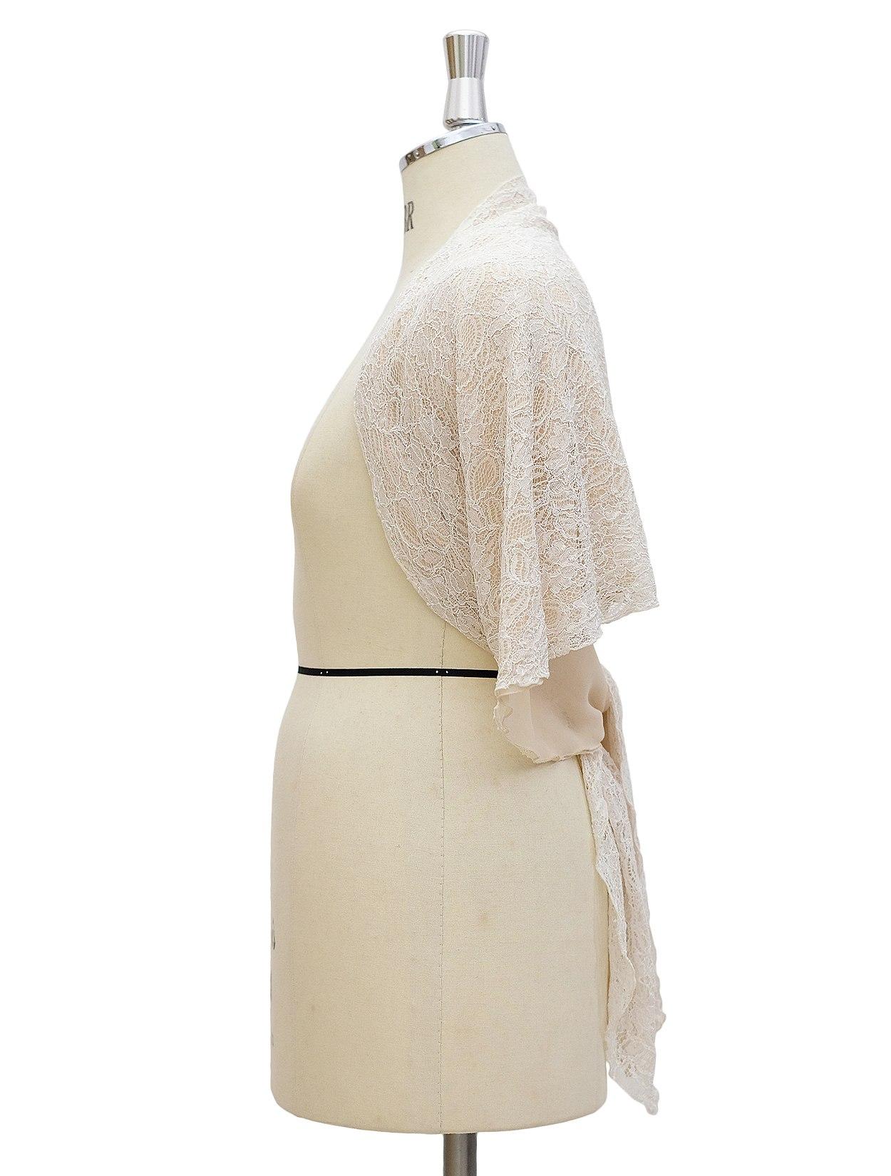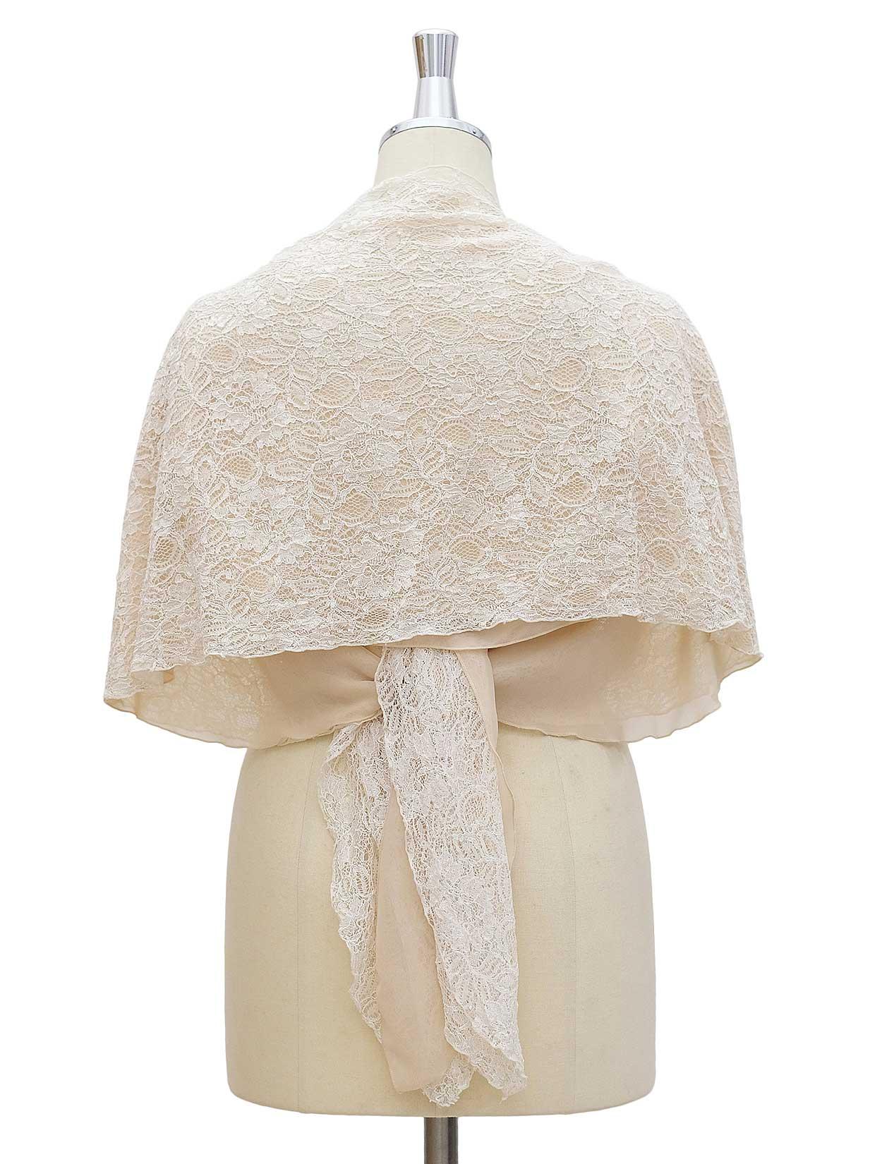 【大きいサイズ】総レース袖通し付きショール(ベージュ)