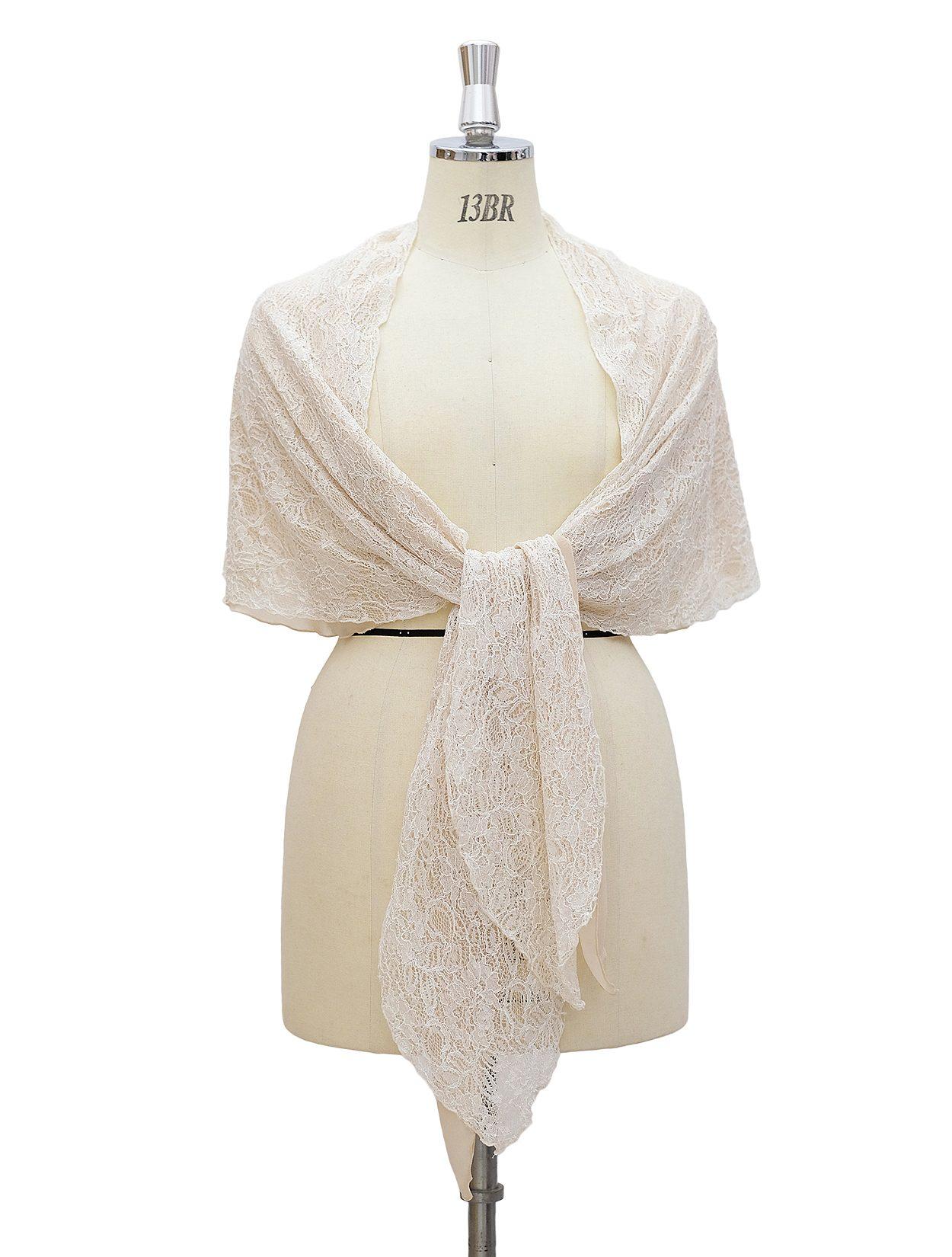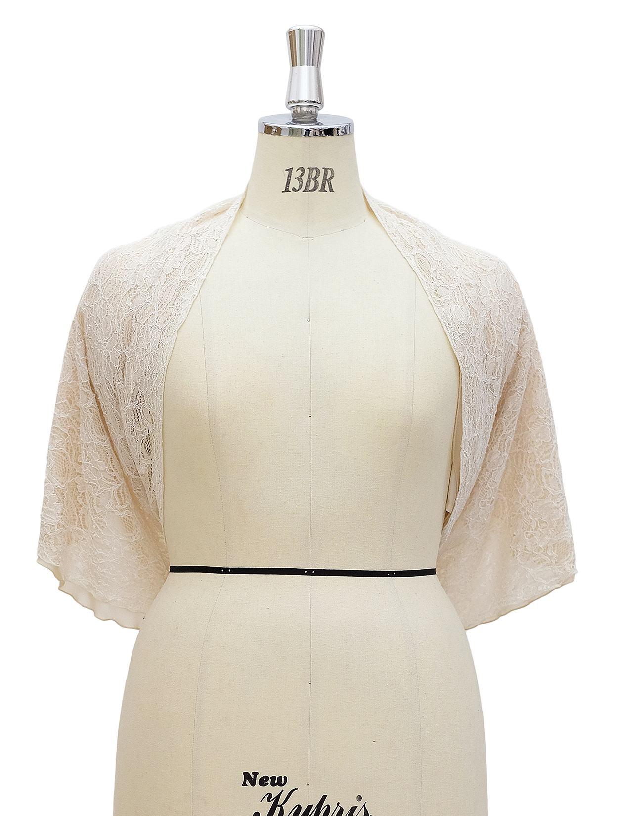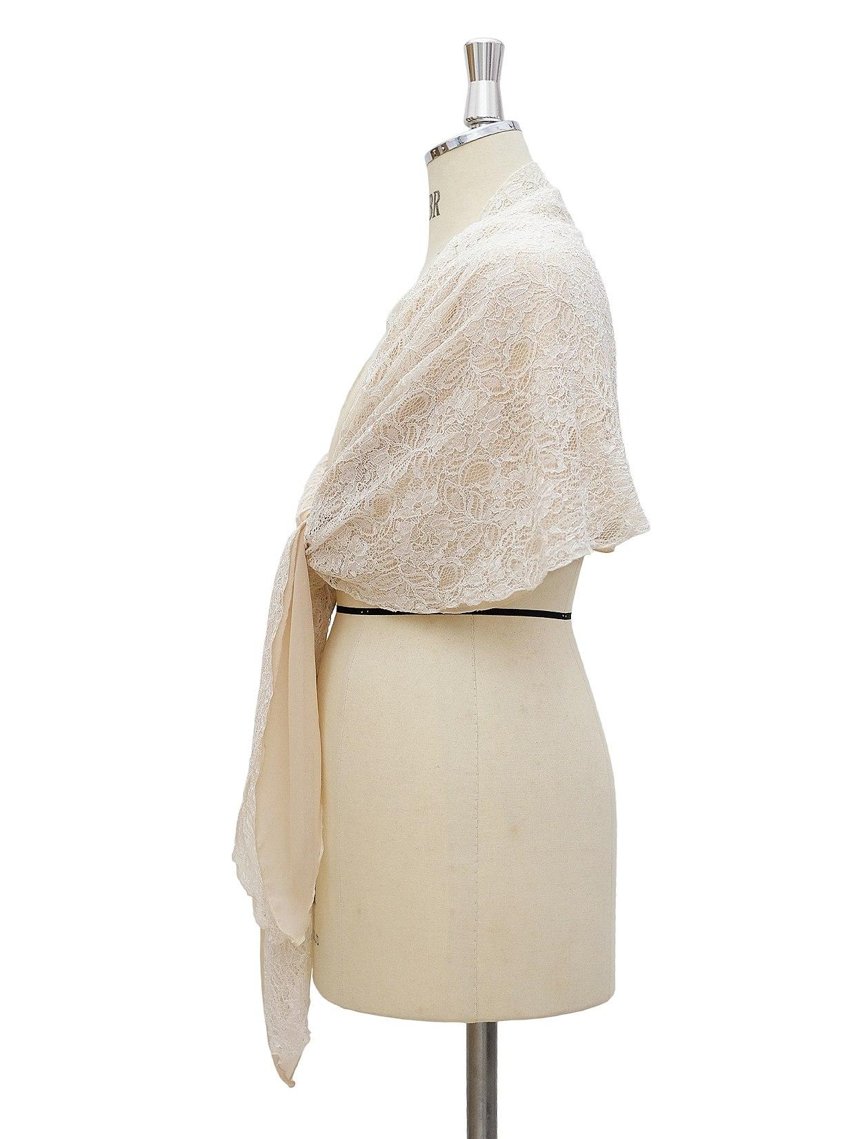 【大きいサイズ】総レース袖通し付きショール(ベージュ)