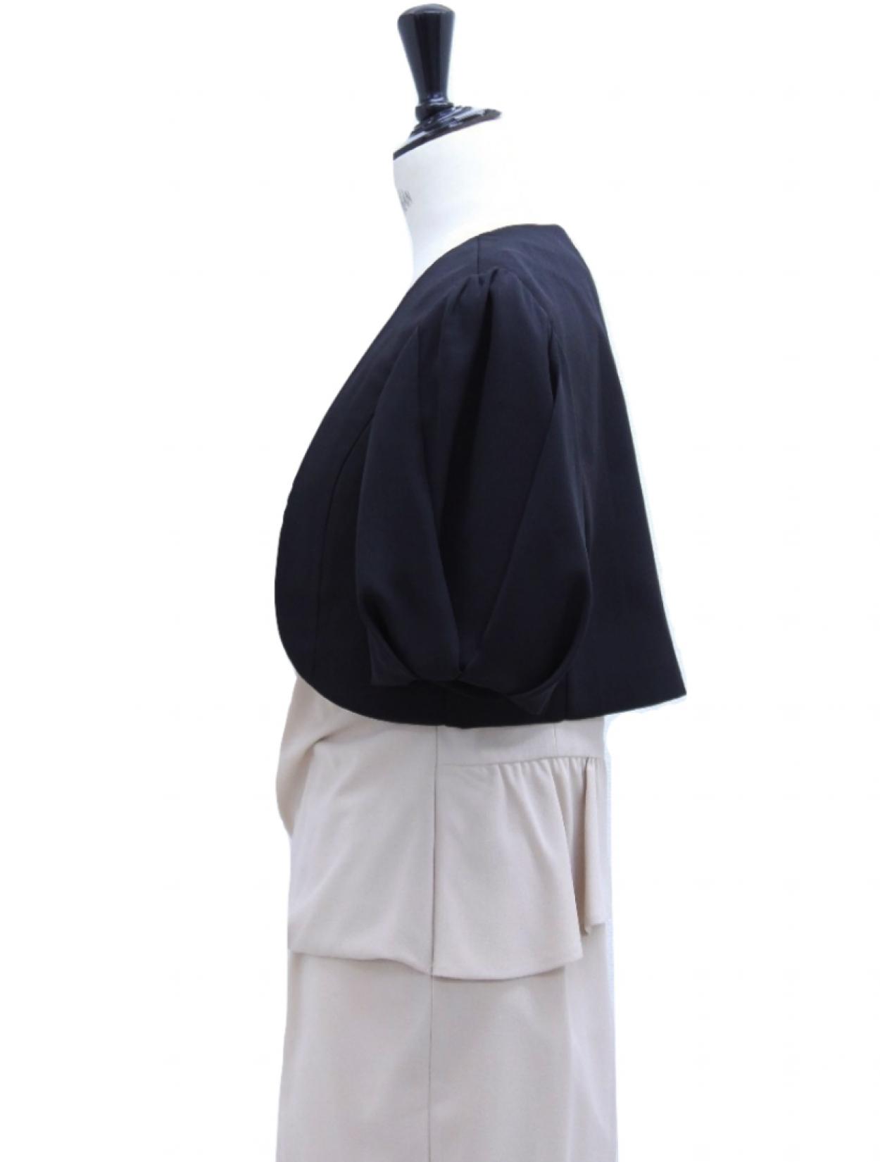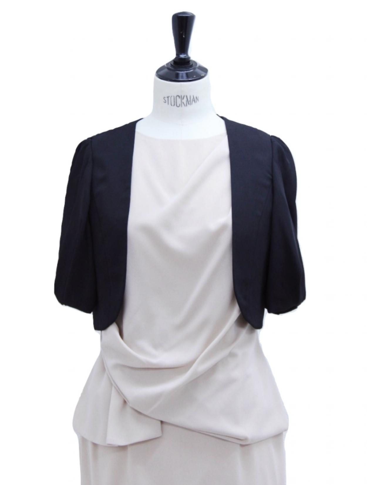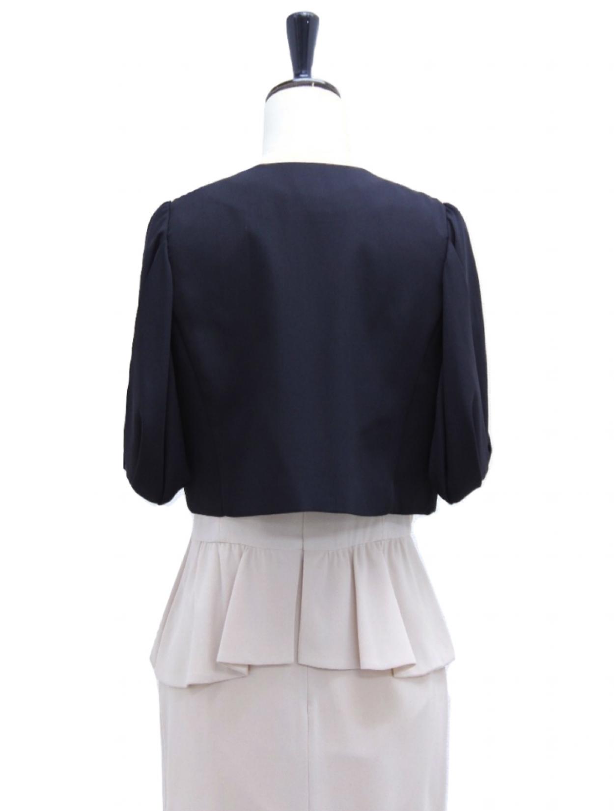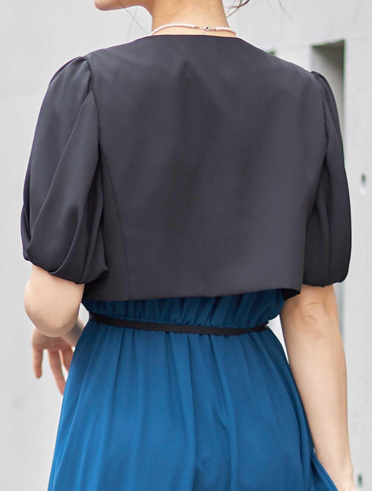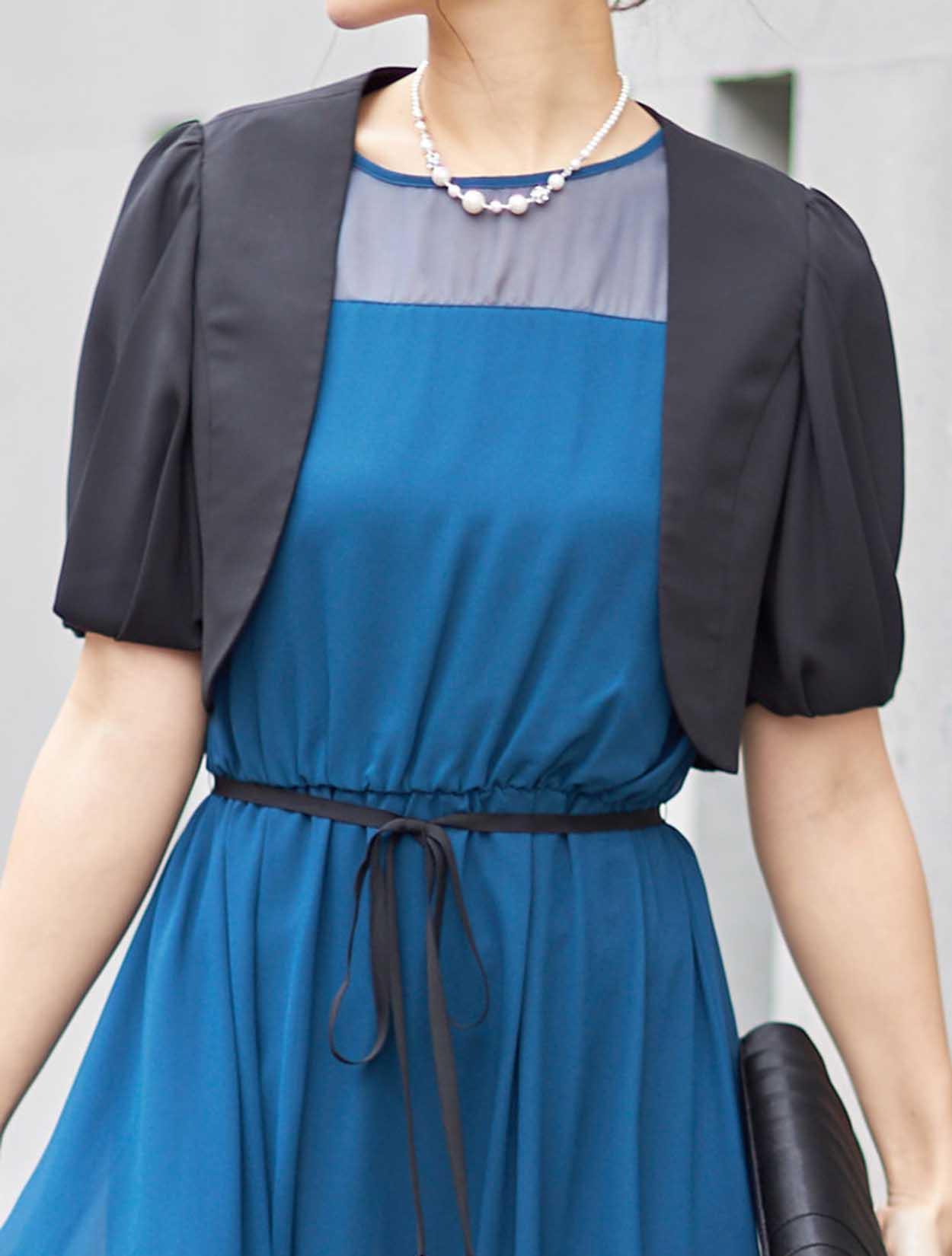 ■どんなドレスにも合わせやすいノーカラーのジャケットボレロ。