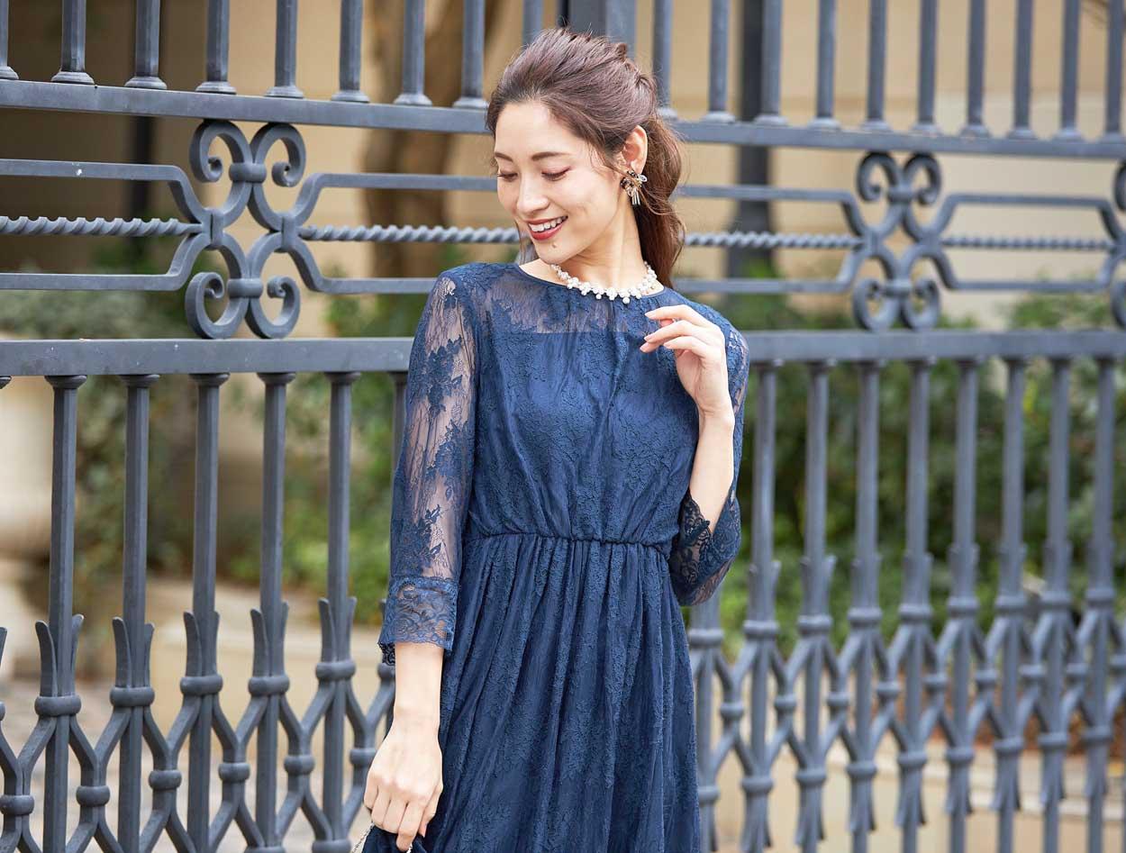 ■華やかなレースですが、ネイビーなので、派手になりすぎず着やすい一着です。