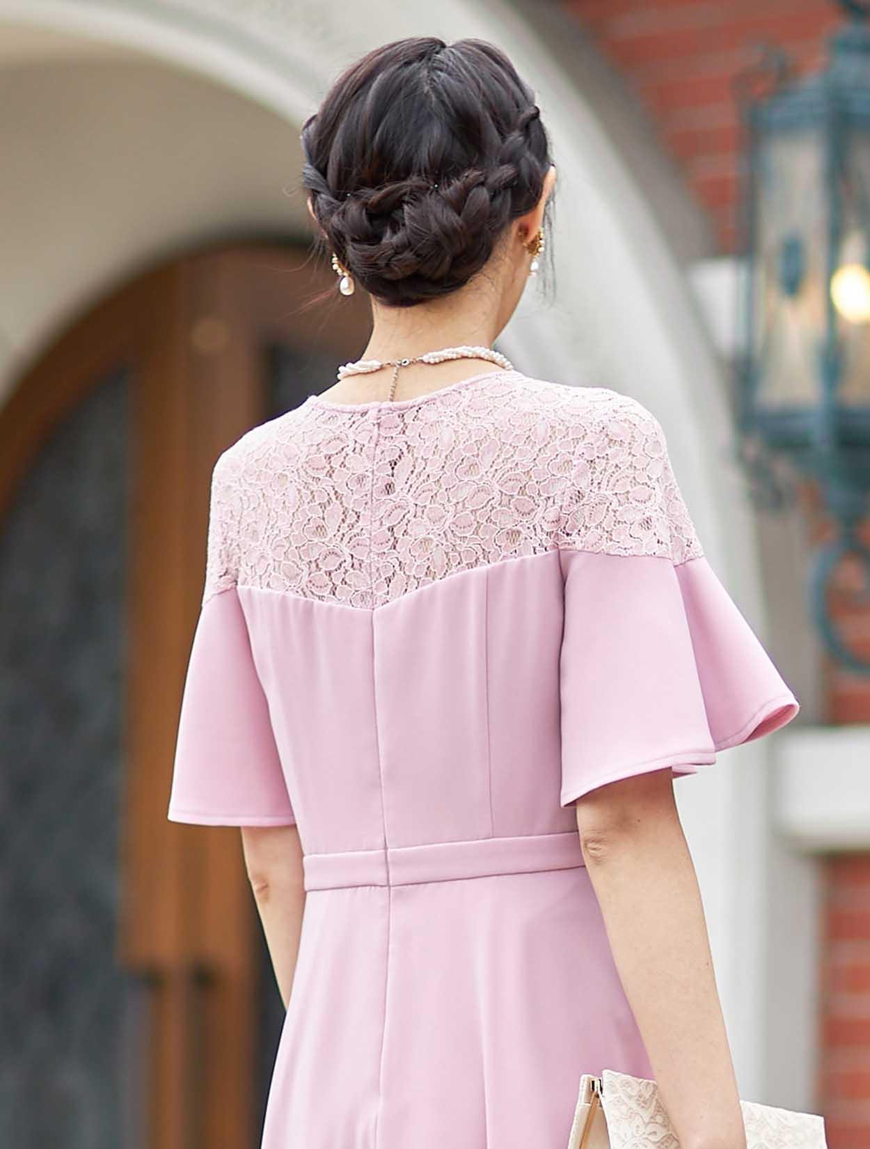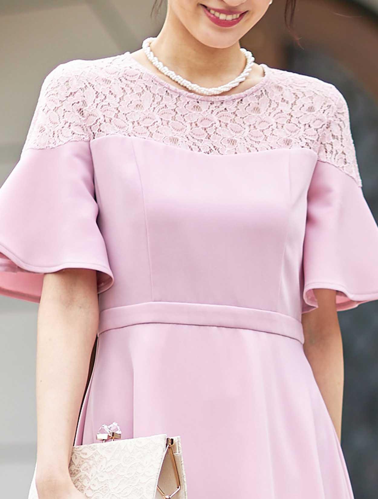 ■胸元には華やかなレースにフレア袖が二の腕を隠してくれます。