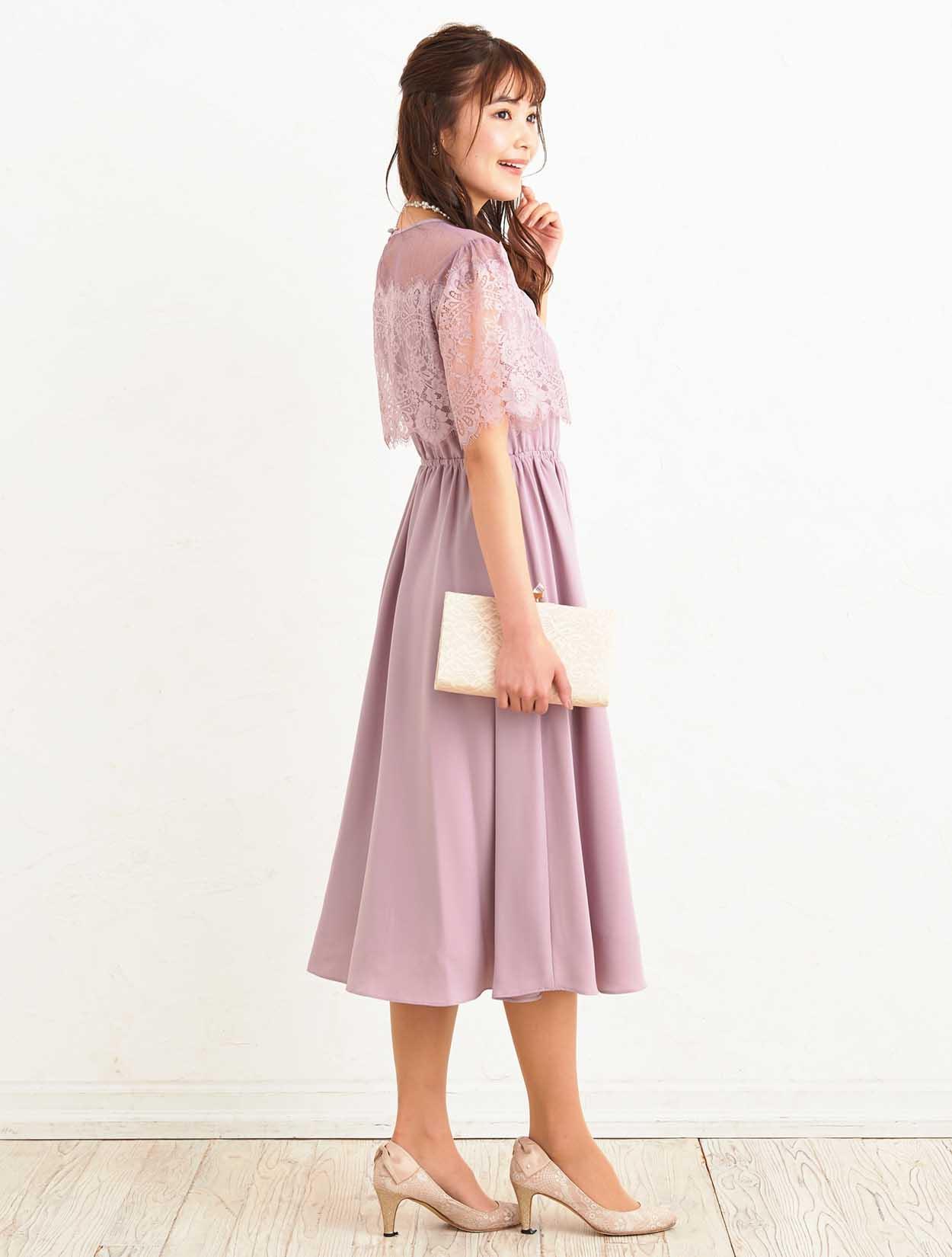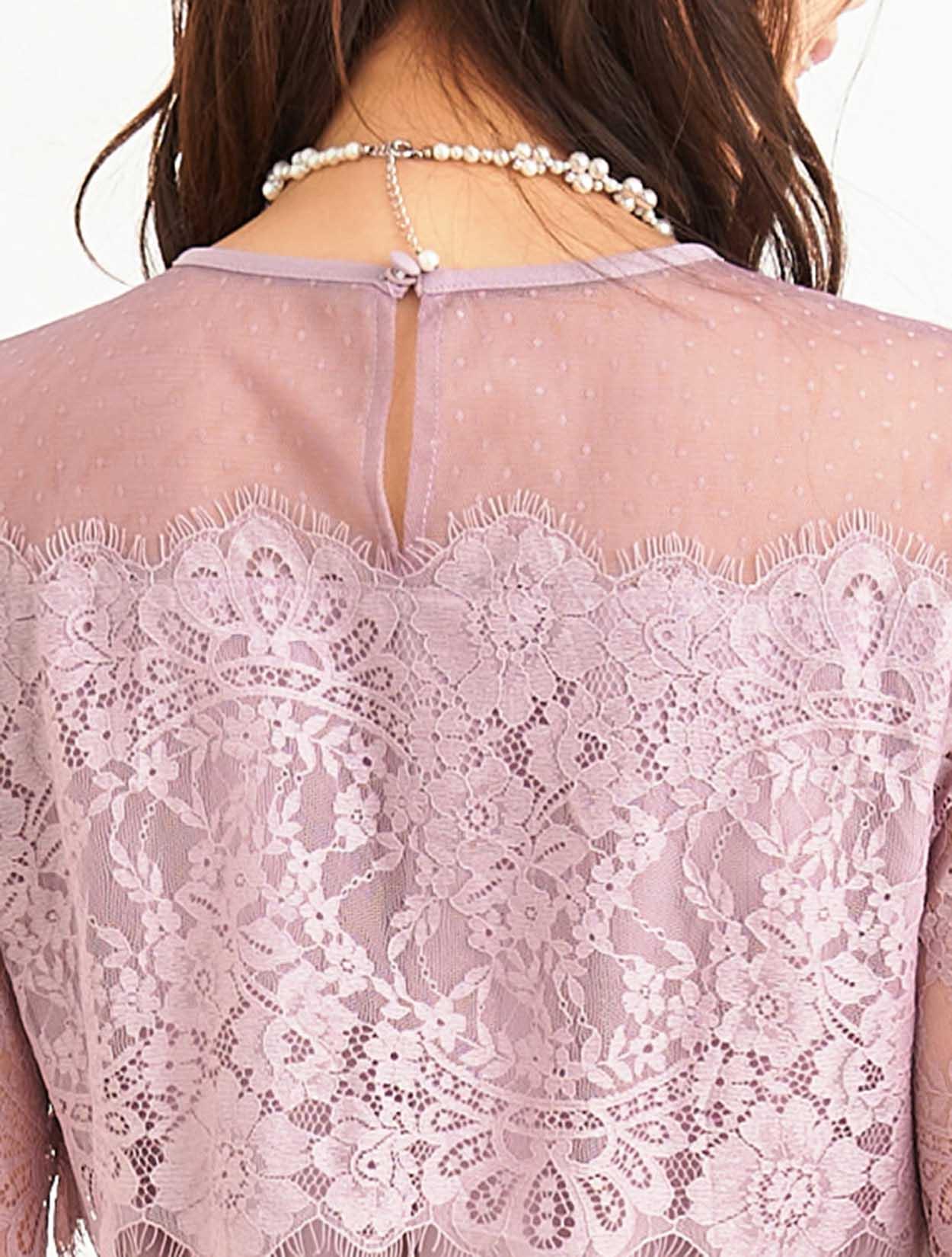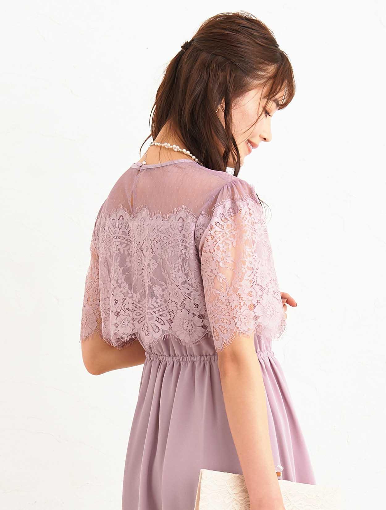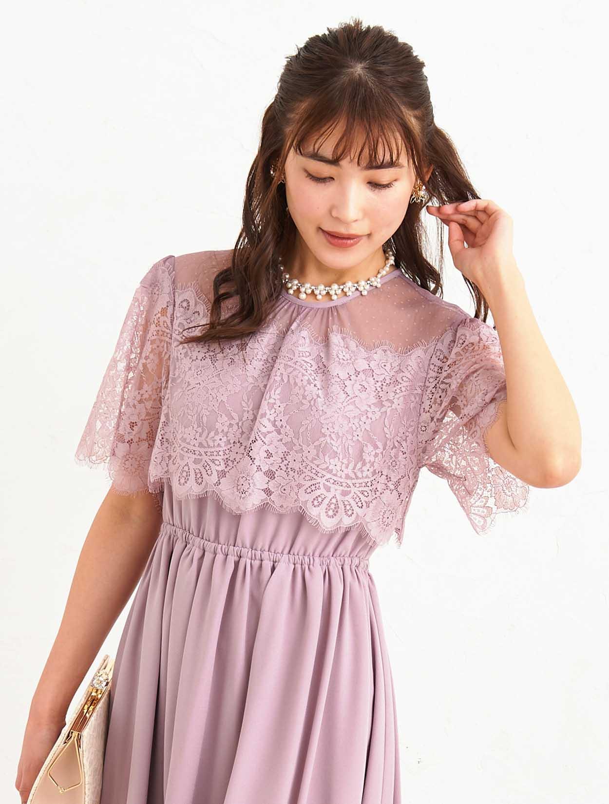 ■ドットチュールとスカラップレースのフェミニンなドレスです。