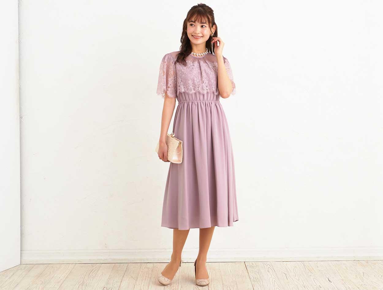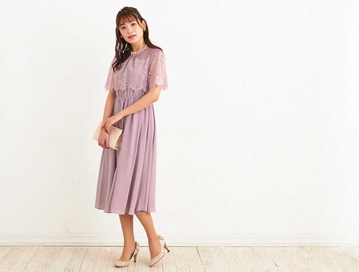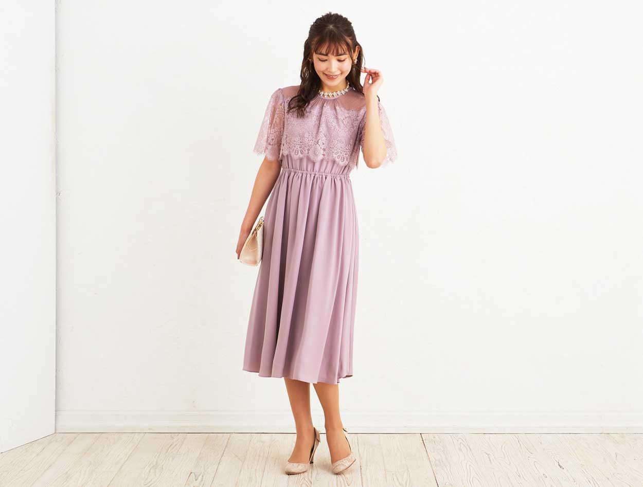 ■くすみピンクのオシャレなカラードレスは可愛くなり過ぎず、優し気な印象を与えてくれるドレスです。