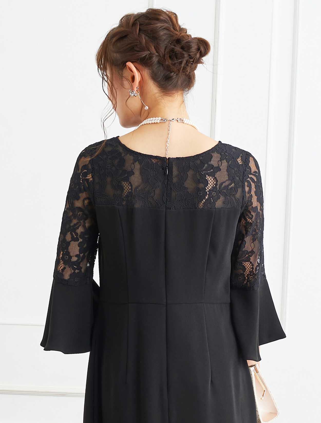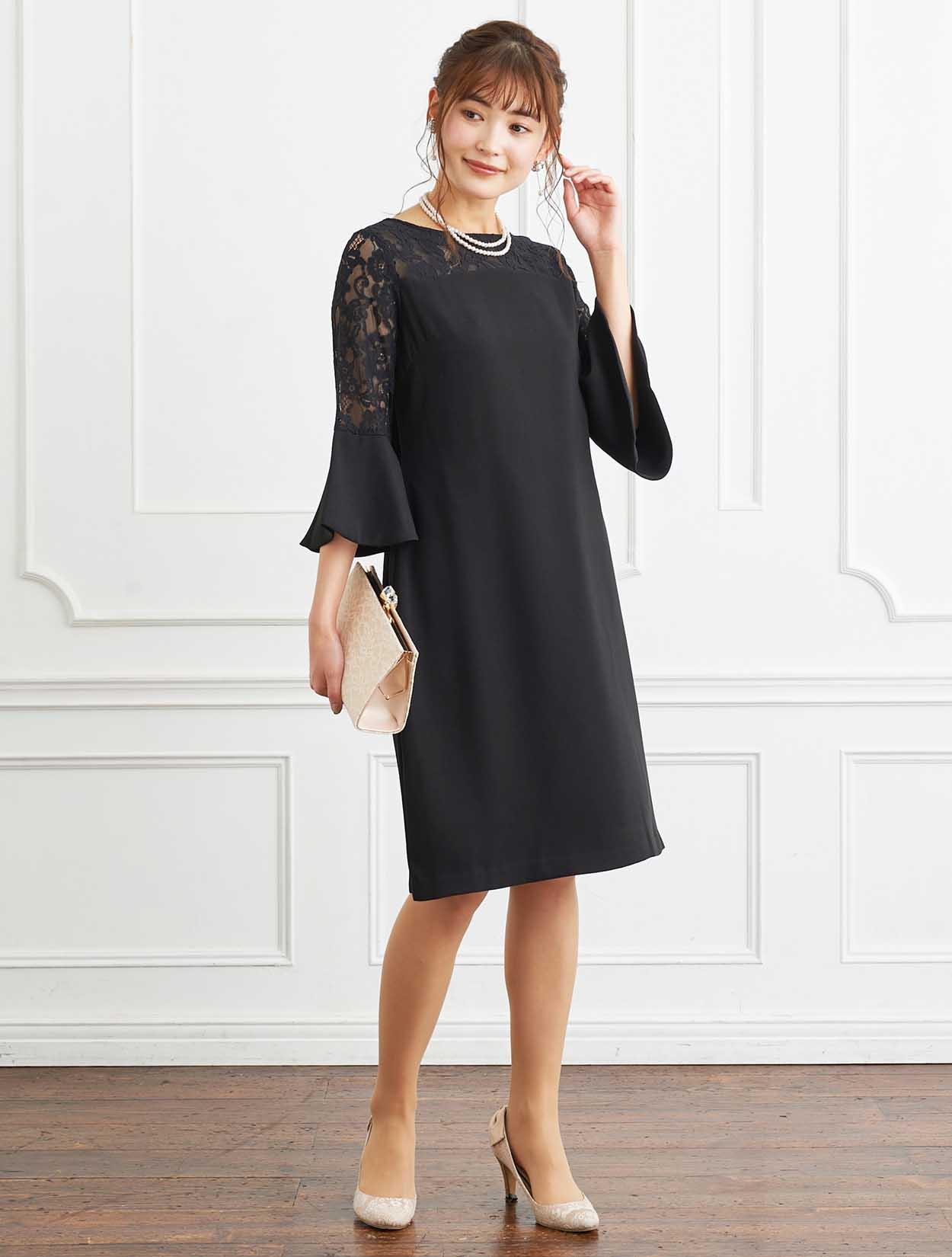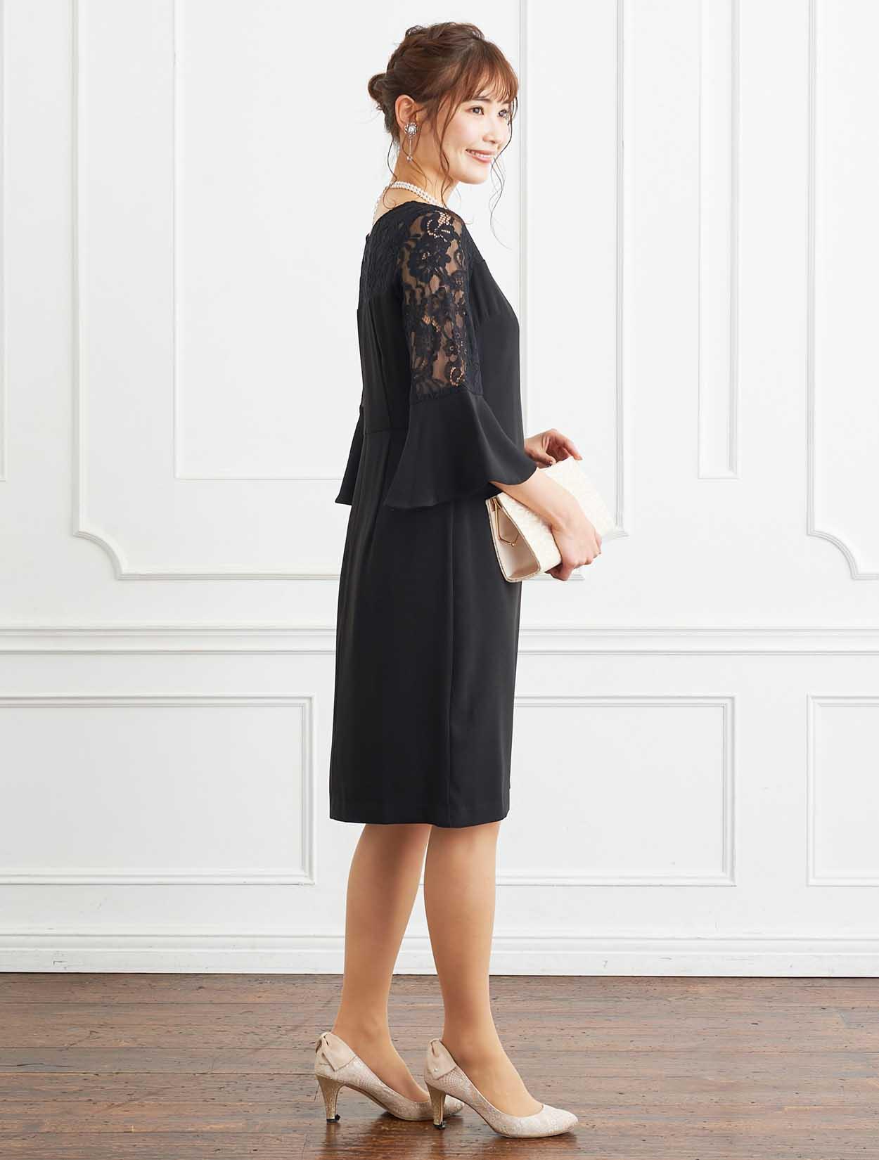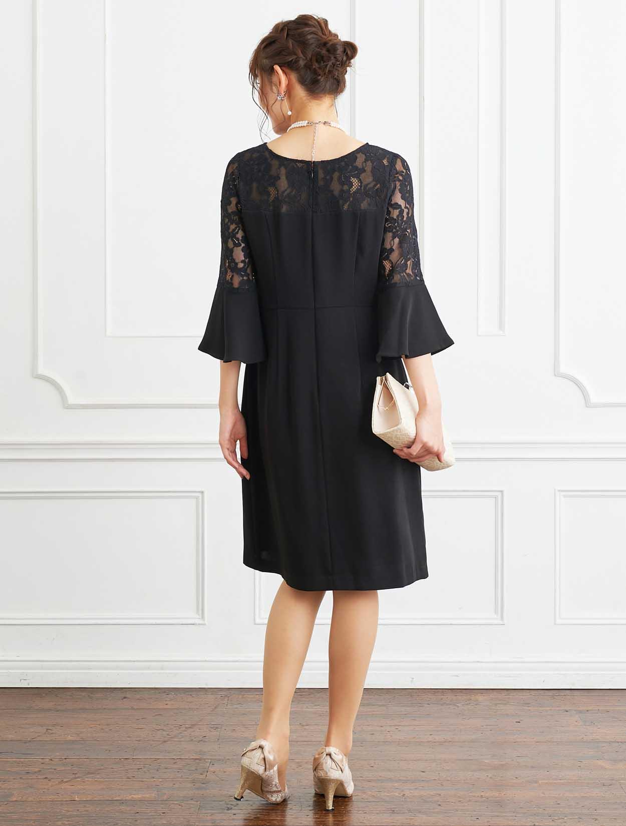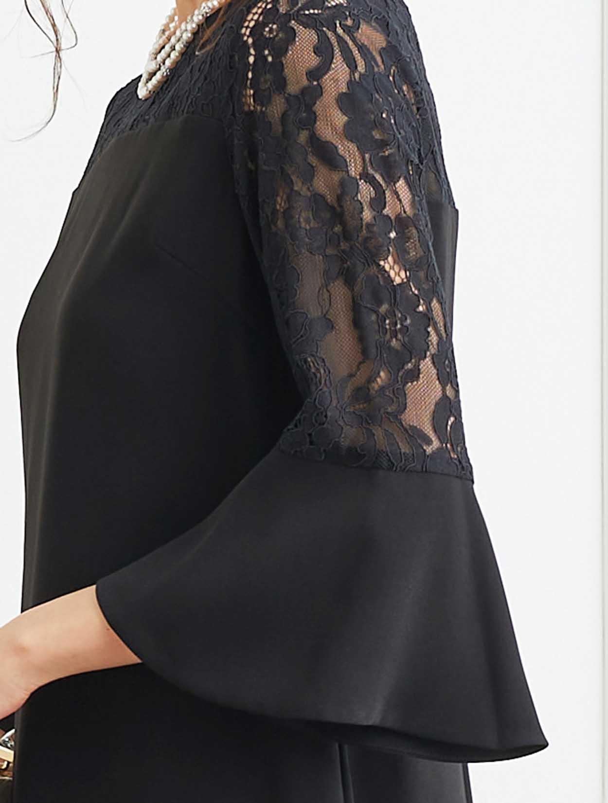 ■デコルテからお袖にかけてレースを施した上品なボックスドレスです。