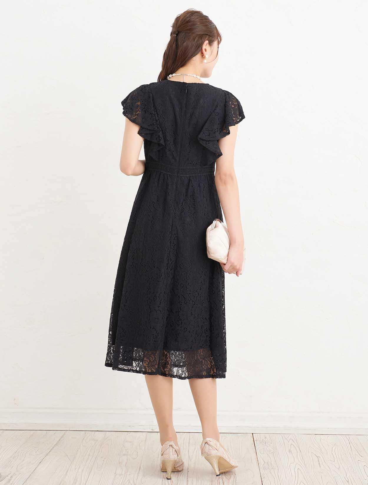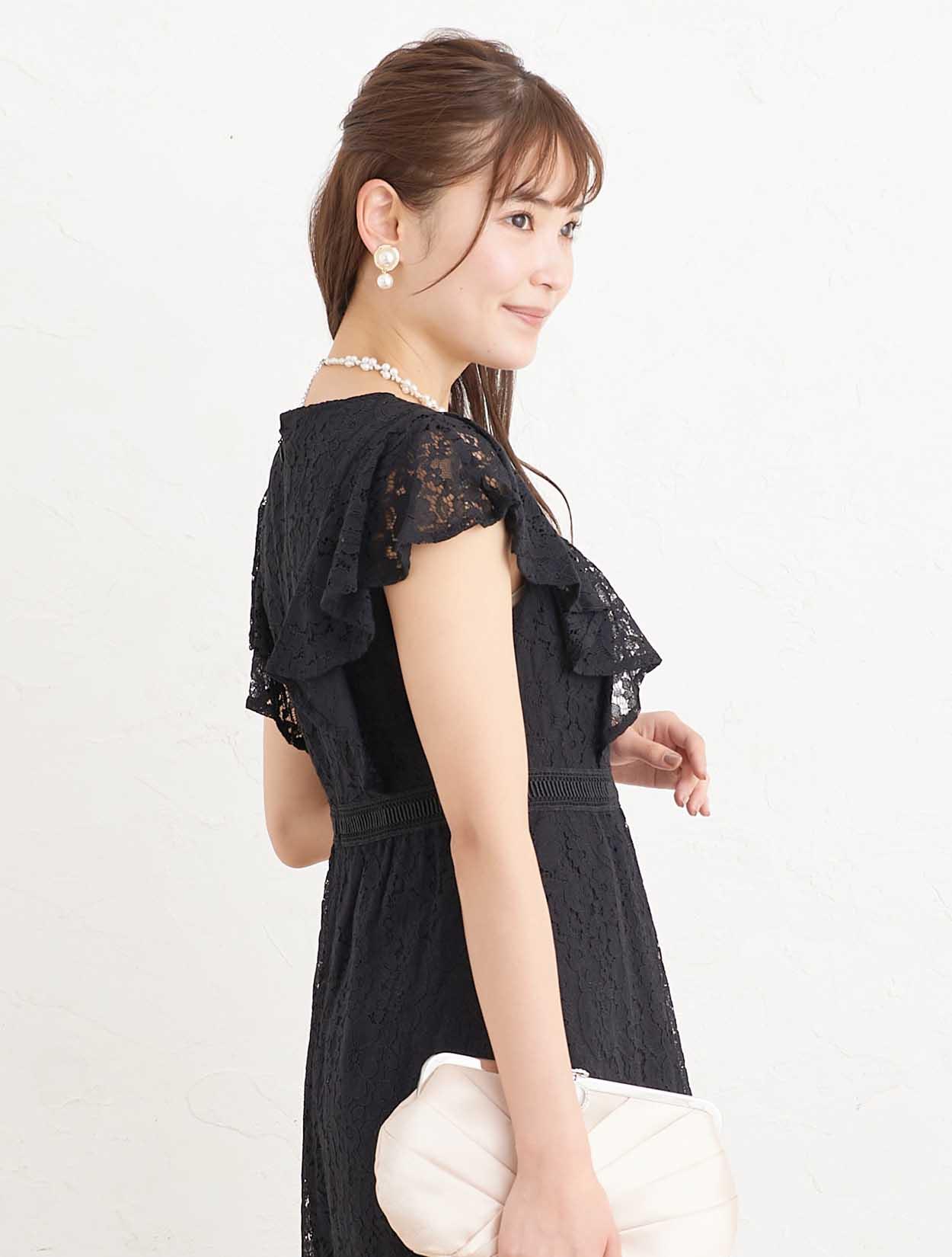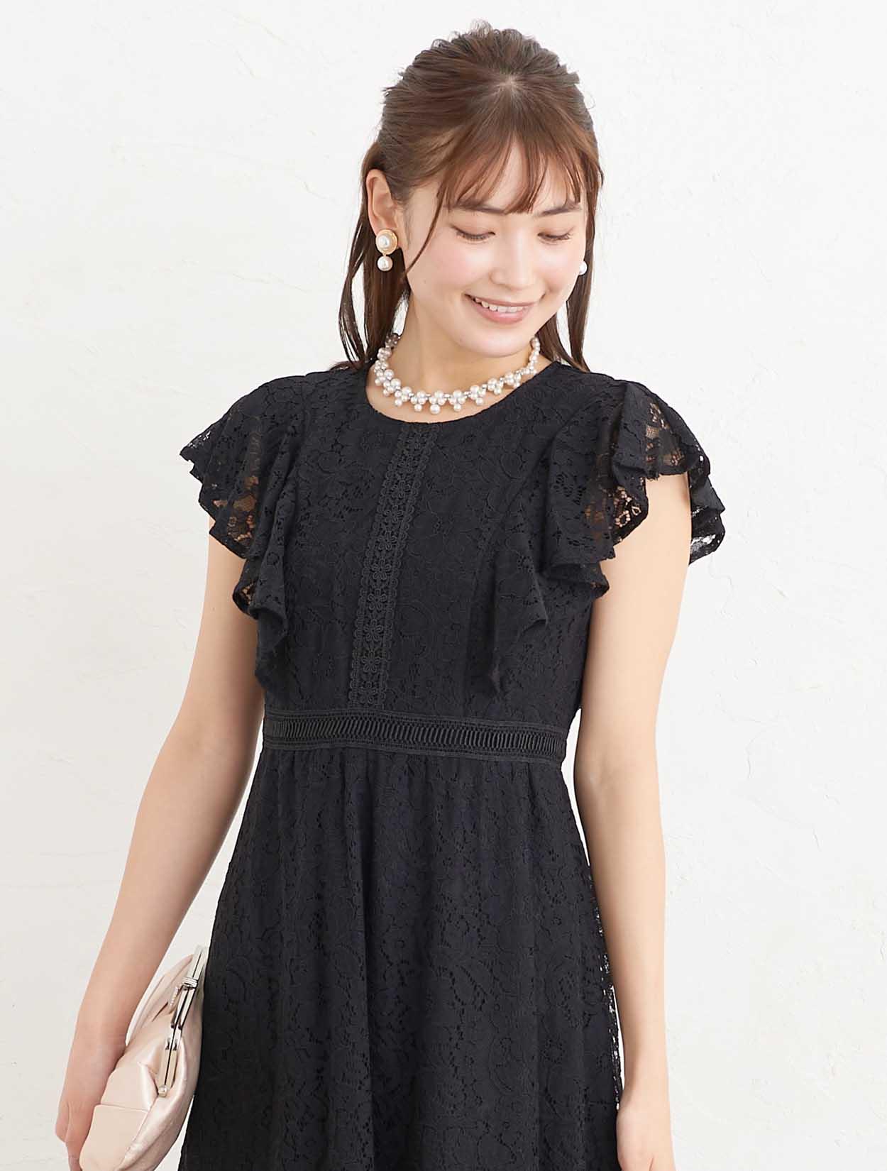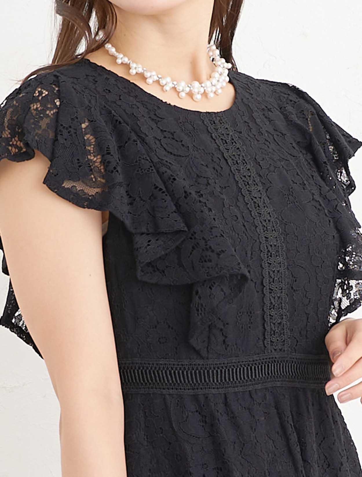 ■華やかなラッフル袖が印象的な総レースのドレスです。